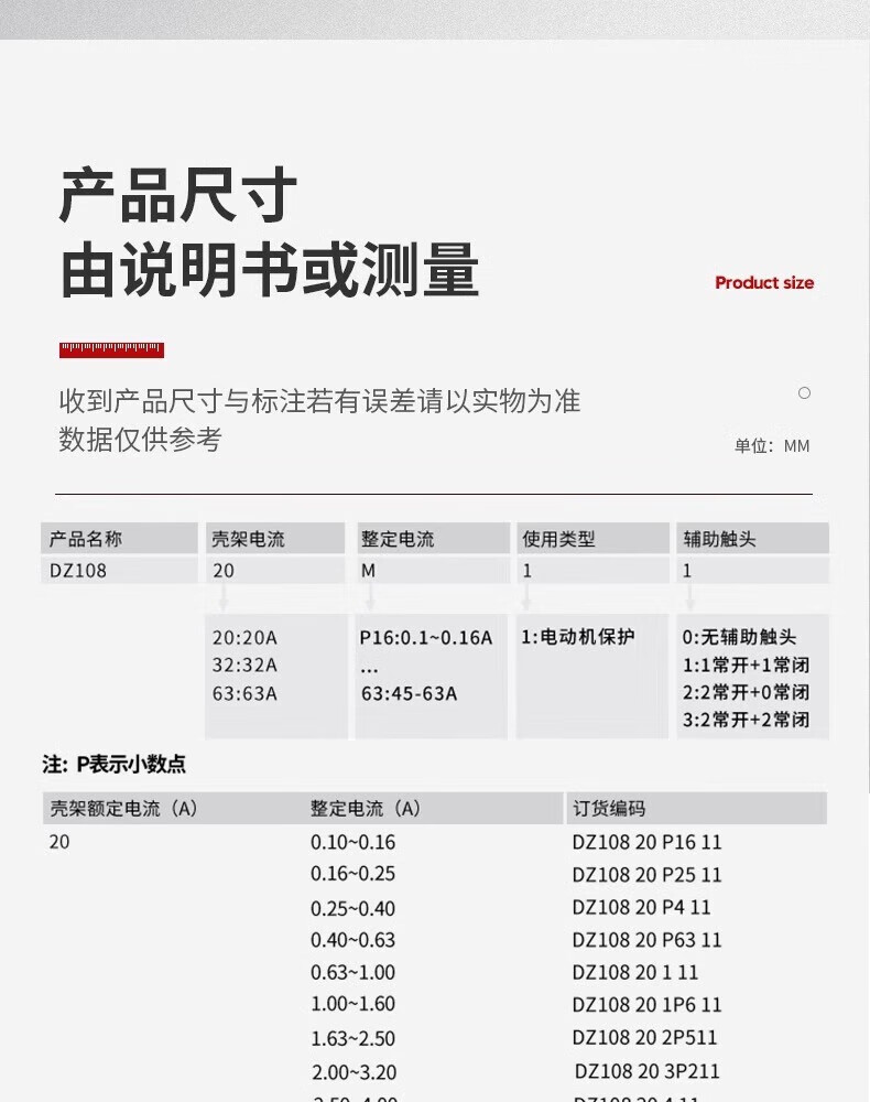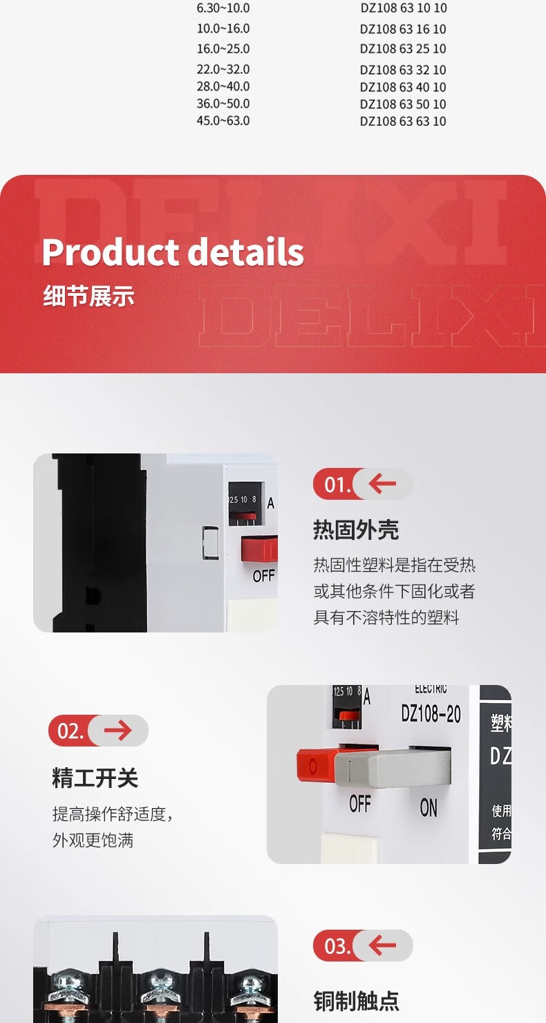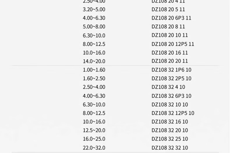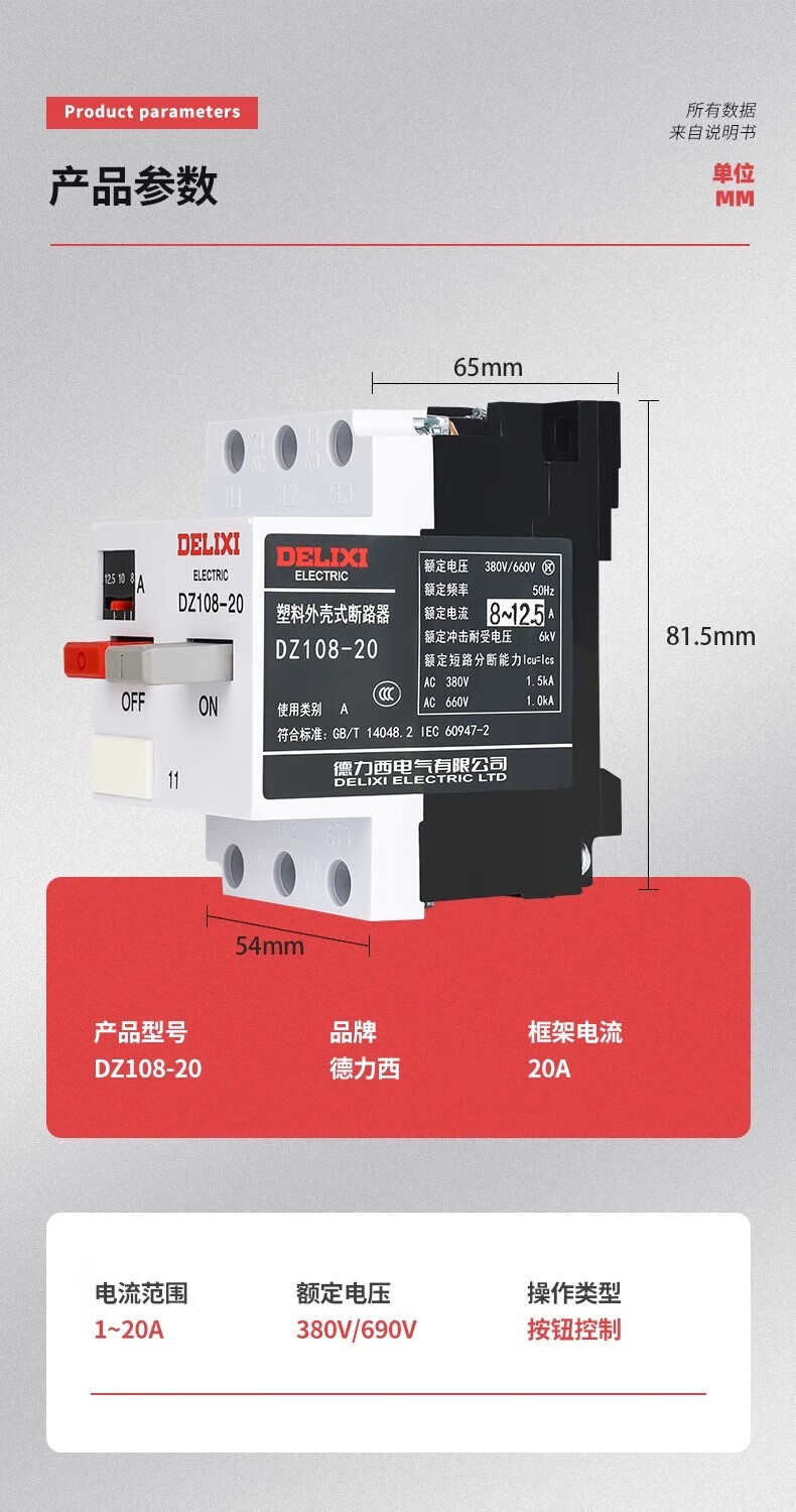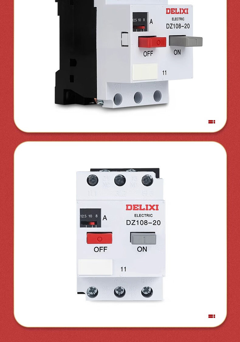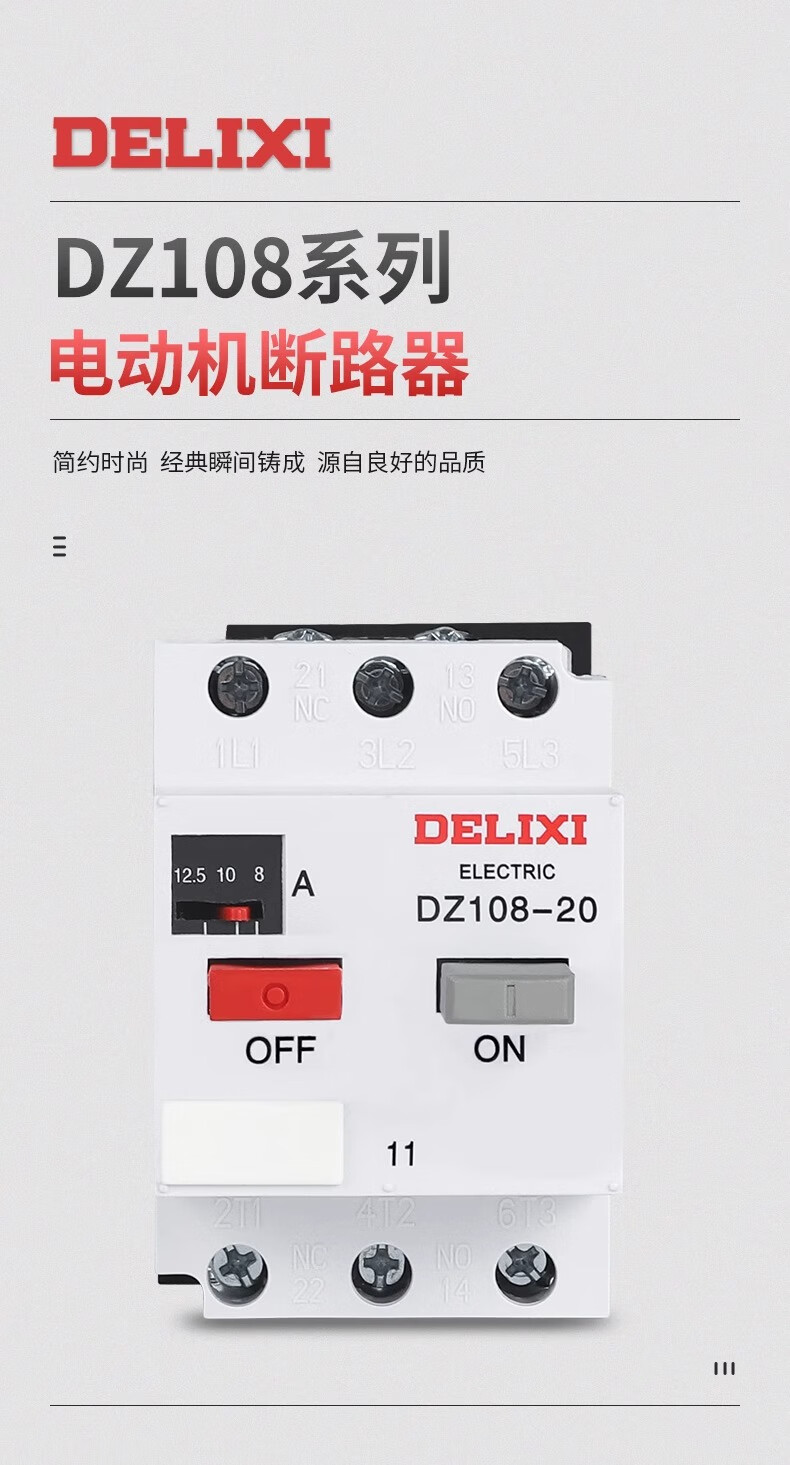 Delixi 10A motor DZ108-20 2.5A3.2A4A5A6.3A 8A12.5A20A circuit breaker DZ108-20/11 16A