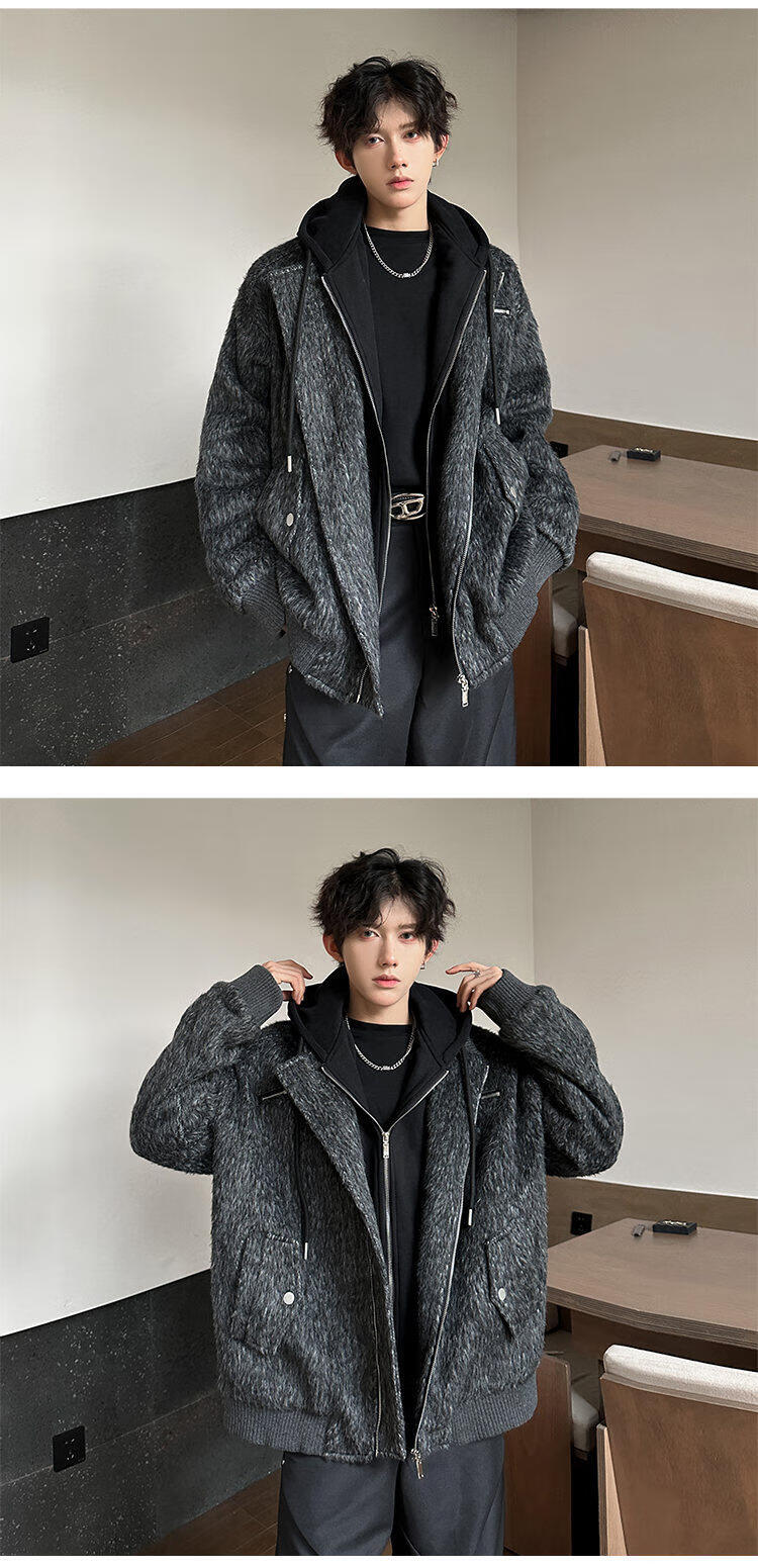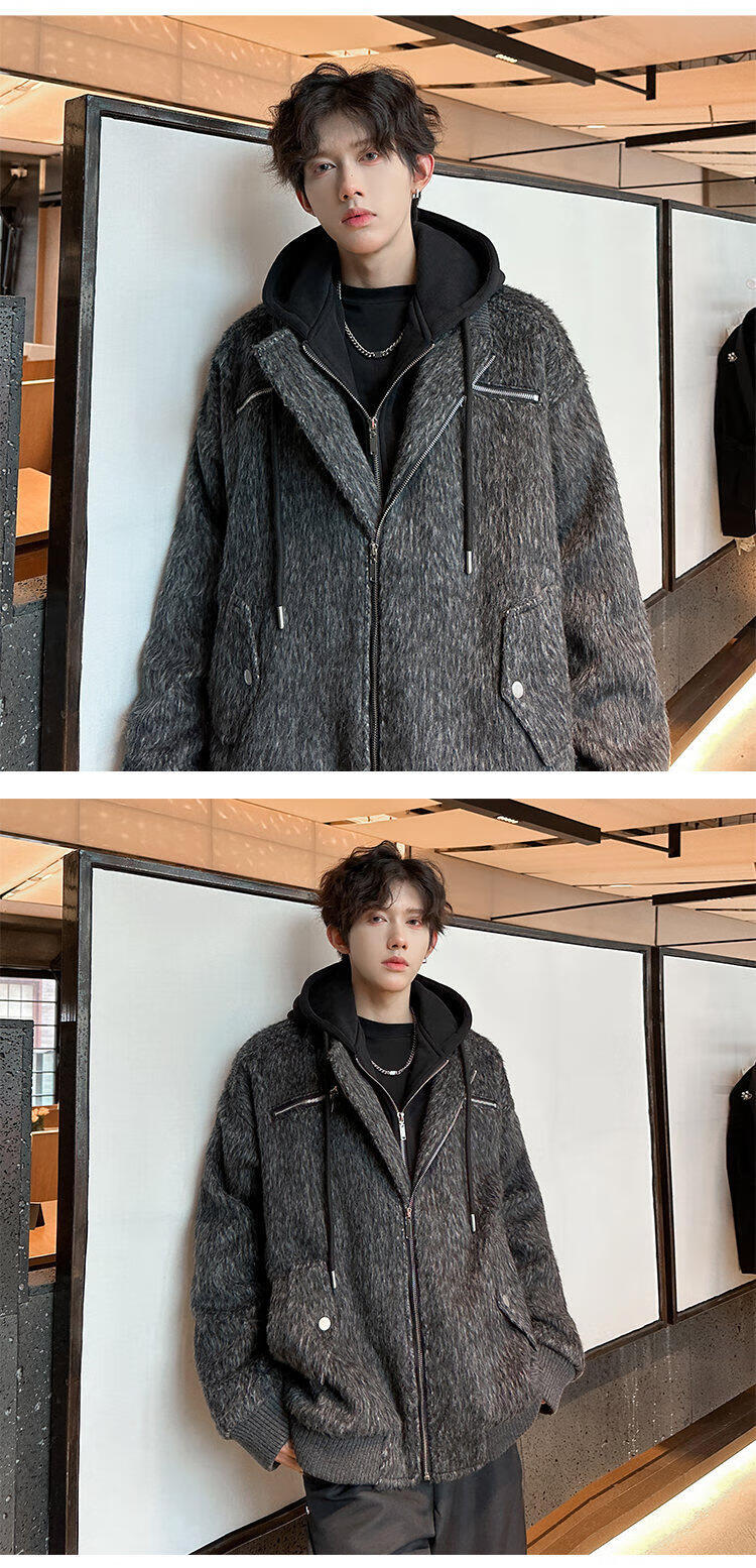 The most beautiful retro woolen hooded fake two-piece jacket for men in autumn and winter new design trendy casual tops gray XL recommended 125-145Jin Jin equals 0.5 kg