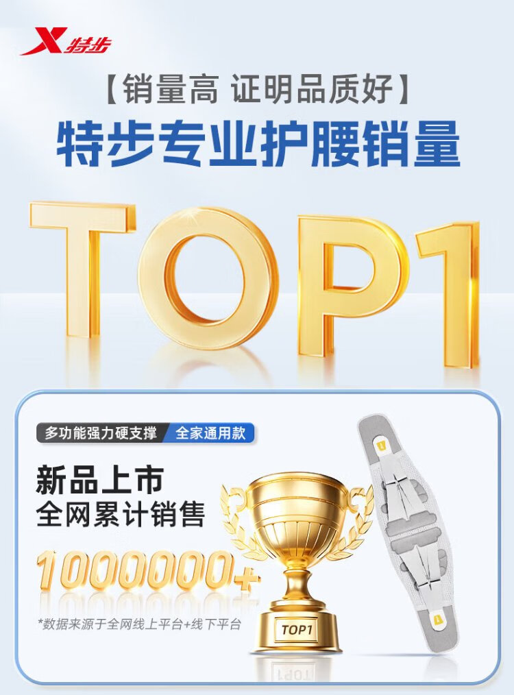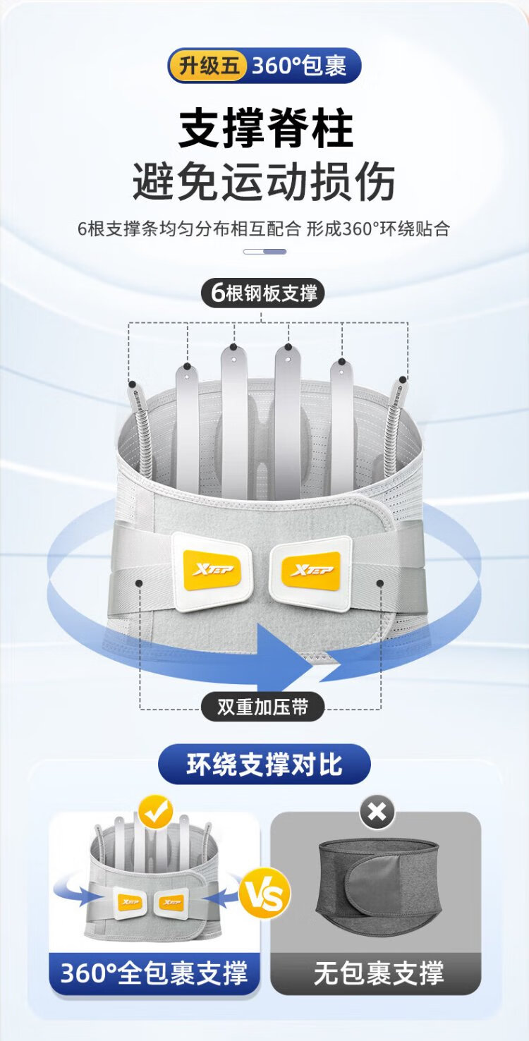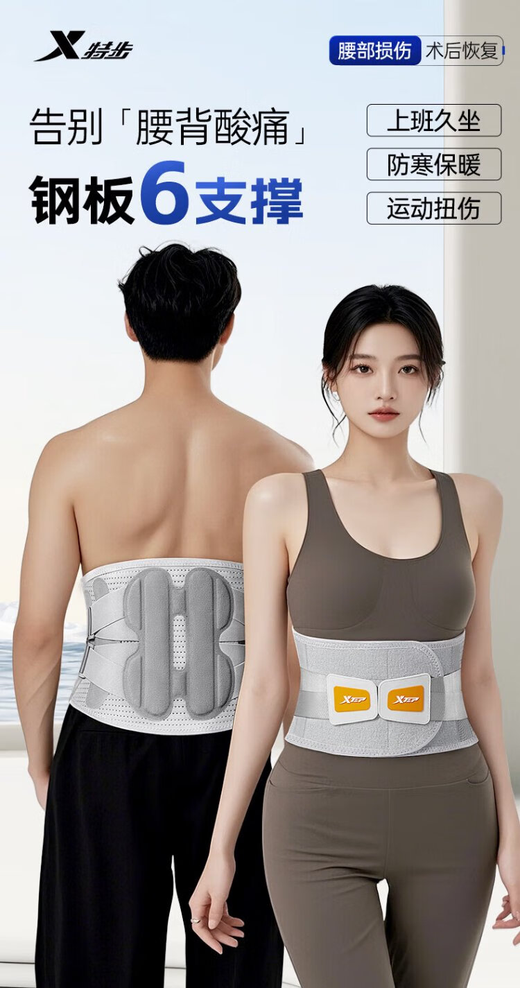 XTEP (XTEP) waist support belt for medical sports and fitness with long standing waist support for men and women with lumbar muscle strain protection belt L size 100-140Jin Jin is equal to 0.5kg waist circumference 80-95cm double pressure / 6 pieces genuine guarantee