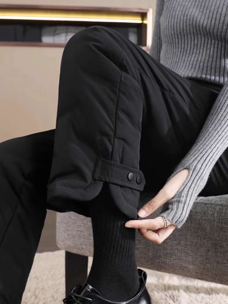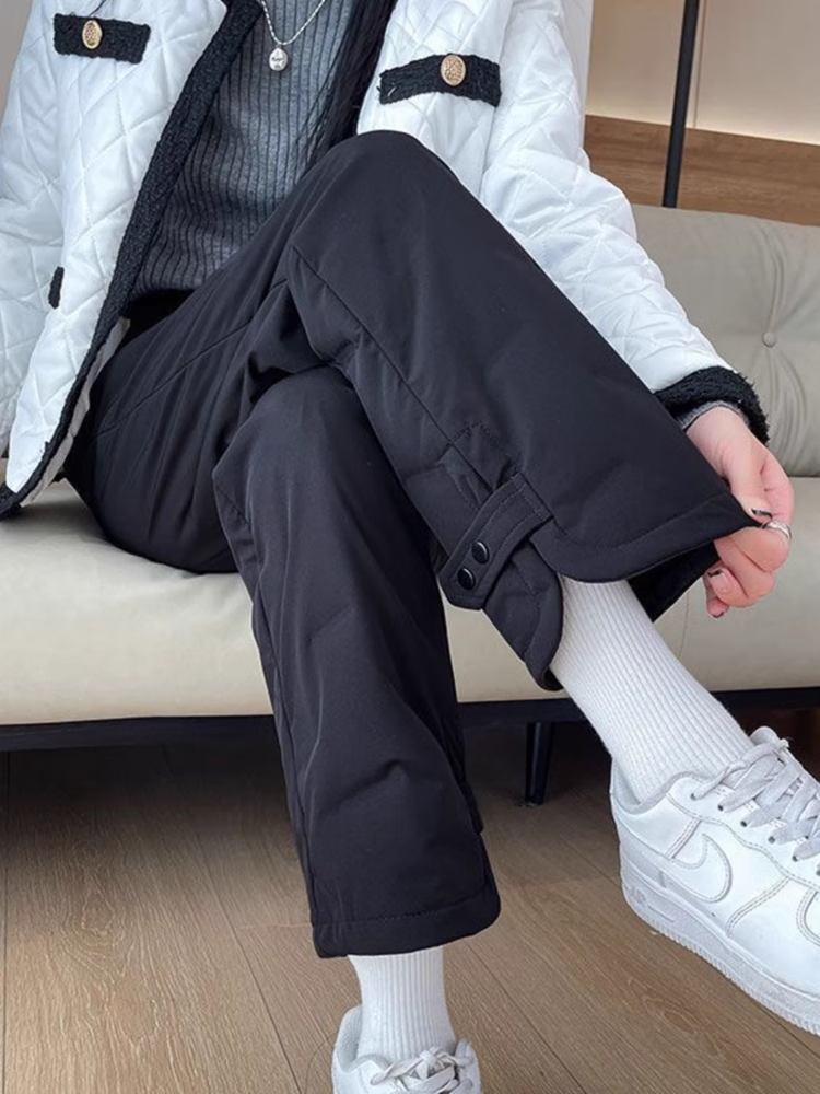 Pierre Cardin cotton trousers for women, winter 2026 new style outer wear, fashionable high-waisted windproof, cold-proof and warm straight workwear down cotton trousers, beige M 80-100Jin Jin is equal to 0.5 kg