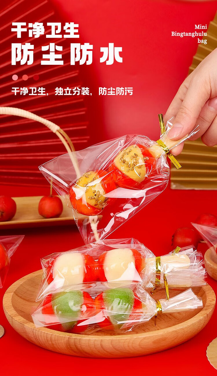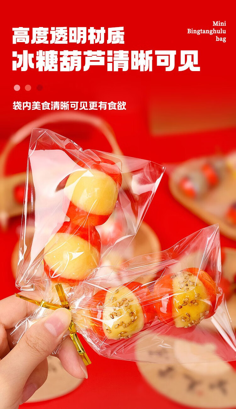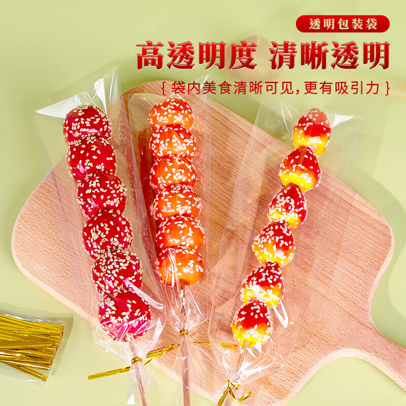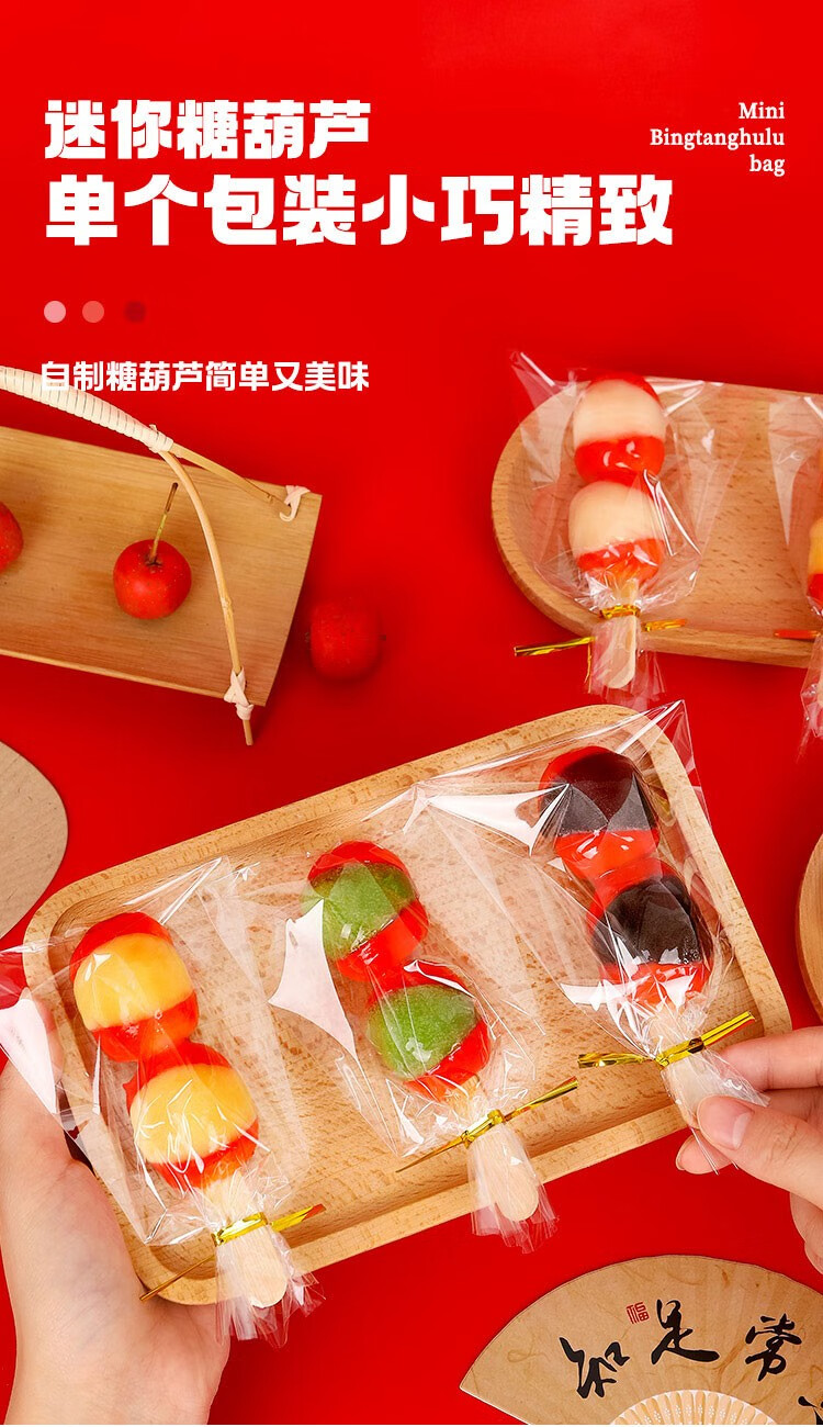 Muyu candied haws packaging bag transparent marshmallow packaging old Beijing mini strawberry small bunch candied haws special bag large paper bag 10*30cm 50 pieces