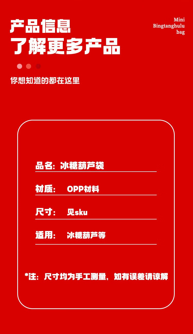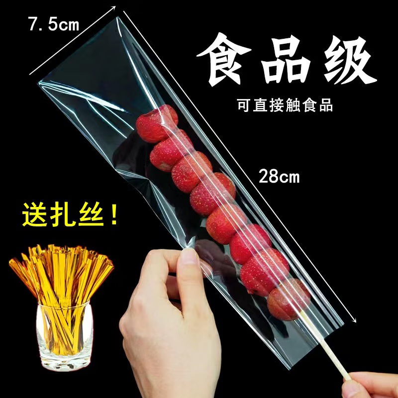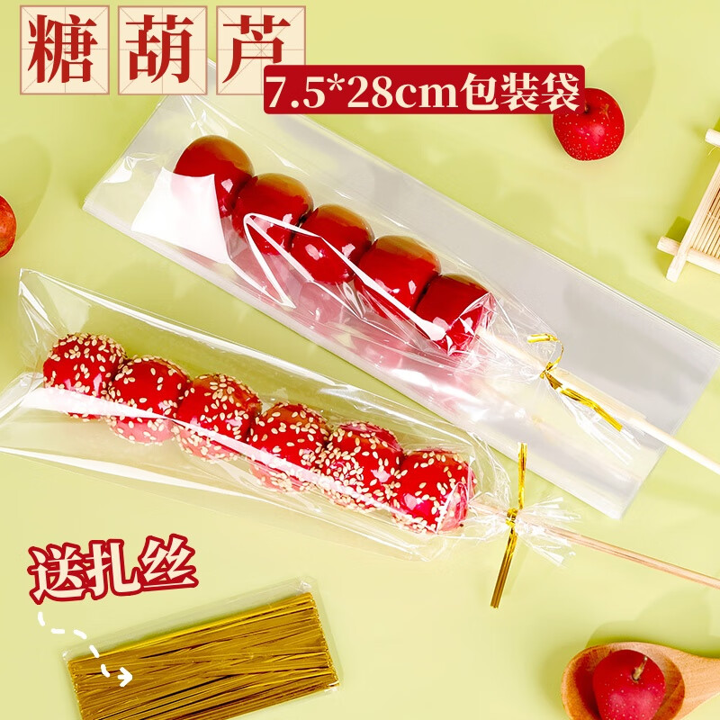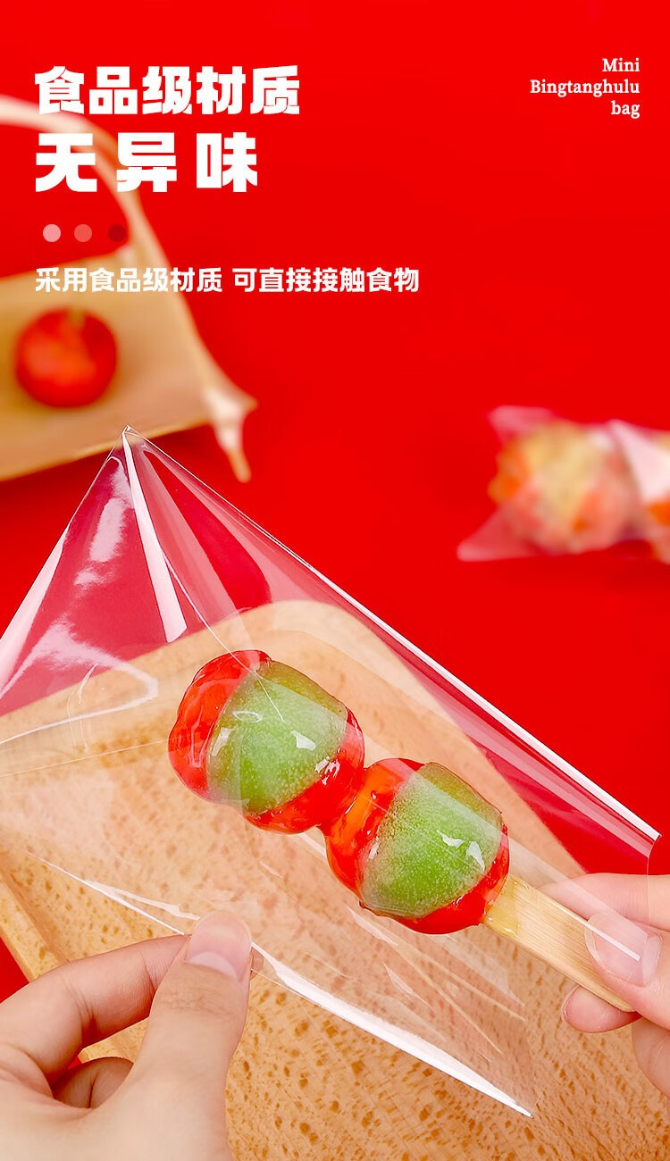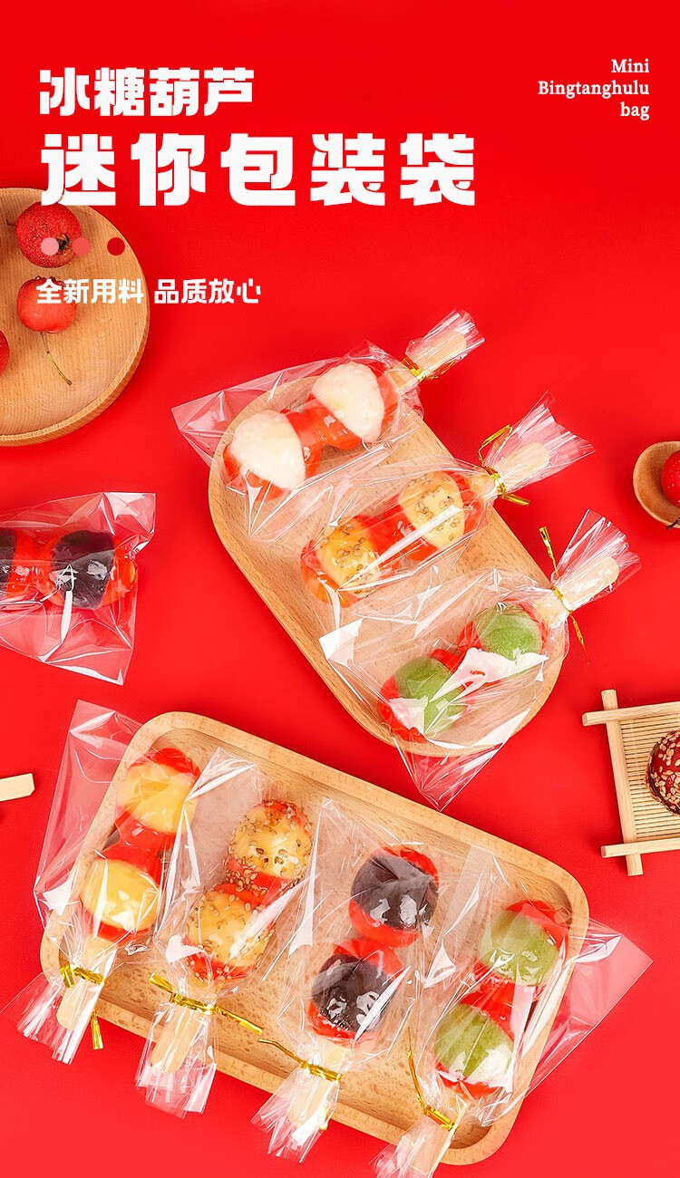 Muyu candied haws packaging bag transparent marshmallow packaging old Beijing mini strawberry small bunch candied haws special bag large paper bag 10*30cm 50 pieces