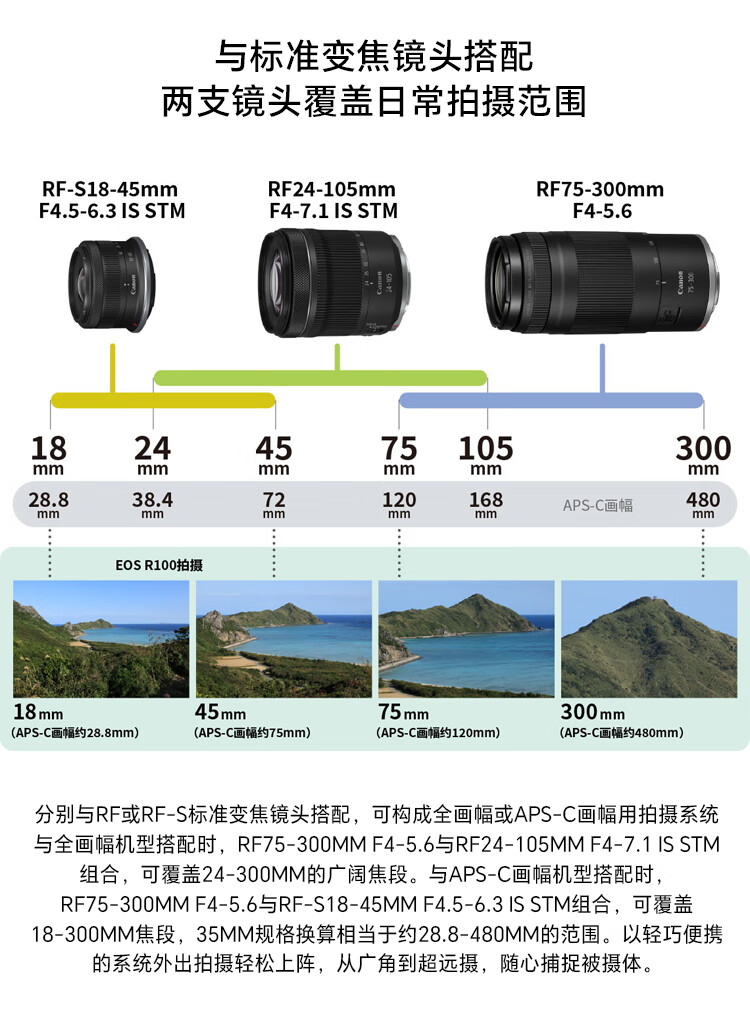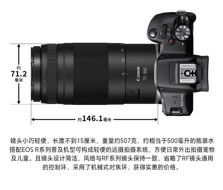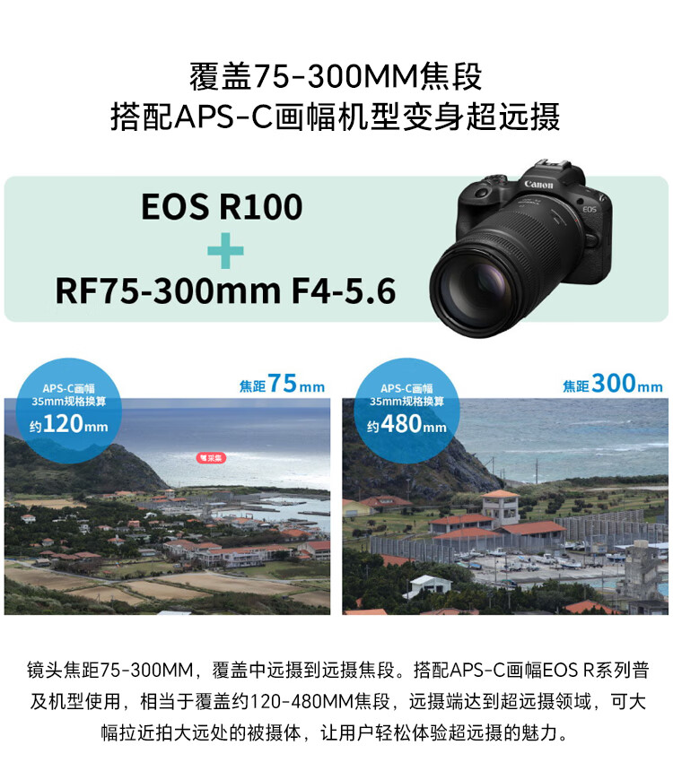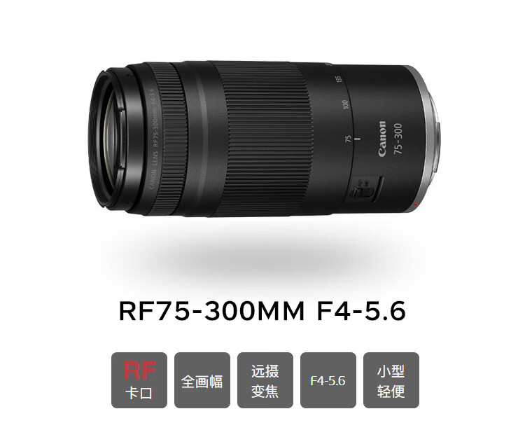 Canon rf75-300 telephoto zoom lens, full frame, travel street photography, bird shooting, suitable for R series mirrorless cameras R7R8R10R50R100 RF75-300mm F4-5.6 official standard no filter accessories ~ recommended package