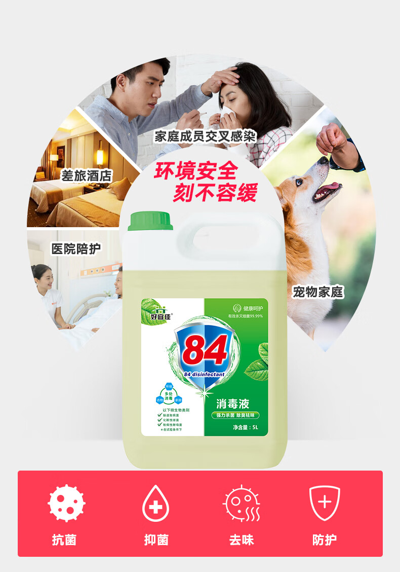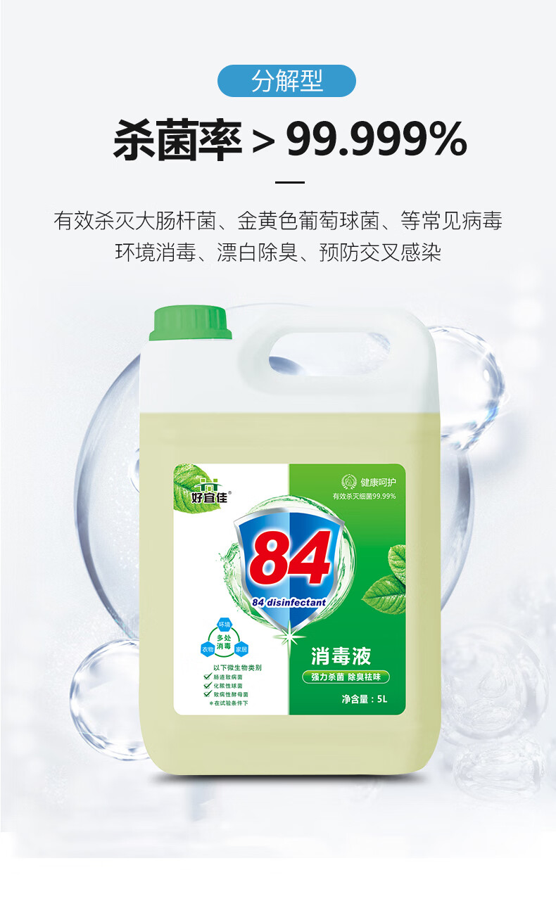 Disinfection and sterilization Haoyijia 84 disinfectant in large barrels for hotels, restaurants, dormitories, household bleaching, disinfection and sterilization, ten Jin Jin is equal to 0.5 kg, large barrels, free spray bottle