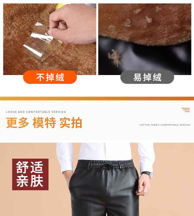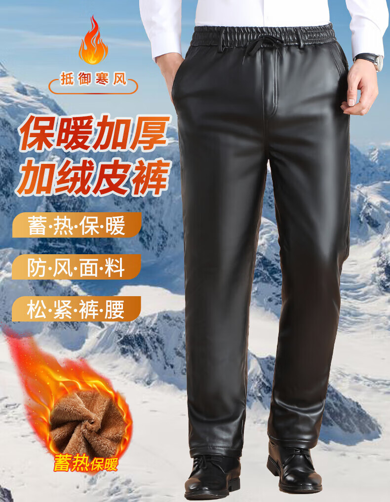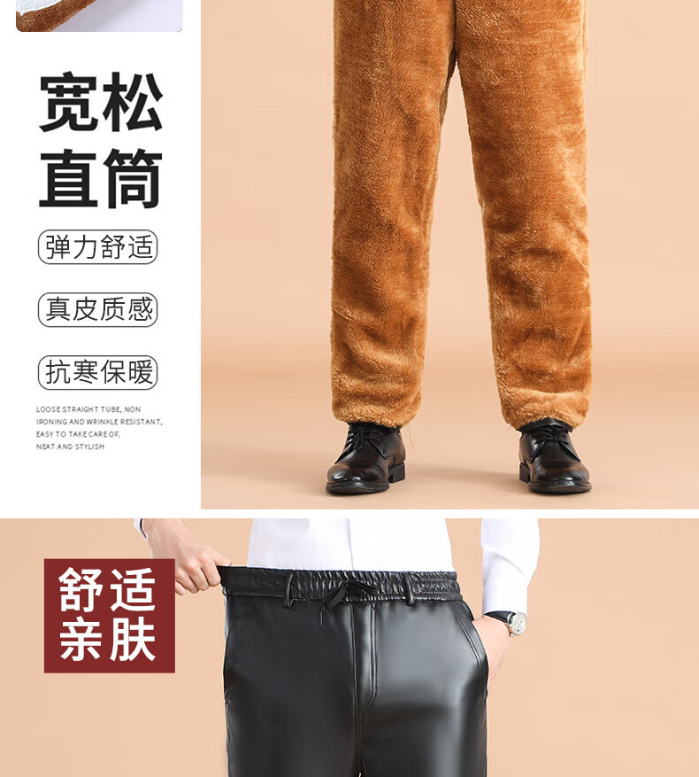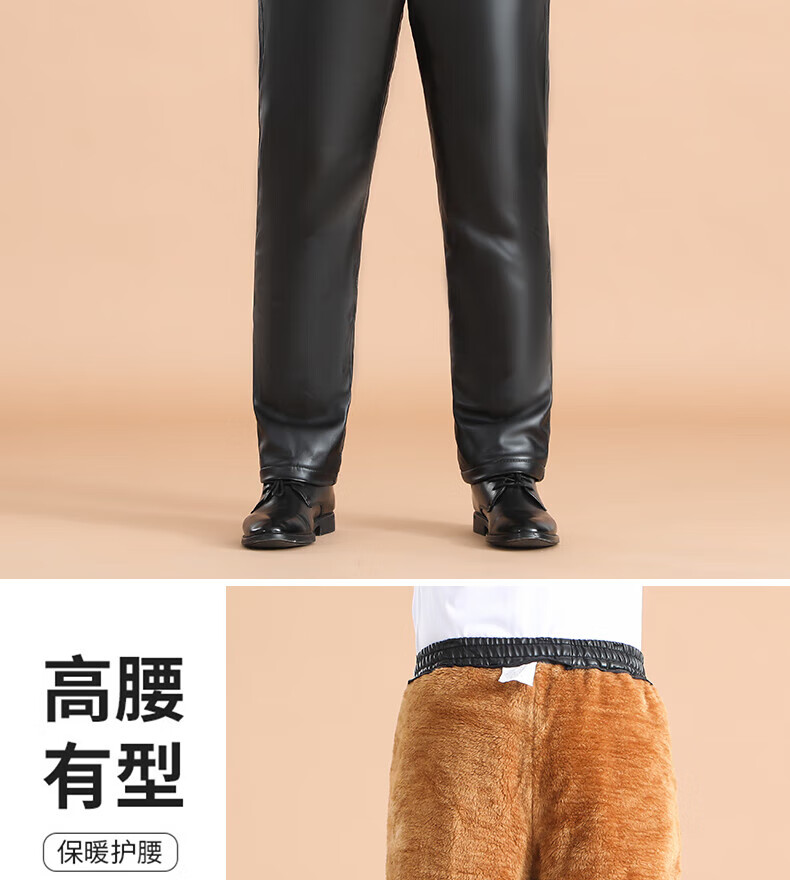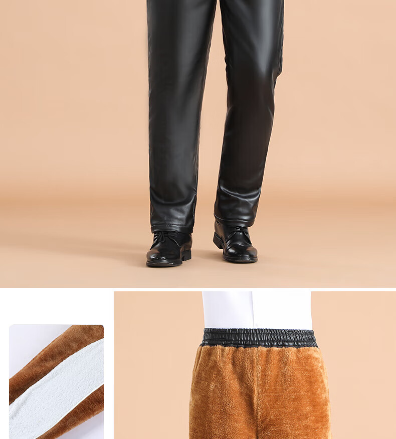 Woodpecker Men's Leather Pants Loose Windproof Warmth Plus Velvet Thickened Waterproof Motorcycle Cycling Wear-Resistant Middle-aged and Elderly Labor Protection Work Pants 20850/162 Leather Pants Gold Velvet Fully Elastic 2XL