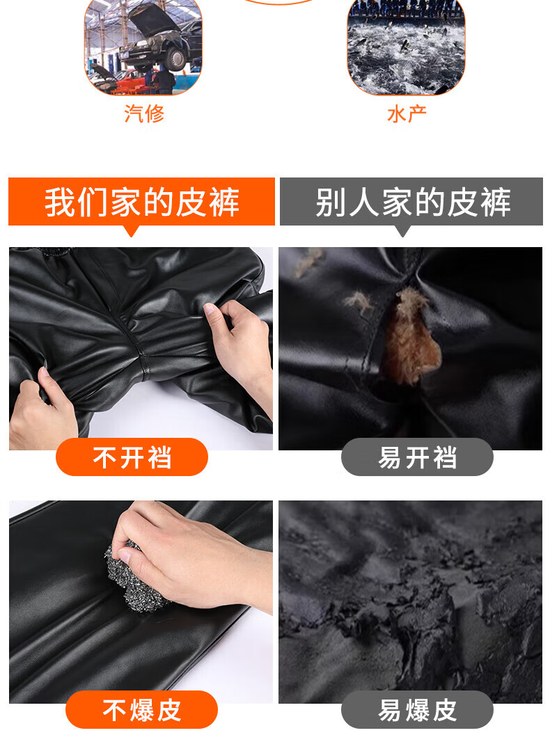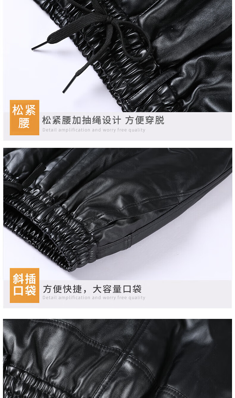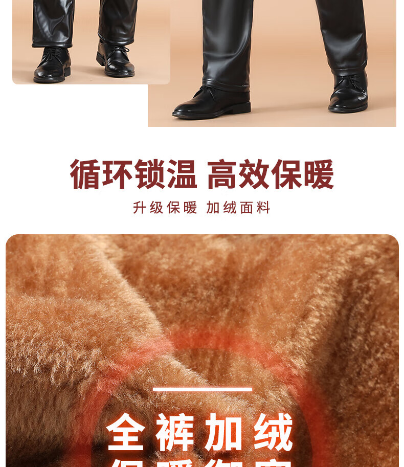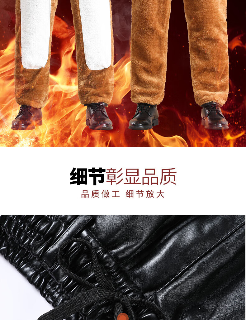 Woodpecker Men's Leather Pants Loose Windproof Warmth Plus Velvet Thickened Waterproof Motorcycle Cycling Wear-Resistant Middle-aged and Elderly Labor Protection Work Pants 20850/162 Leather Pants Gold Velvet Fully Elastic 2XL