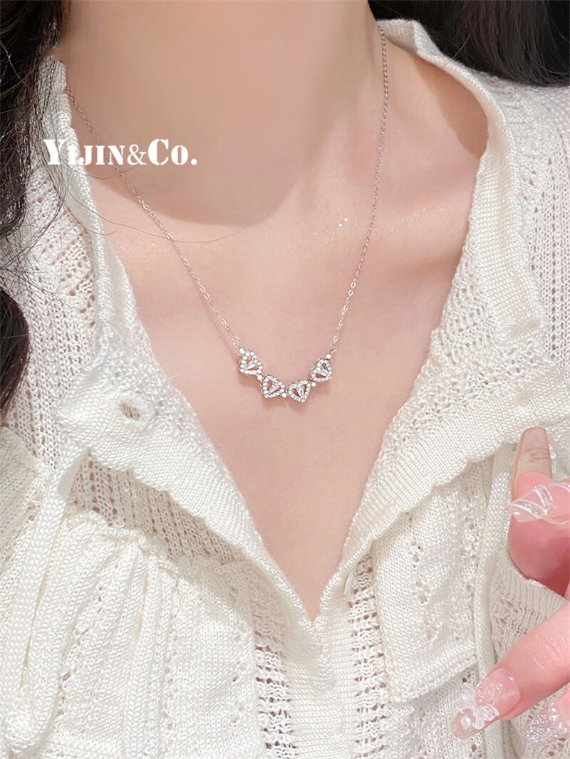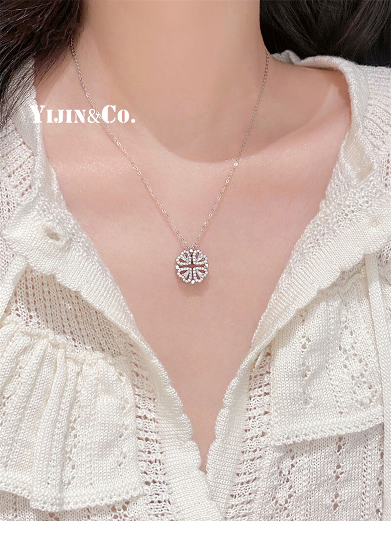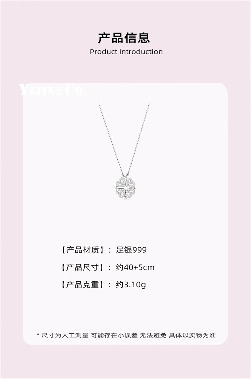 Yijin S999 sterling silver four-leaf clover, a two-wear necklace for girls, light luxury niche clavicle chain as a birthday gift for best friend, 999 sterling silver-four-leaf clover necklace, exquisite gift box