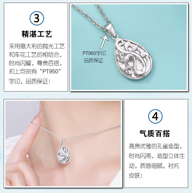 Yuan Shengfu's new PT950 boutique fashion peacock platinum pendant genuine atmospheric platinum necklace pendant for women 4.96 grams
