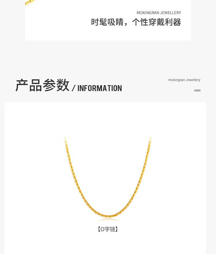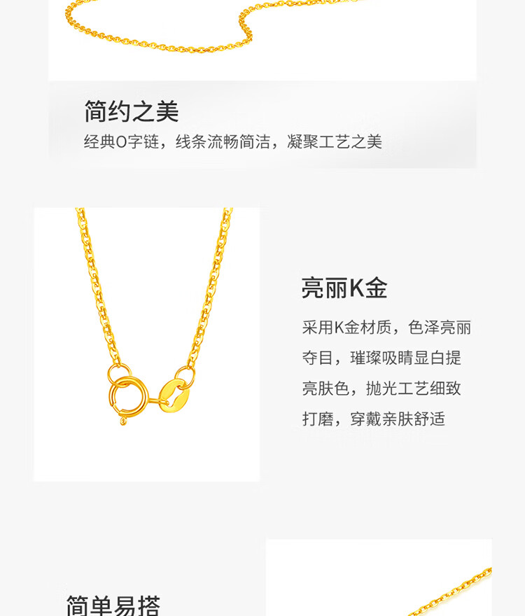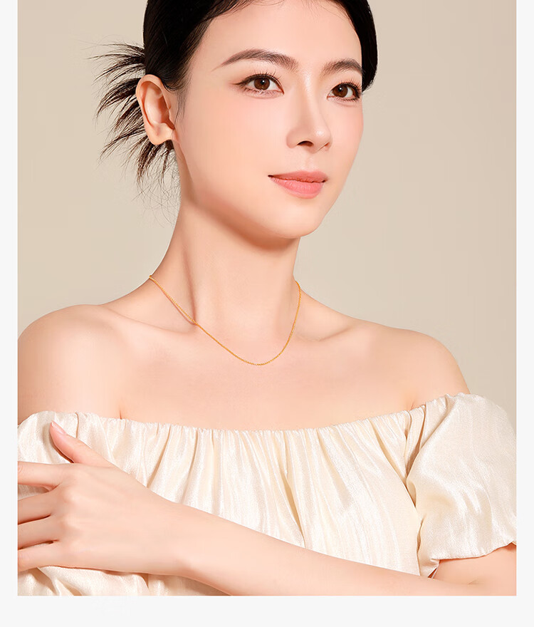 Mengjinyuan 18K gold necklace O-shaped chain, versatile clavicle chain, k yellow chain, birthday gift, about 1.85g - chain length 42+3cm, one circle adjustment