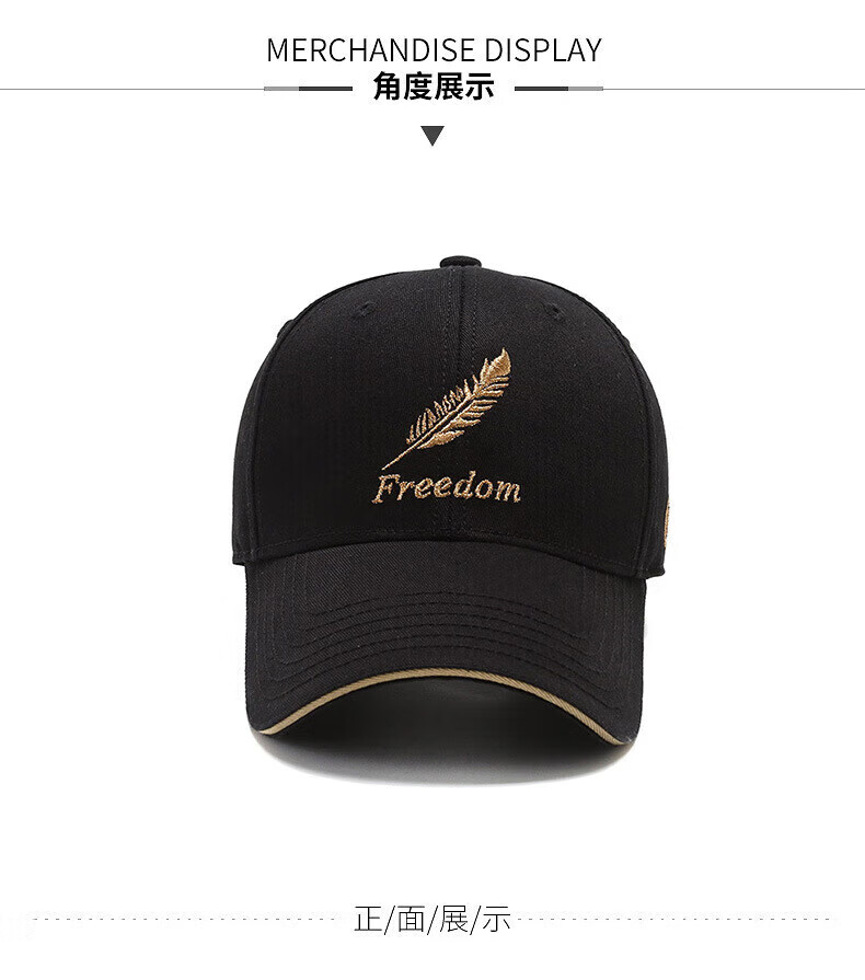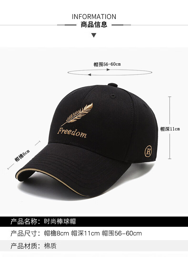 Ayub hat for men and women all seasons new peaked cap Korean style trendy outdoor casual fashion feather embroidery versatile baseball cap feather style black head circumference 55-60cm