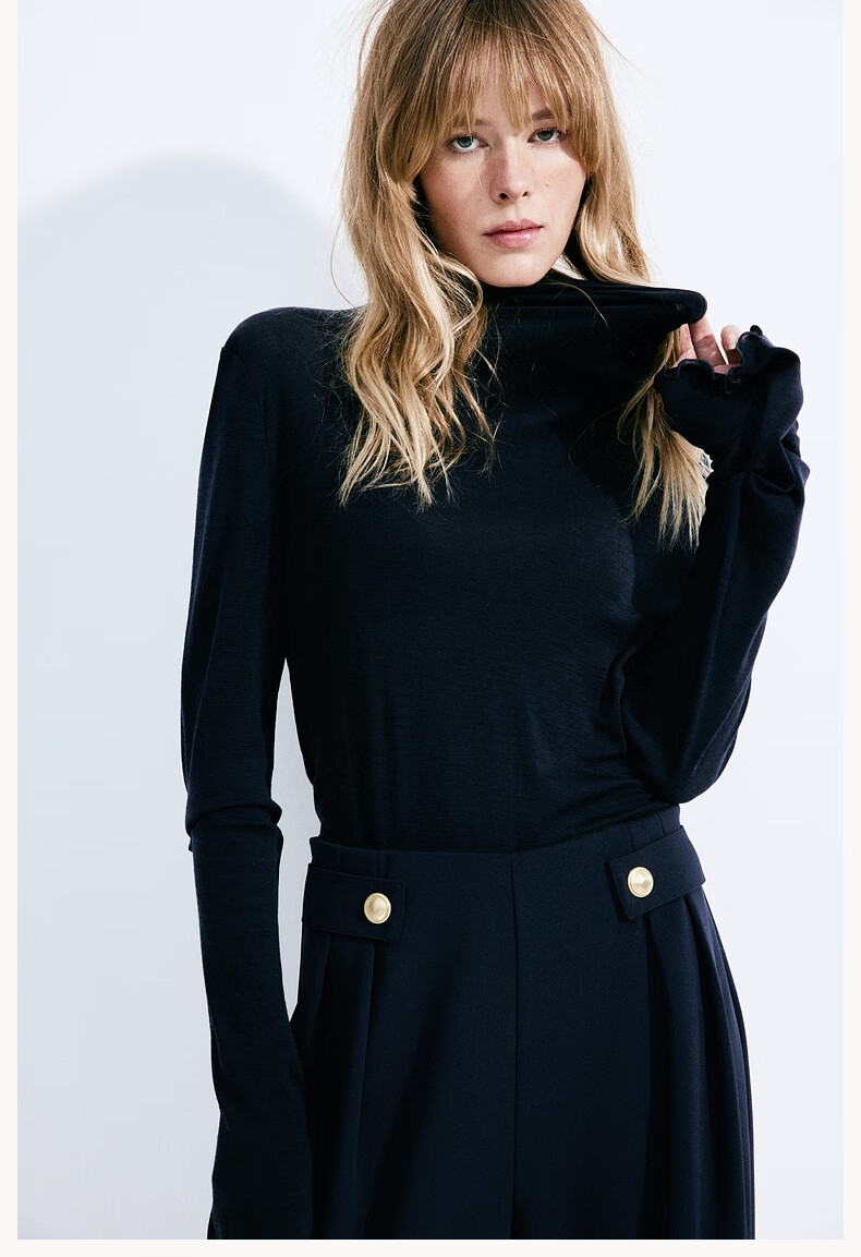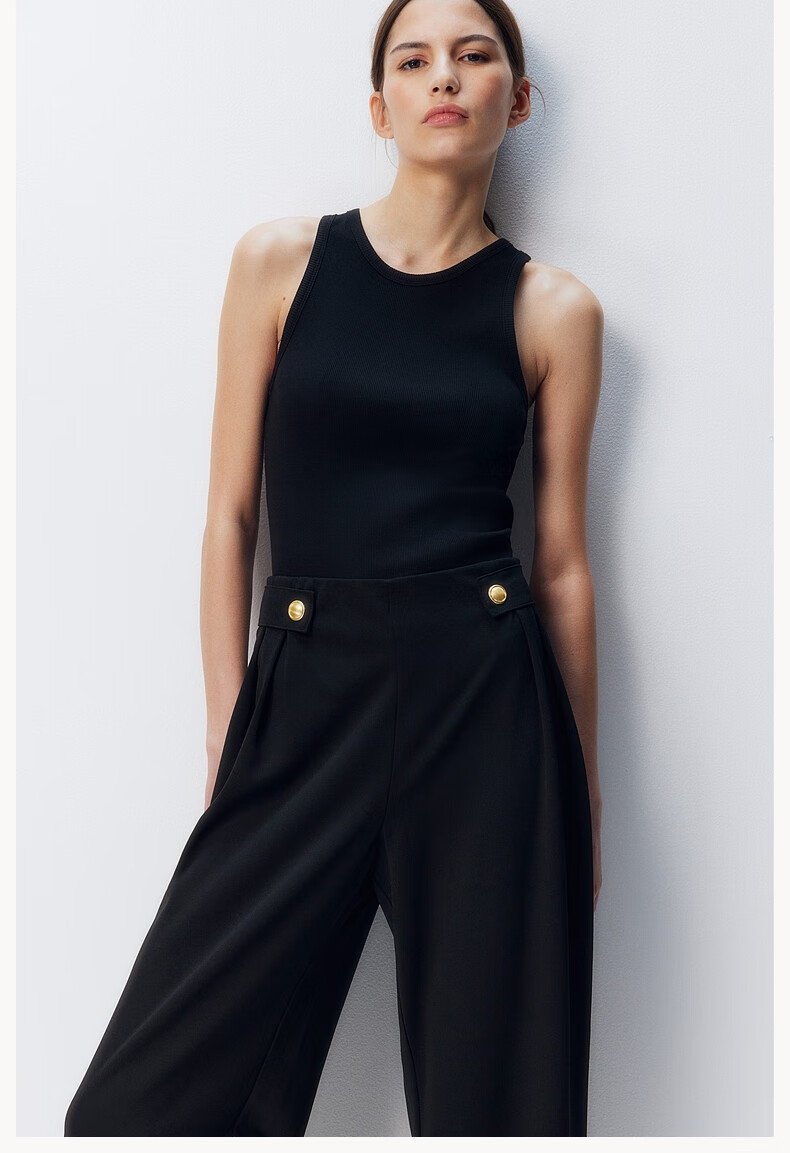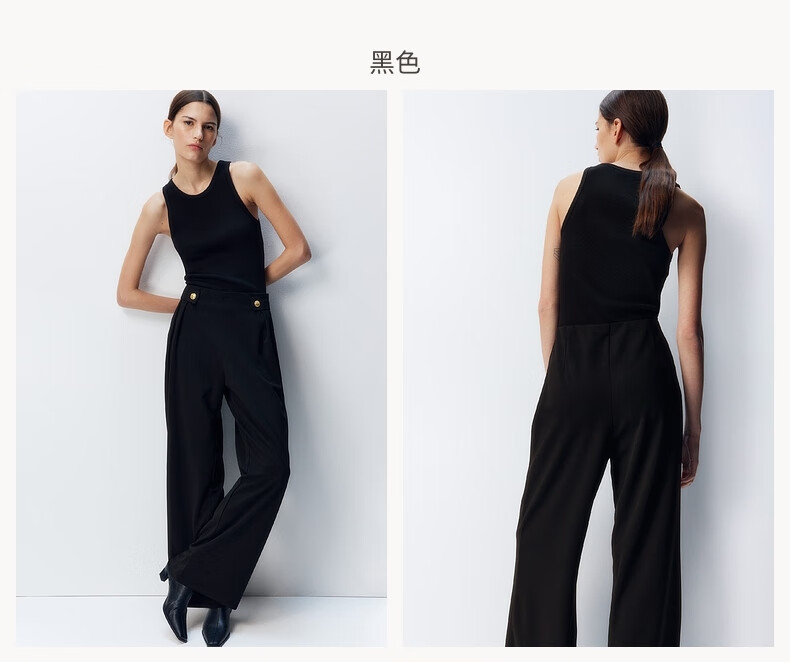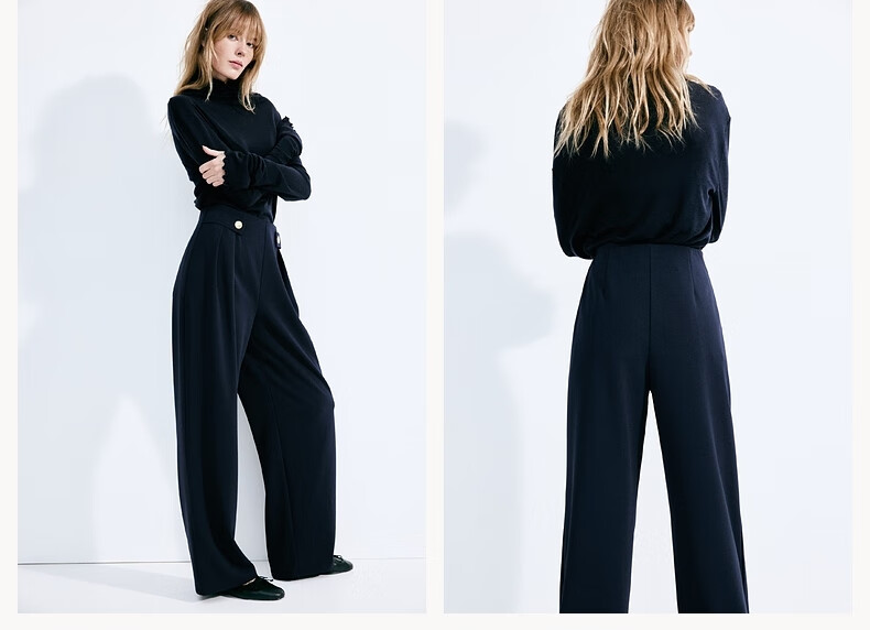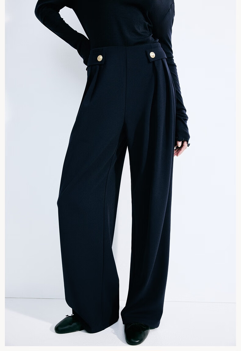 H&M Women's Suit Pants 2025 Autumn New Commuting High Waist Slim Straight Wide Leg Formal Pants 1264836 Black M 165/80
