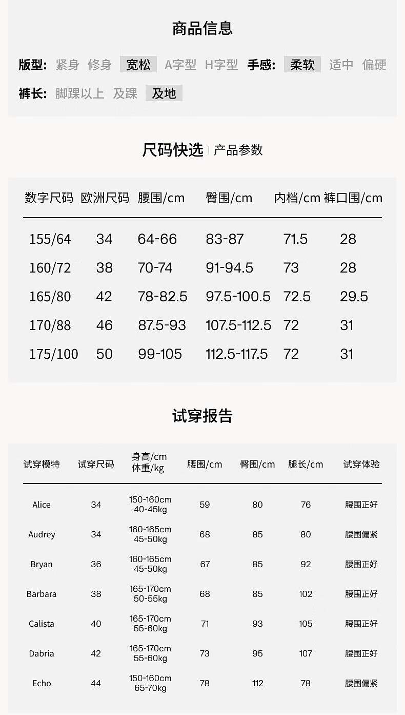 Outseam (cm) 99 cm 101.5 cm 104 cm 106.5 cm 109 cm