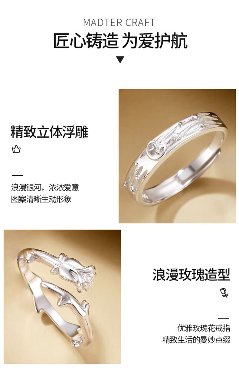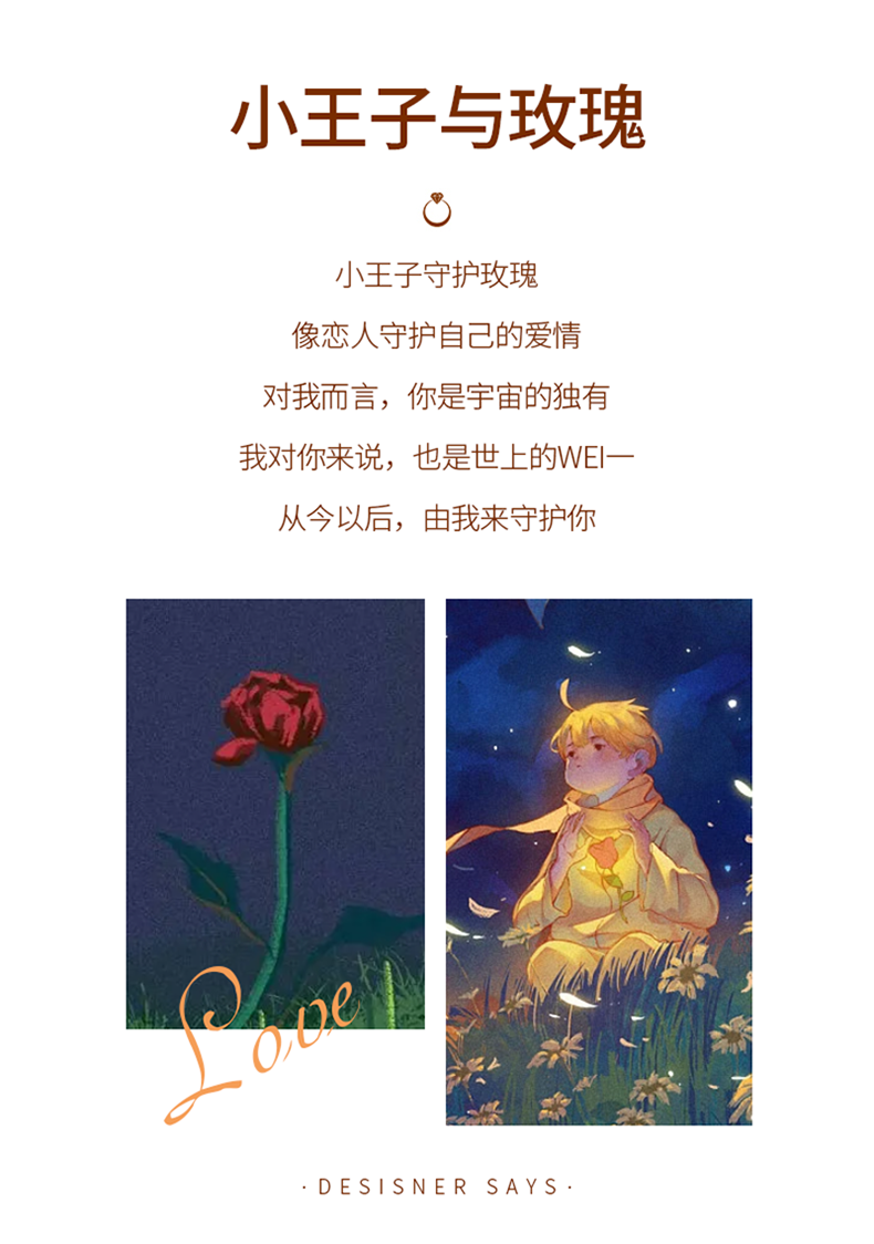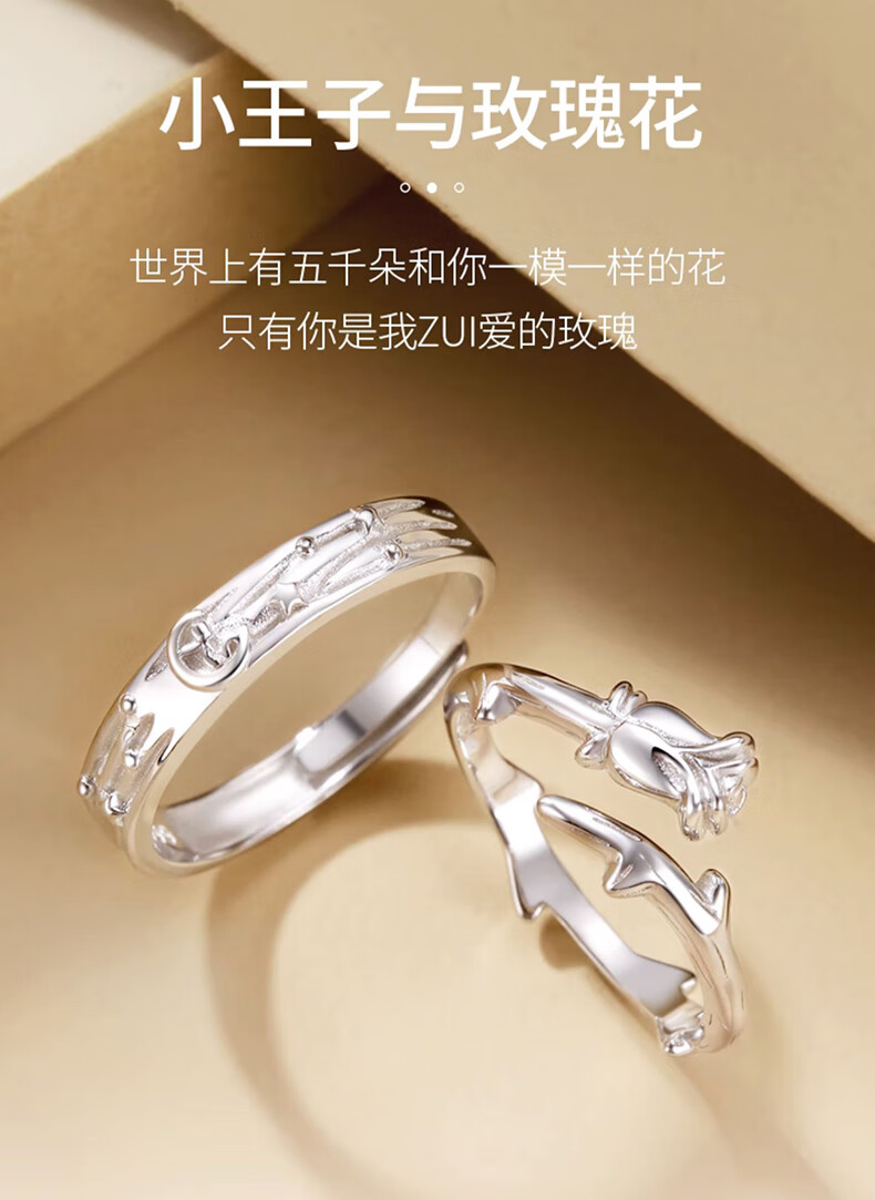 Dirholl Little Prince and Rose Platinum Ring PT950 Platinum Couple Proposal Ring 520 Valentine's Day Gift for Girlfriend Light Luxury Style - Little Prince and Rose Pair of Rings - No Engraving