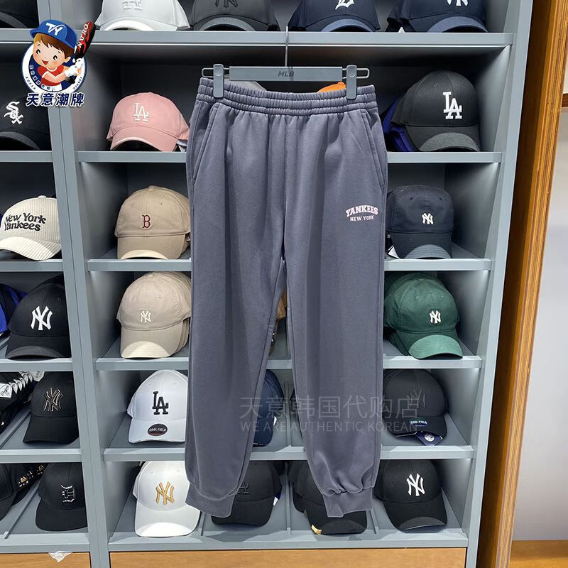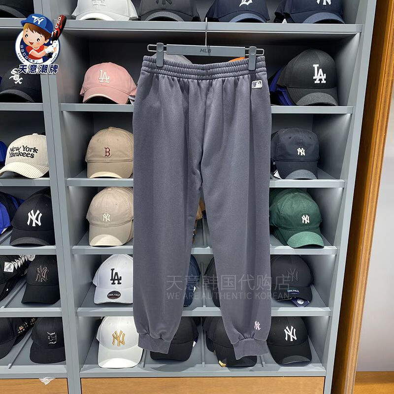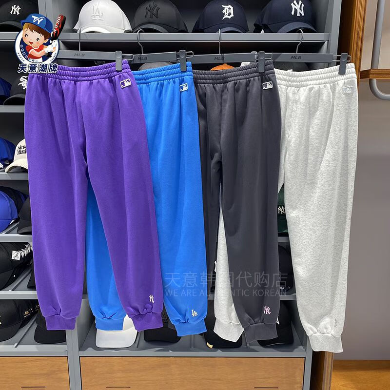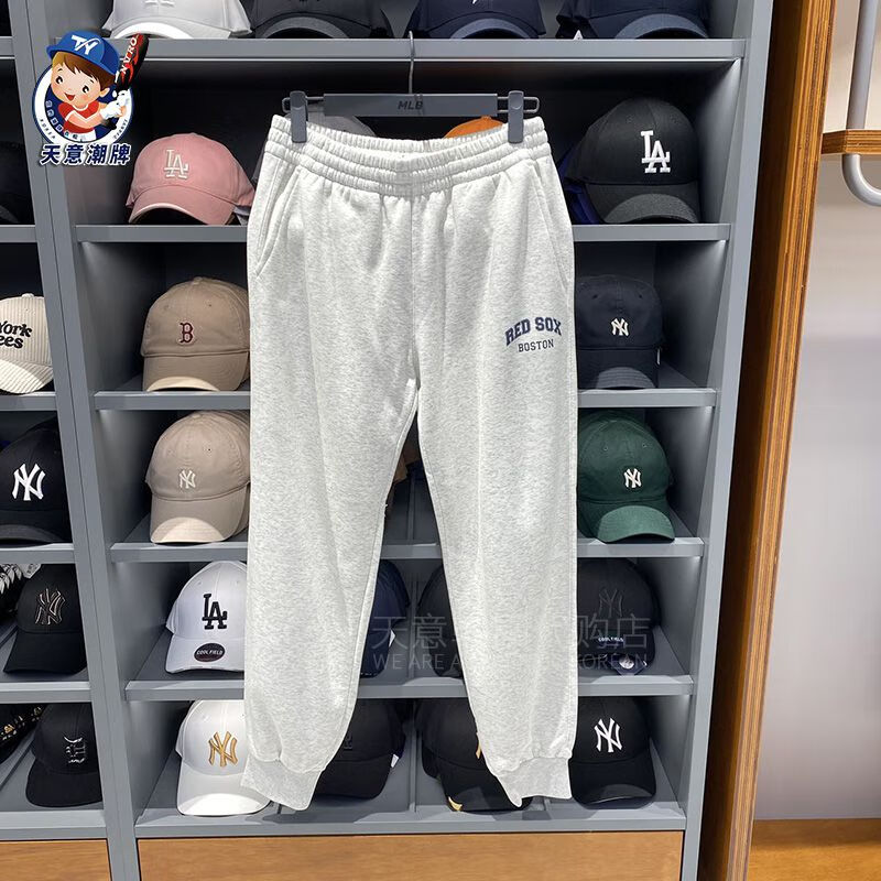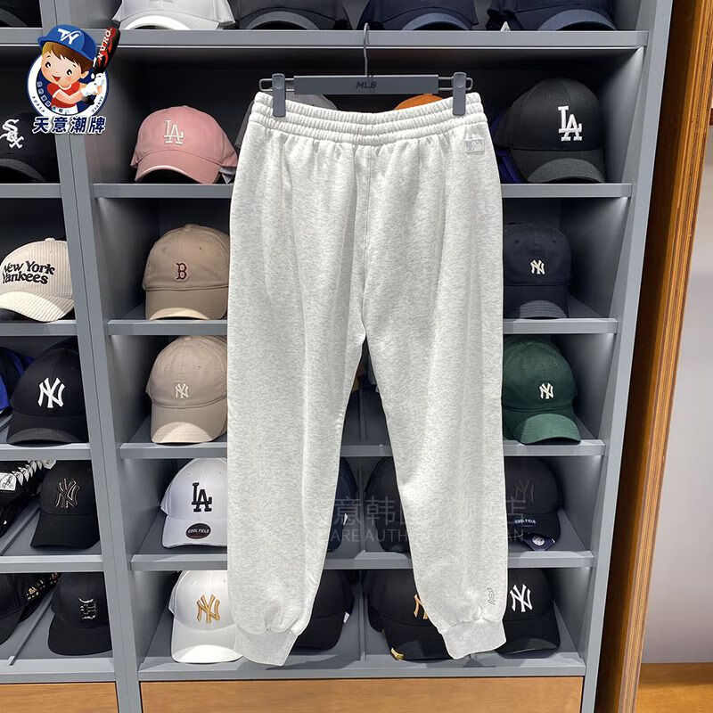 MLB sports pants 2023 autumn and winter letter contrast plus velvet sweatpants men and women same style casual pants ins gray plus velvet S