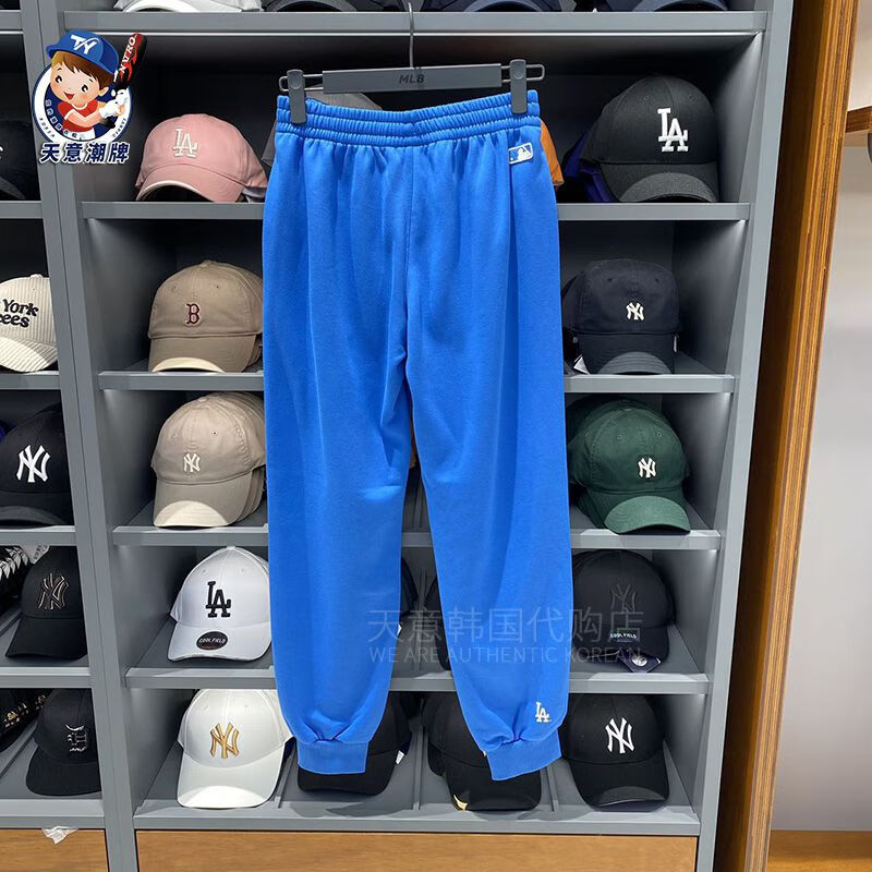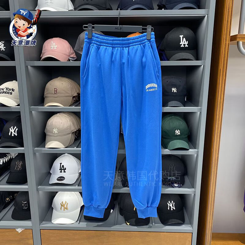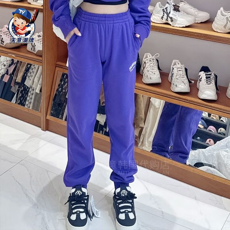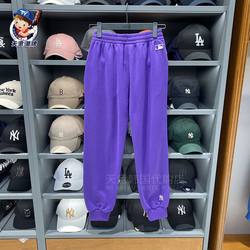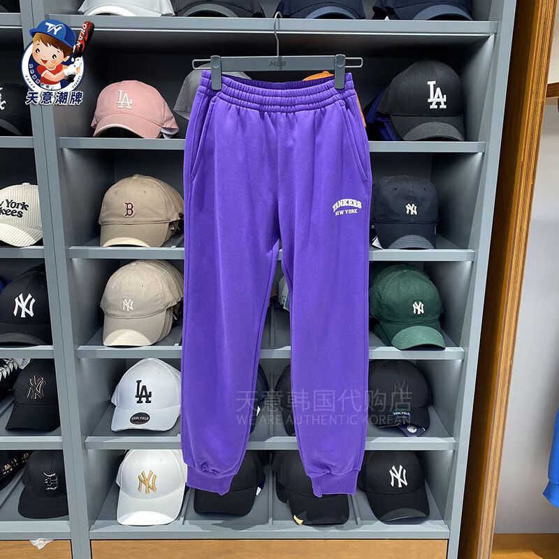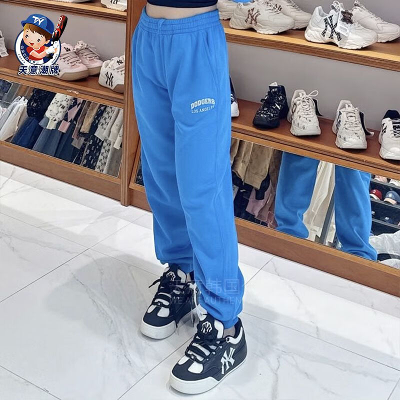 MLB sports pants 2023 autumn and winter letter contrast plus velvet sweatpants men and women same style casual pants ins gray plus velvet S
