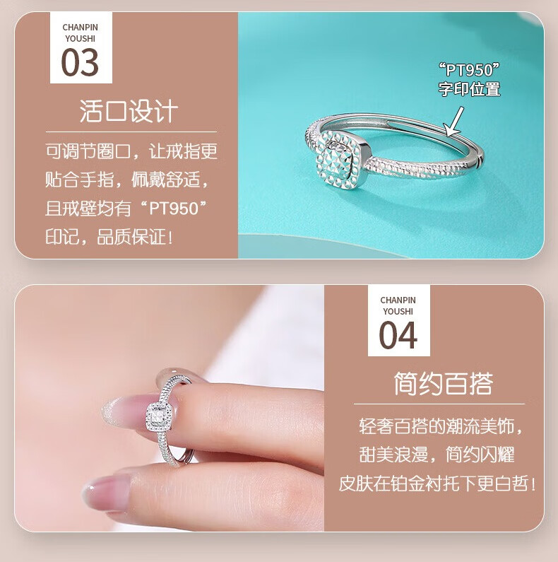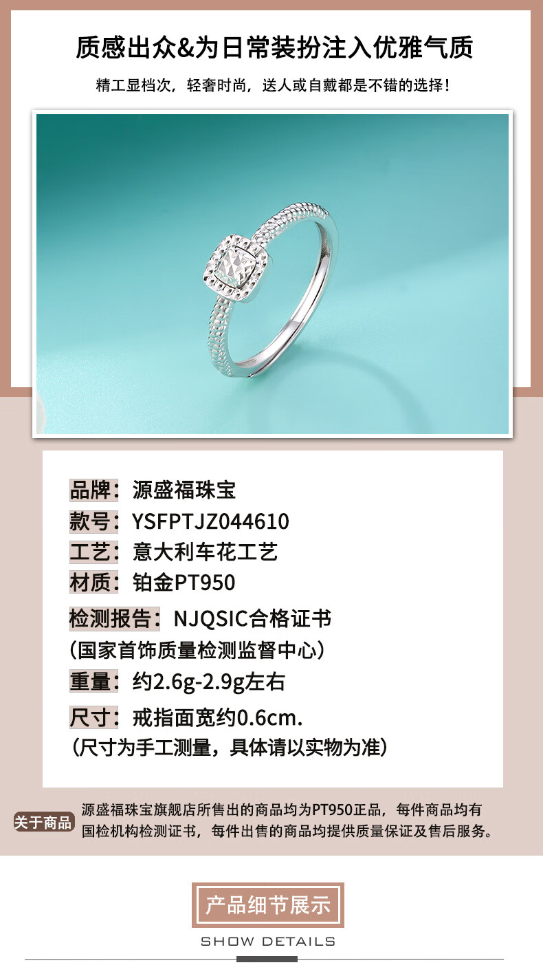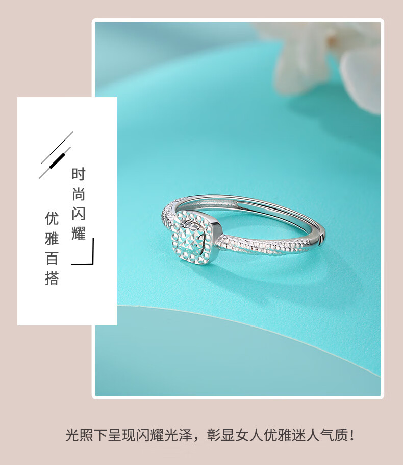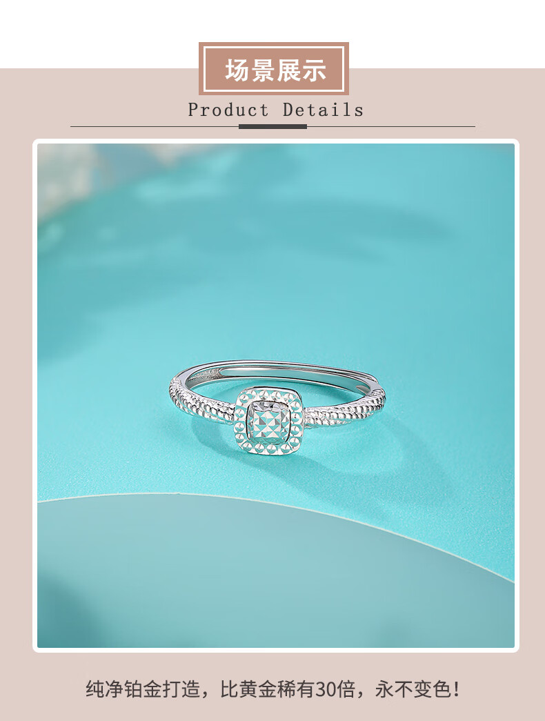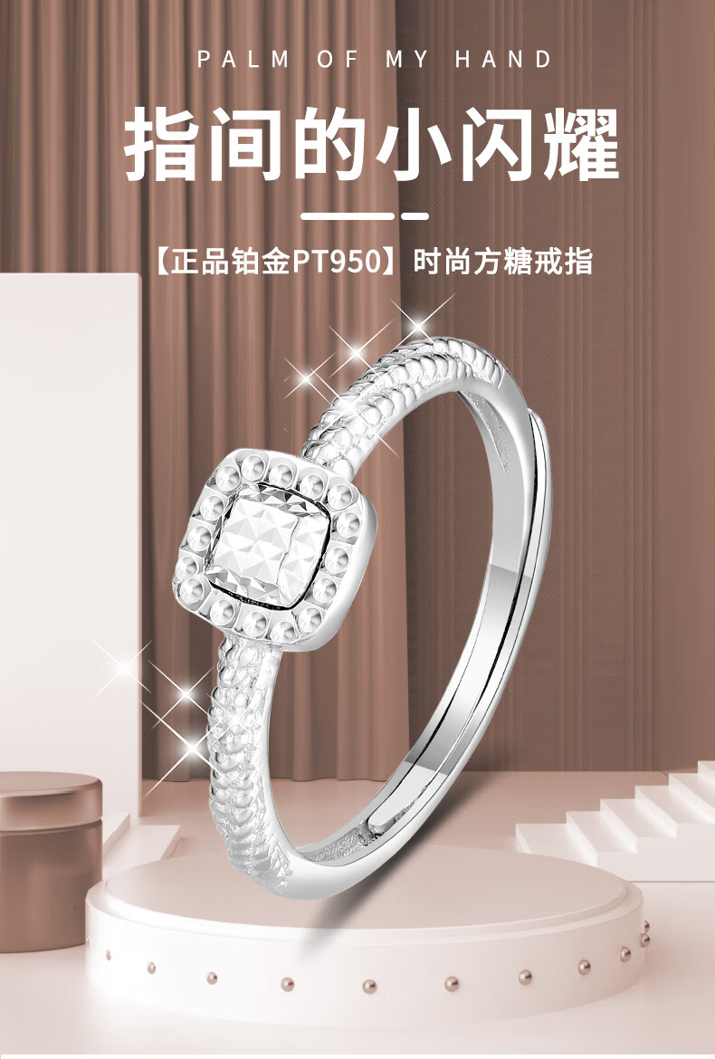 Yuan Shengfu New PT950 Fashionable Sugar Cube Platinum Ring Genuine Women's Platinum Ring Adjustable Live Shining 2.70g