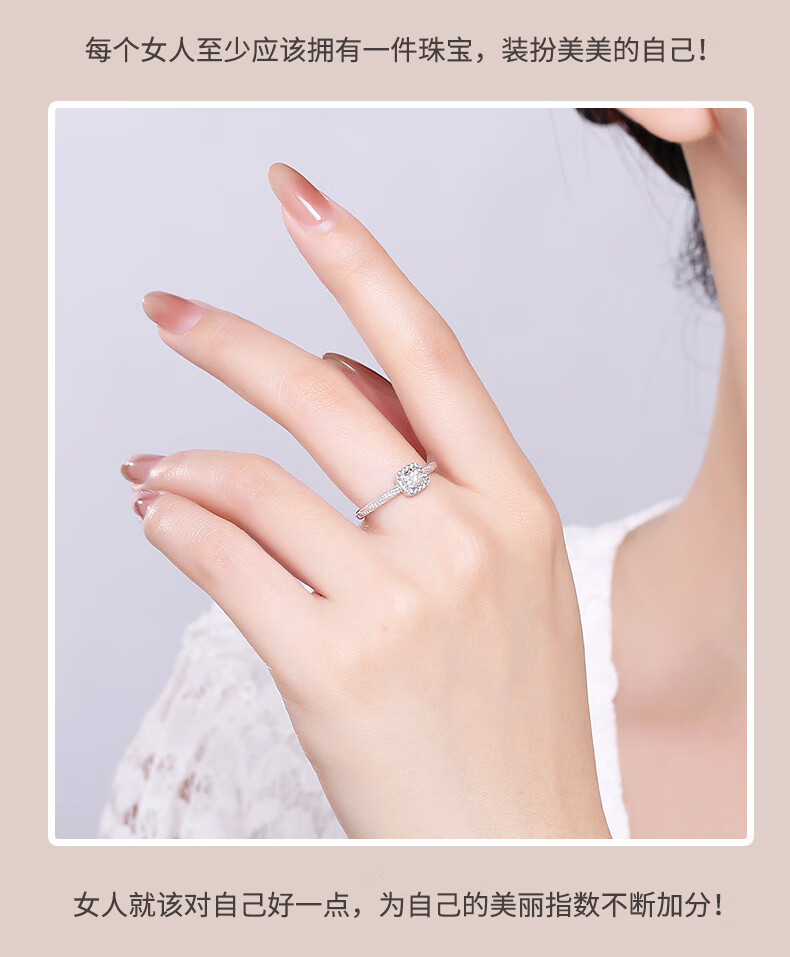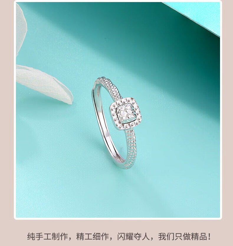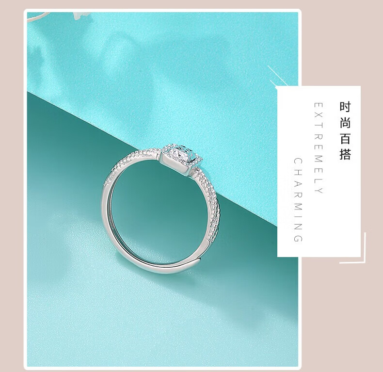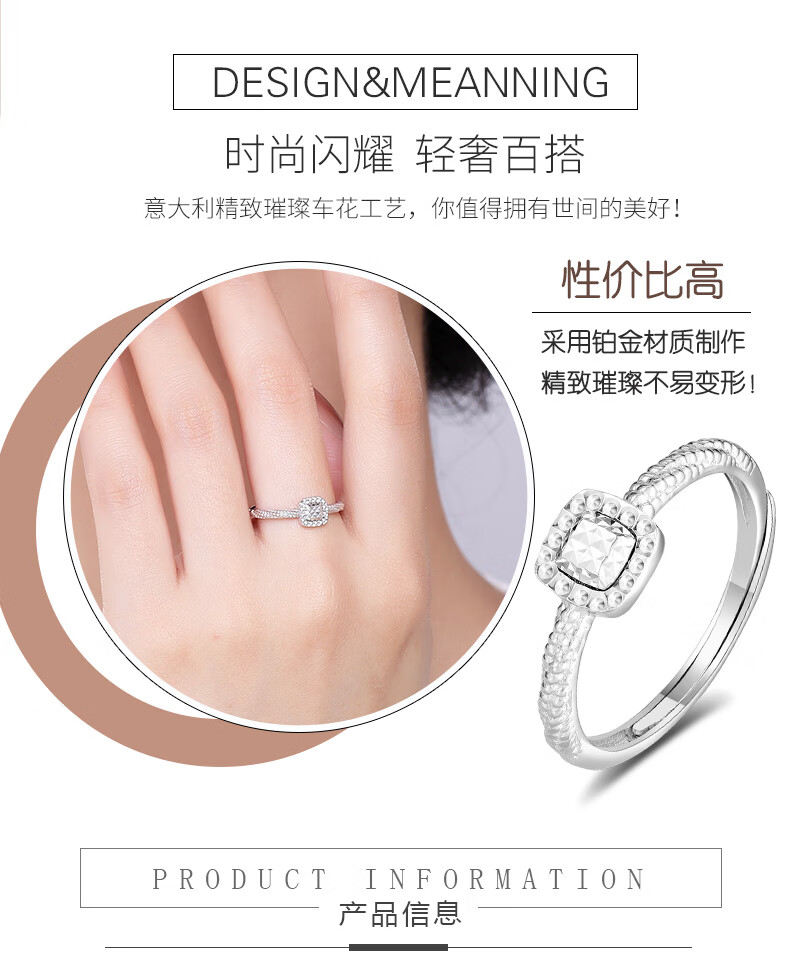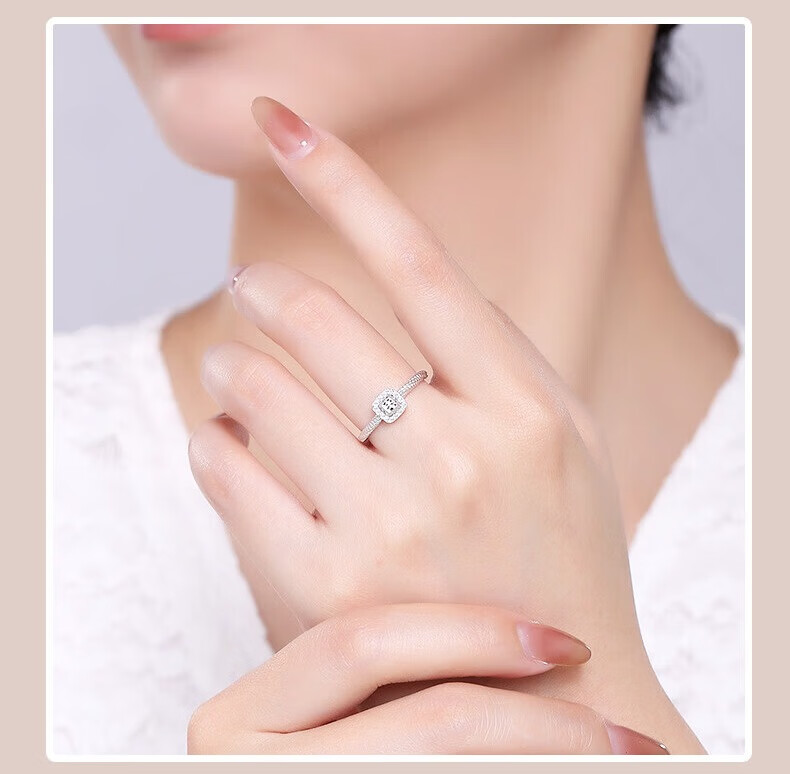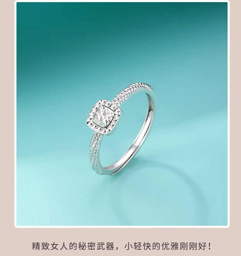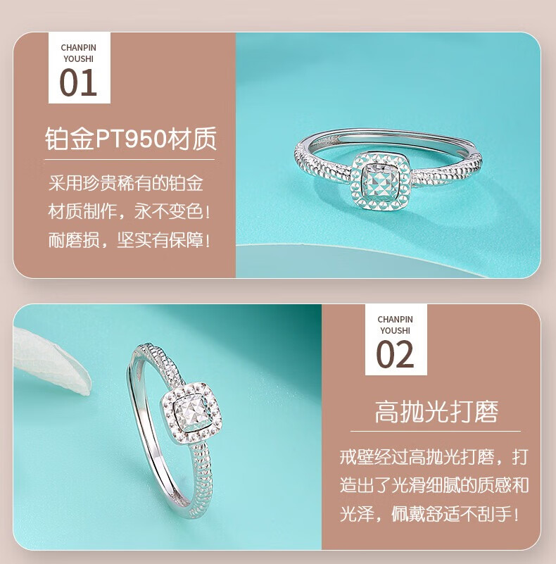 Yuan Shengfu New PT950 Fashionable Sugar Cube Platinum Ring Genuine Women's Platinum Ring Adjustable Live Shining 2.70g