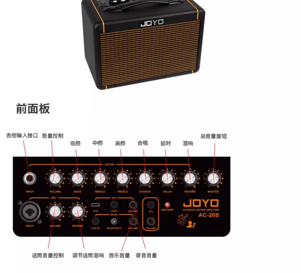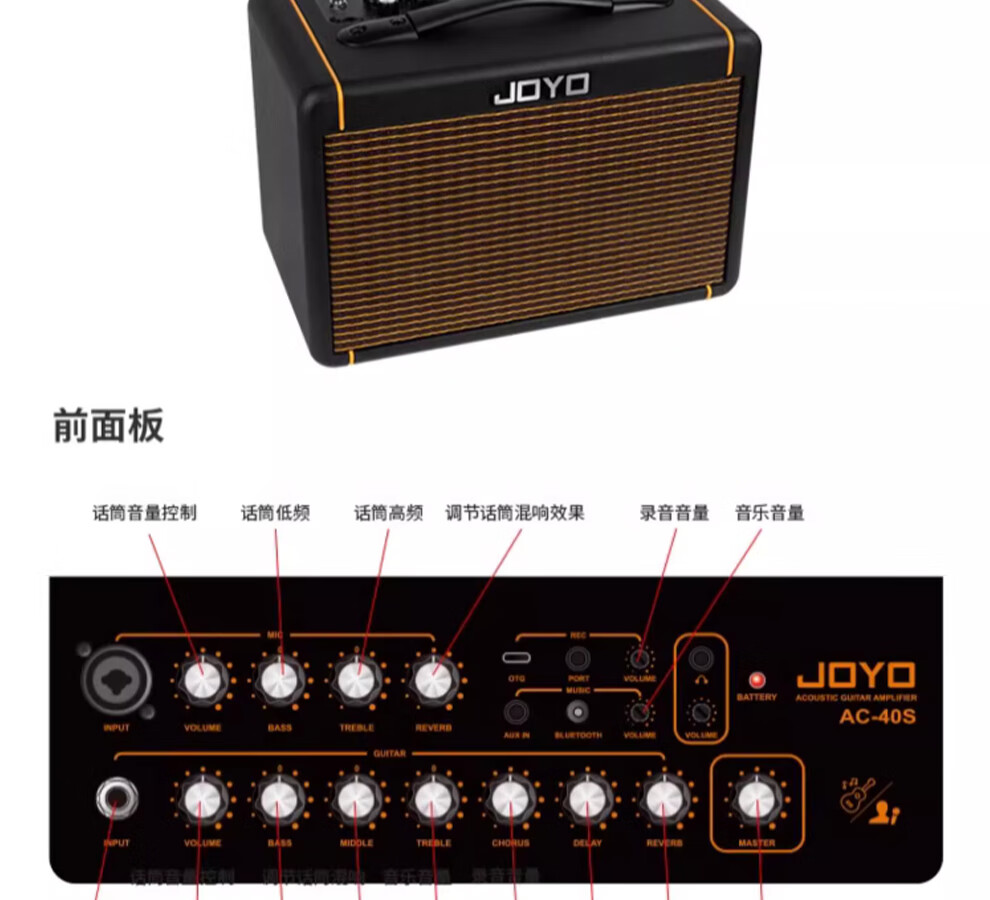 JOYO Guitar Singing Speaker AC40S Outdoor Roadshow Indoor Live Broadcast Internal Recording of Karaoke Charging Bluetooth Speaker AC20S Bluetooth Charging Speaker Black Power 20W