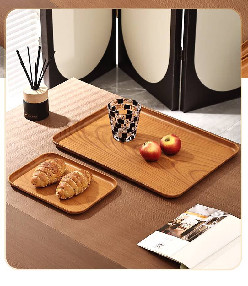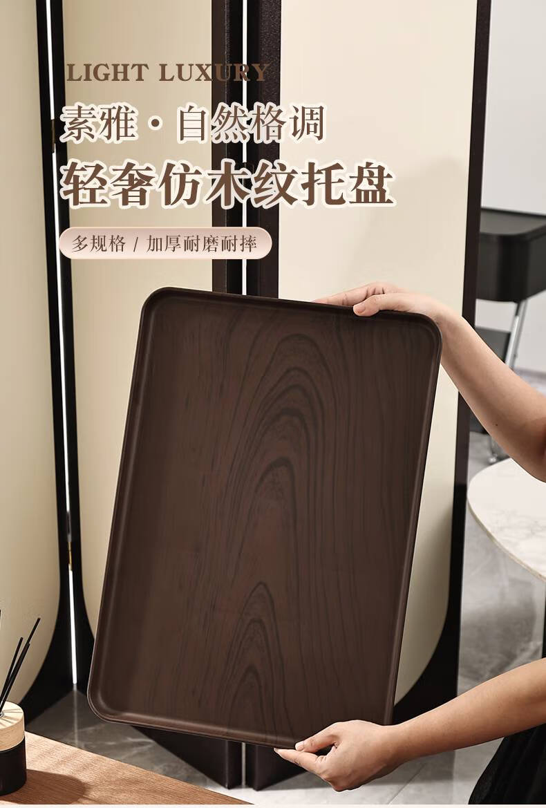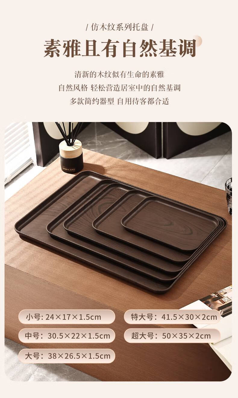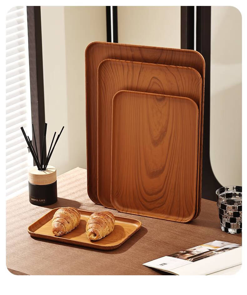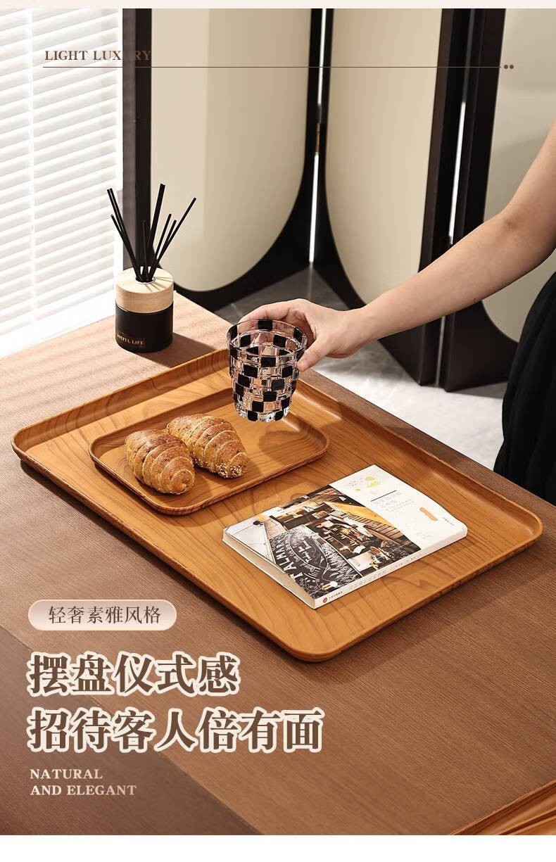 Fantasy ins style imitation wood grain small tray rectangular tea tray hotel B&B water cup cup storage tray tea set storage tray drop-resistant wooden rectangular - large size