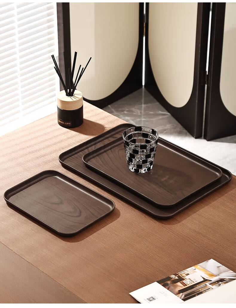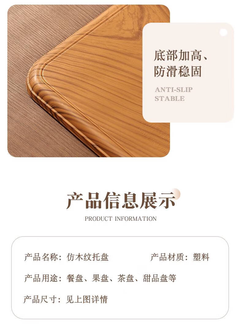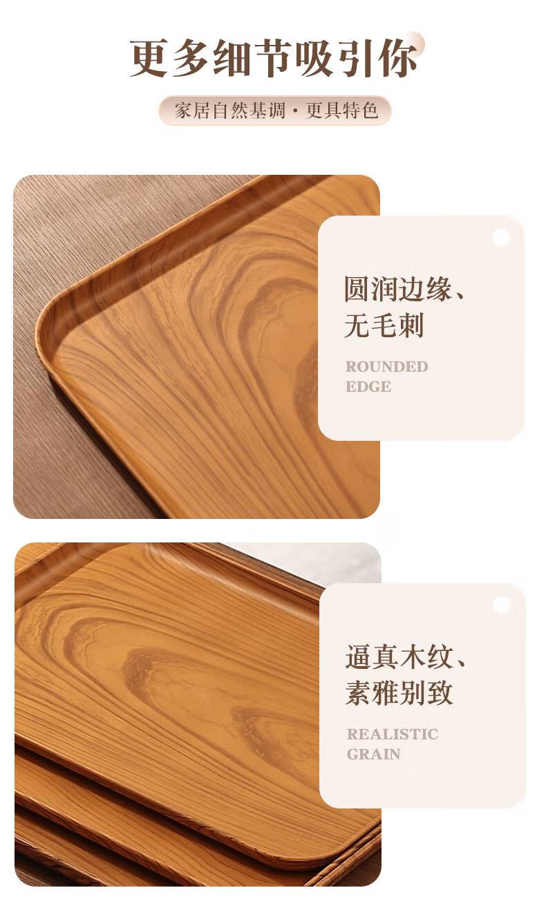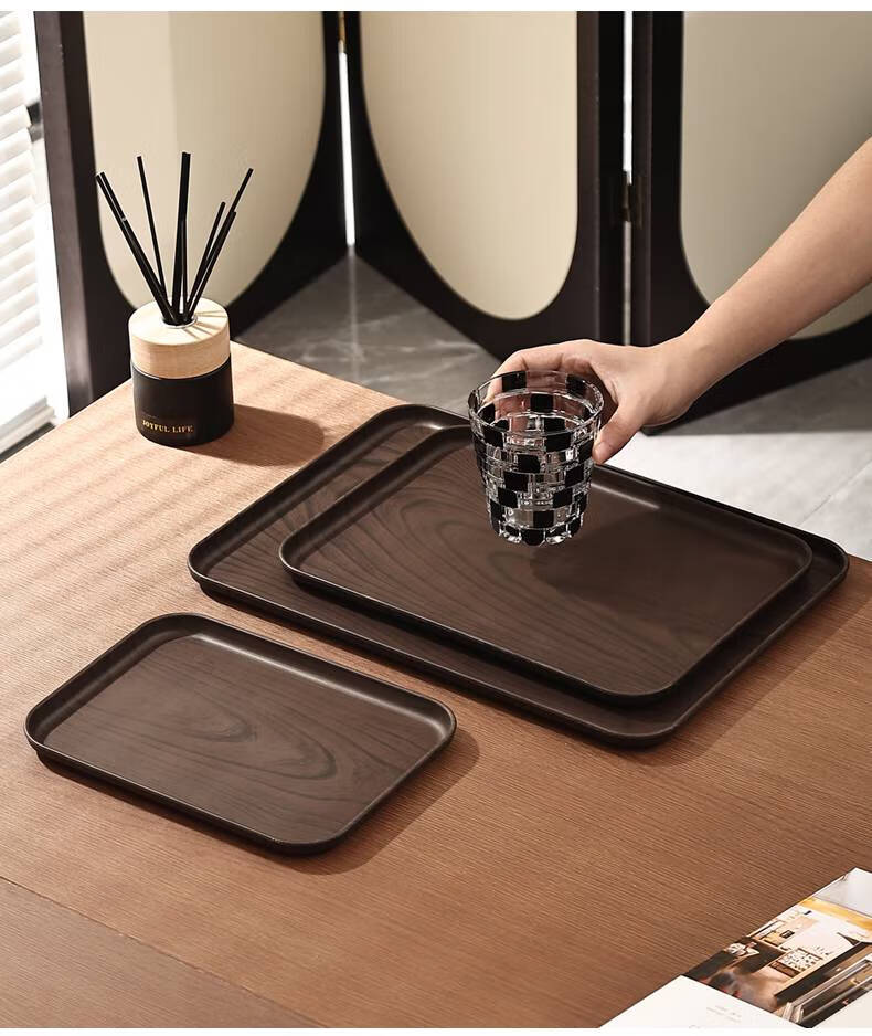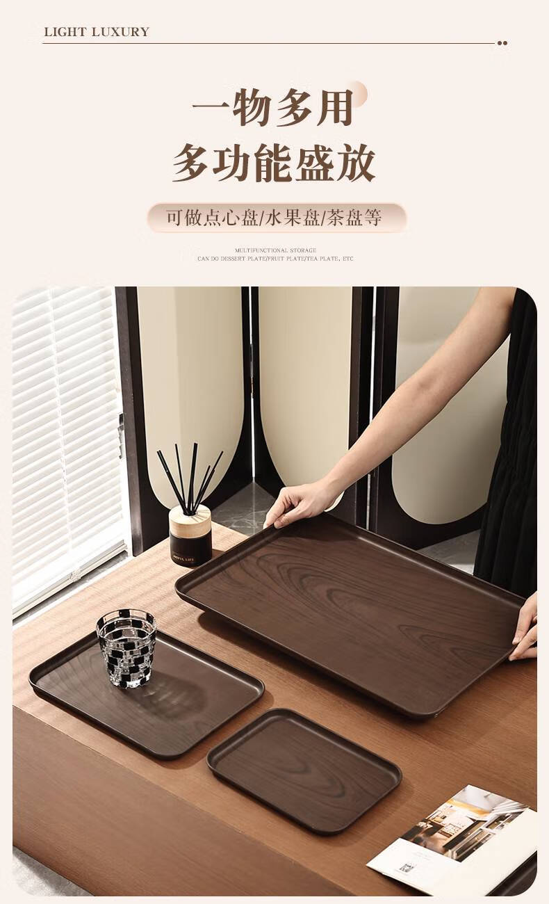 Fantasy ins style imitation wood grain small tray rectangular tea tray hotel B&B water cup cup storage tray tea set storage tray drop-resistant wooden rectangular - large size
