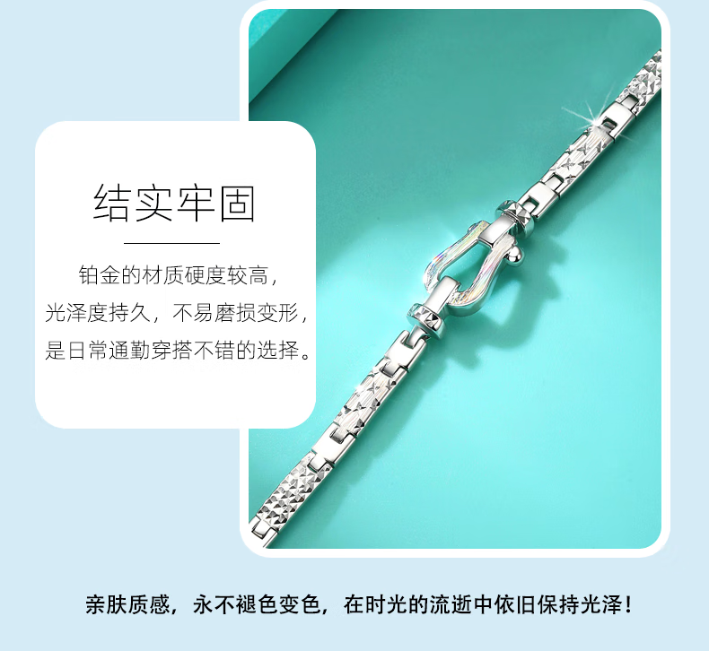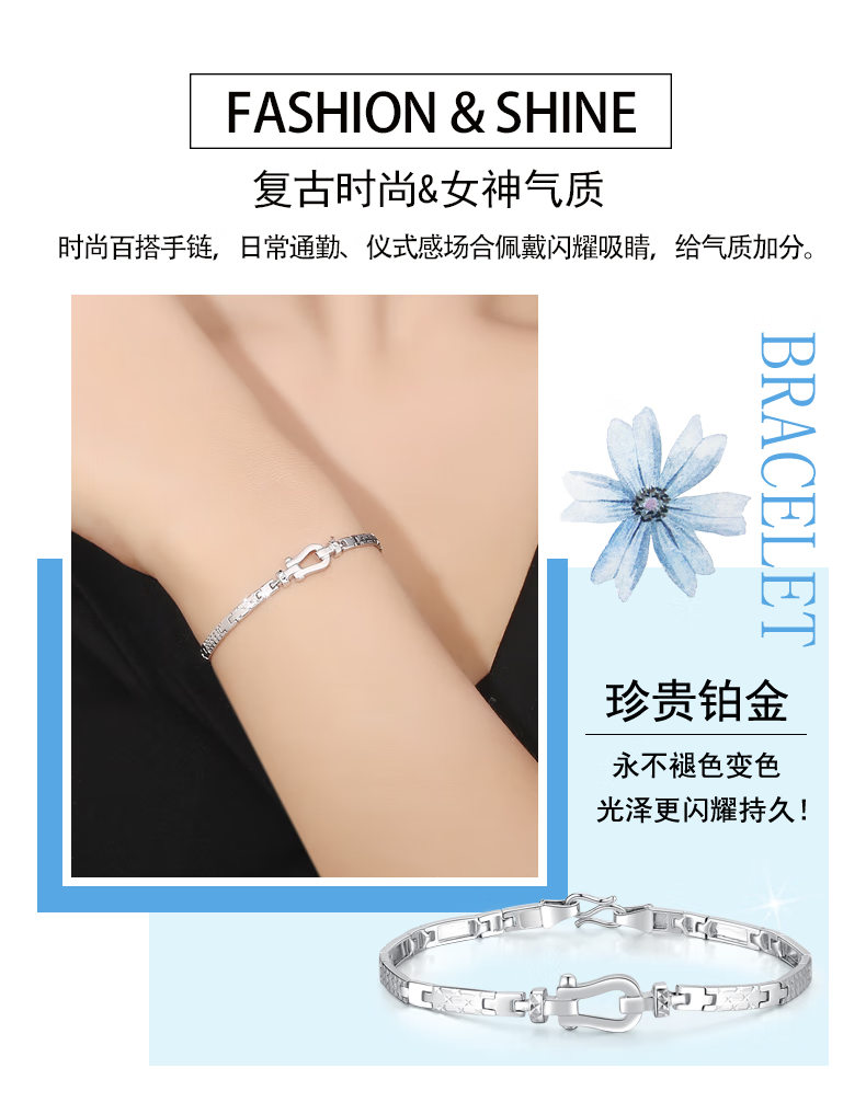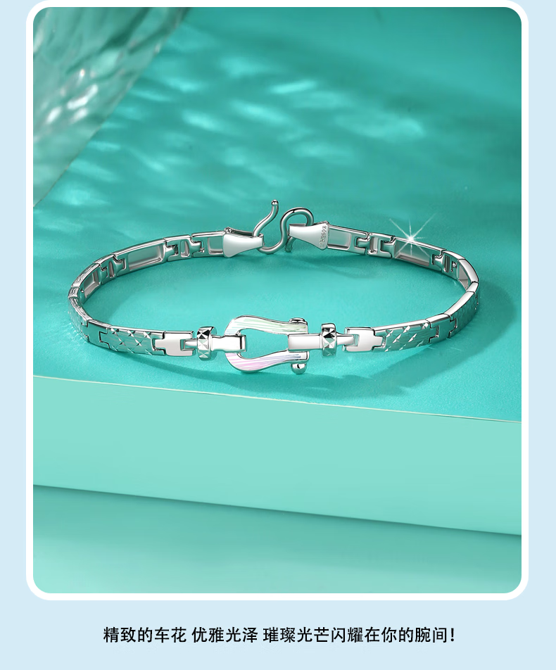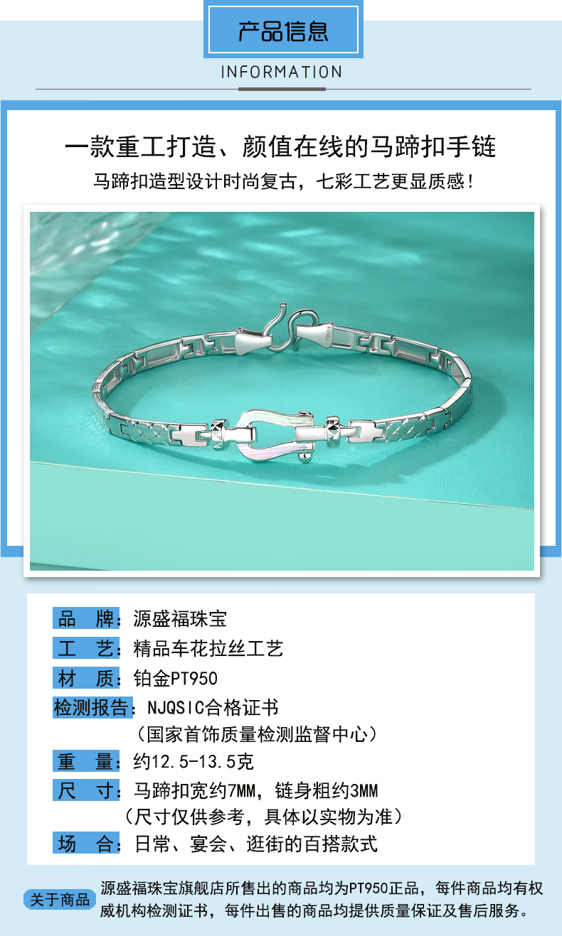 Yuan Shengfu's new PT950 high-quality colorful horseshoe platinum bracelet, authentic fashionable and versatile platinum bracelet for women, 12.34, length 15.5CM