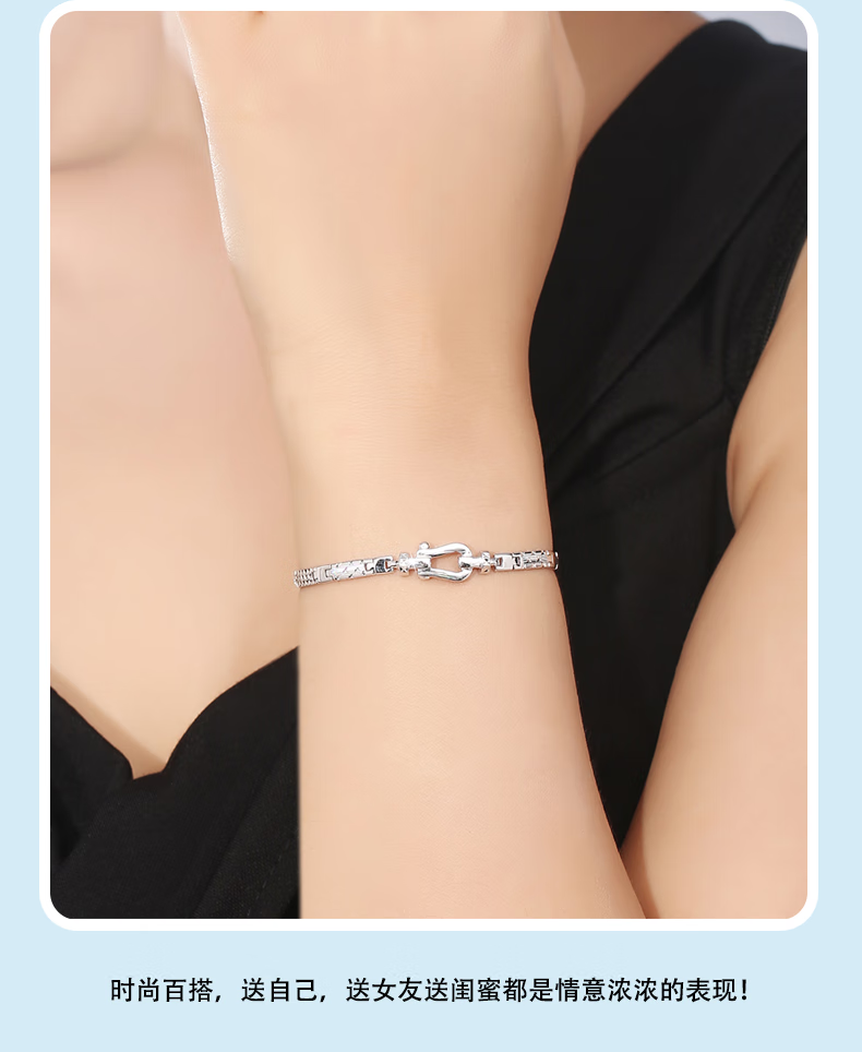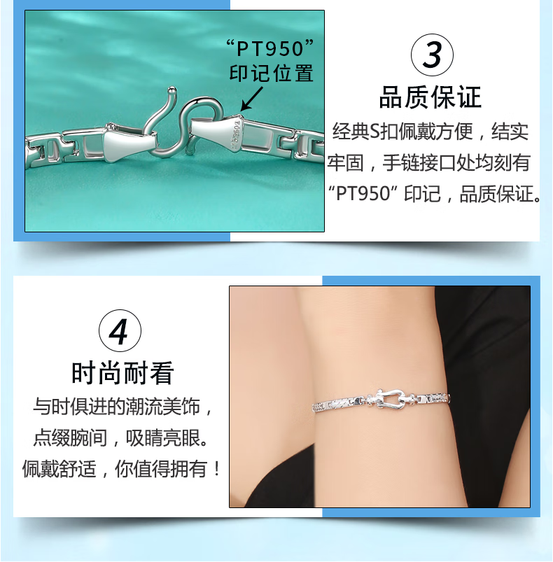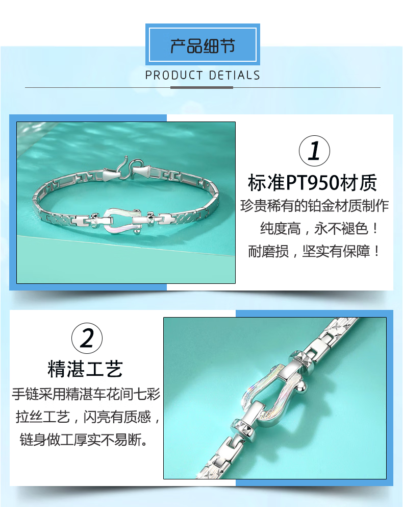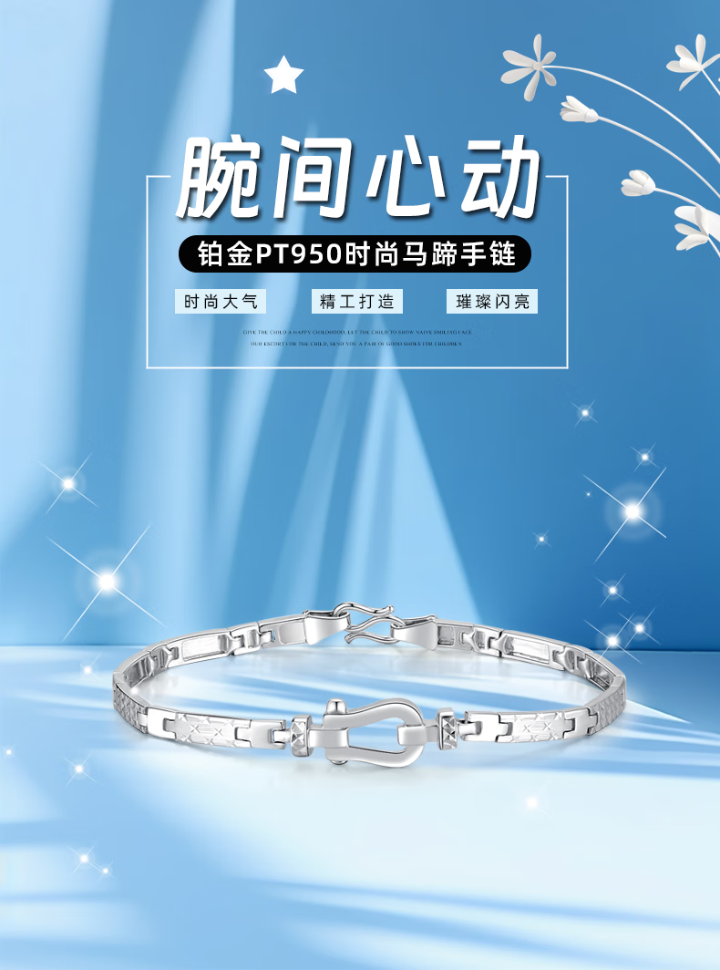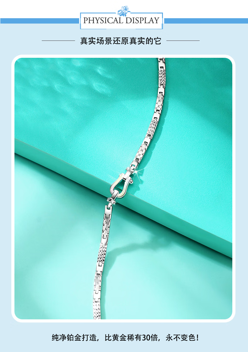 Yuan Shengfu's new PT950 high-quality colorful horseshoe platinum bracelet, authentic fashionable and versatile platinum bracelet for women, 12.34, length 15.5CM