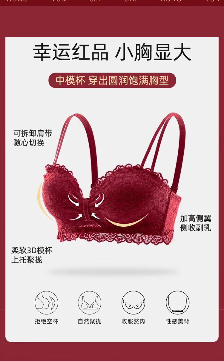 CURMOI Red Zodiac Year Underwear Women's Underwear Set Year of the Horse 2026 Wedding Push-up Bra Socks Gift for Girlfriend Fashionable Red Red Box Set Sexy Push-Up Red M =34/75AB Weight Reference 75-100Jin Jin is equal to 0.5 kg