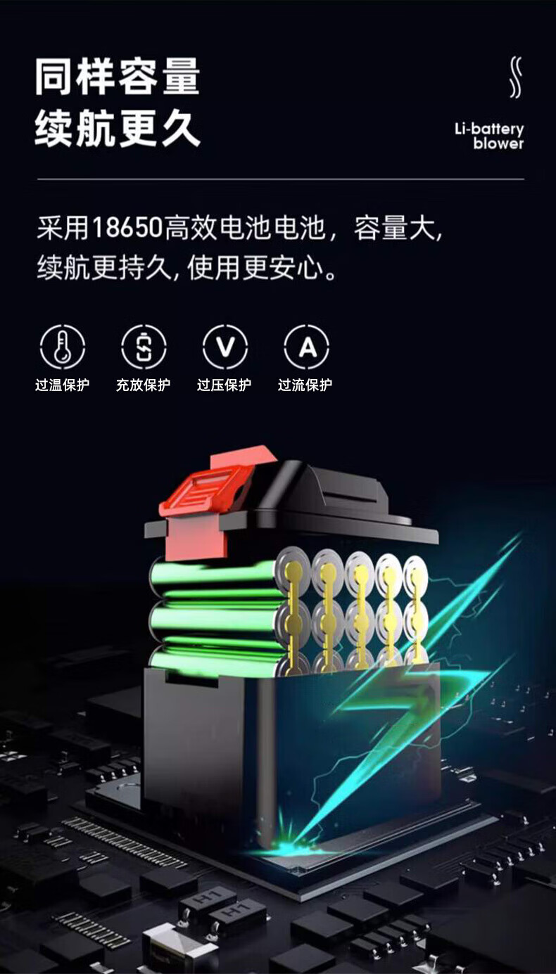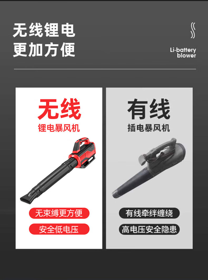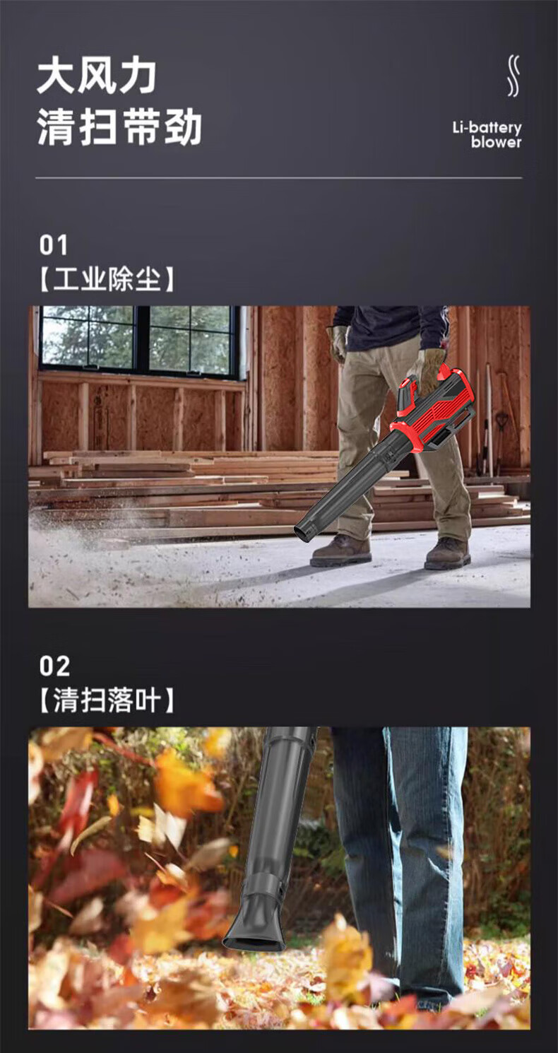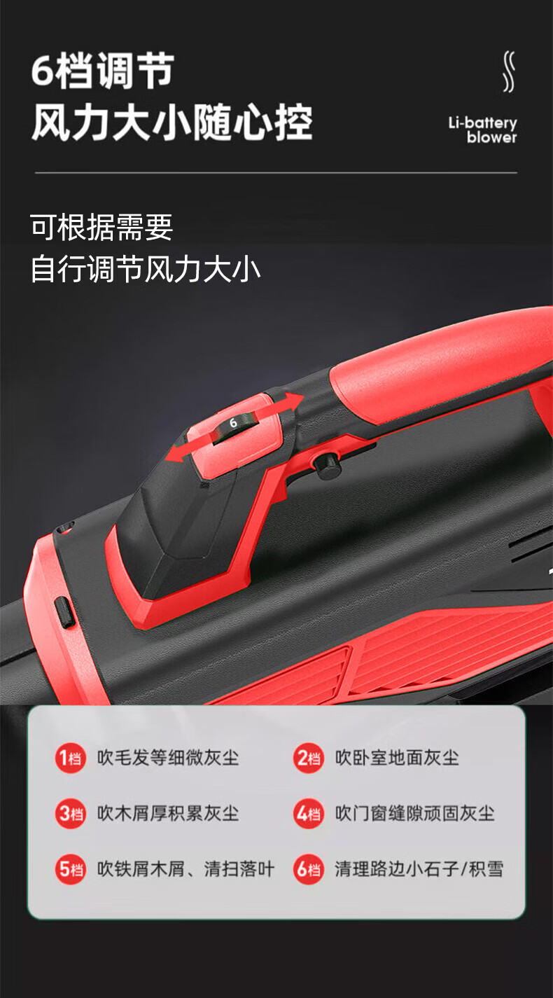 Orixi rechargeable electric blower lithium battery high-power industrial violent fan snow blower blowing air and dust air gun blowing dust industrial storm blower 2 batteries 1 charge 6 speed adjustment