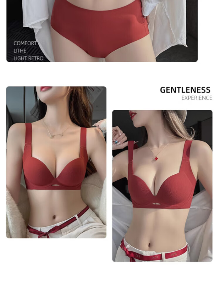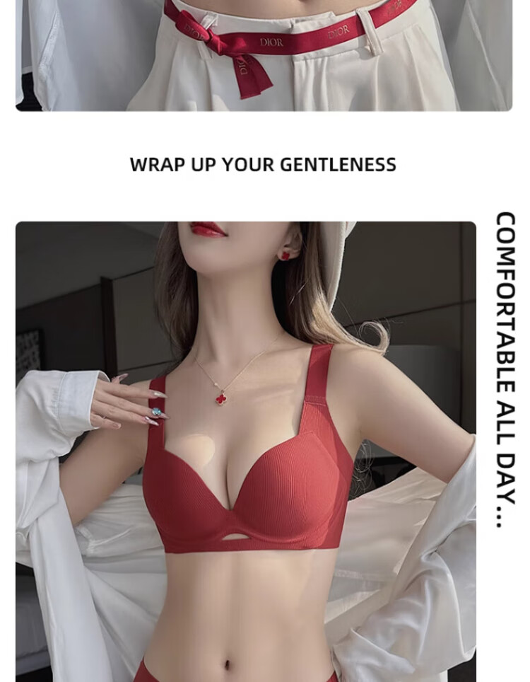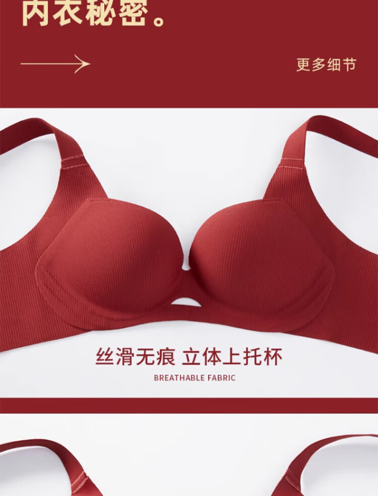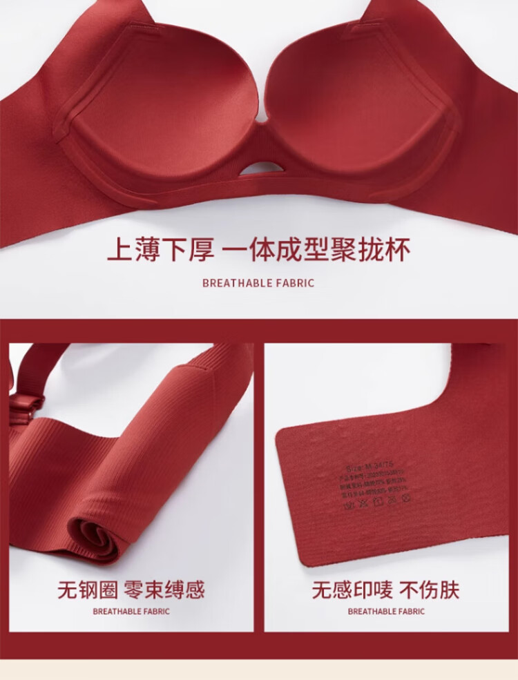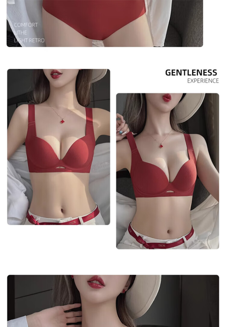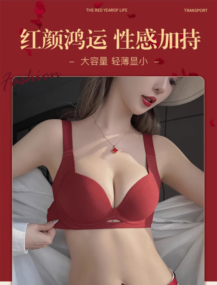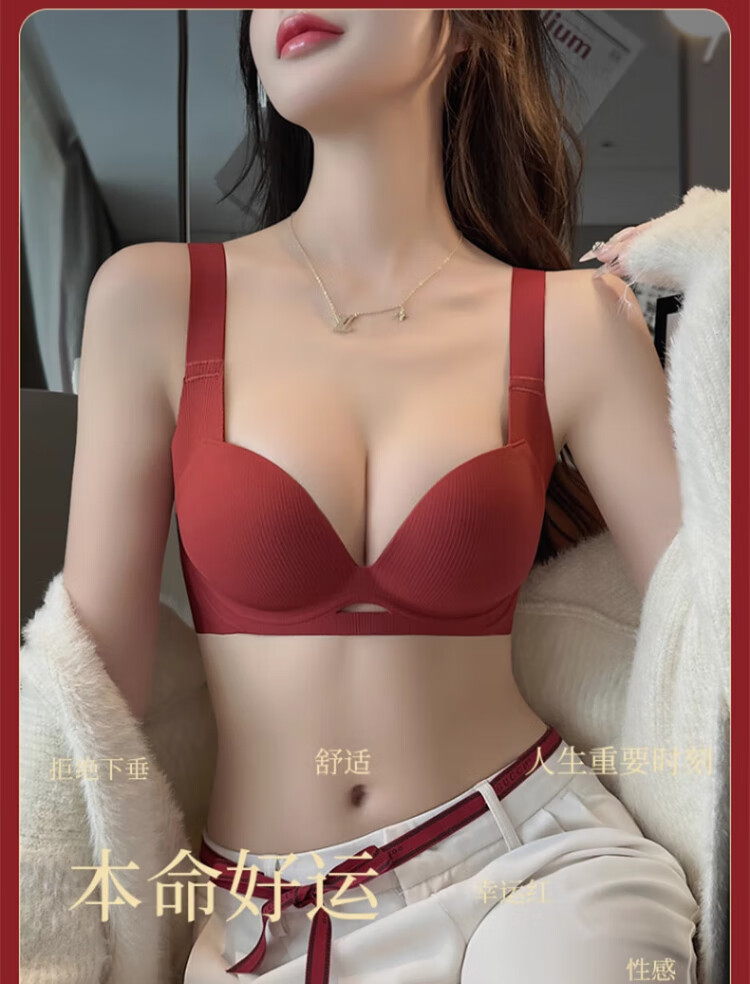 Langsha Big Breast Red Bra, Thin, Small, Seamless, Adjustable, Push-up, No Wires, Zodiac Year Women's Underwear Bra Set, Red Single Piece, 80C =36C, One Size (85-130Jin Jin is equal to 0.5kg)