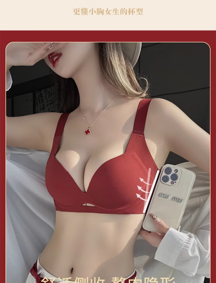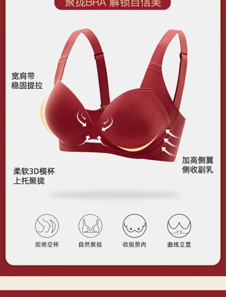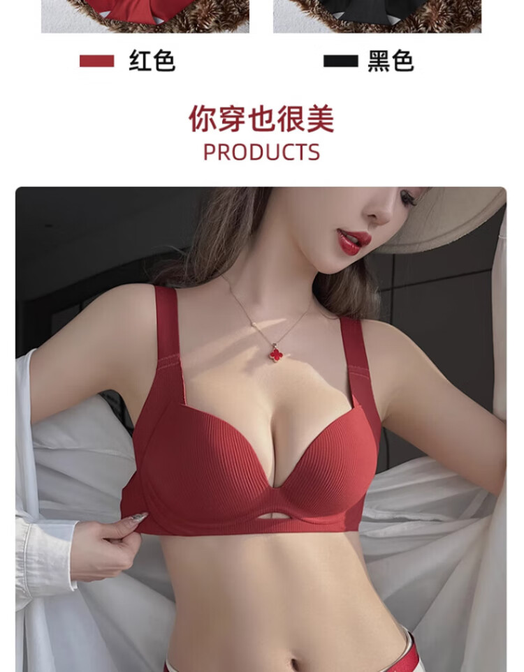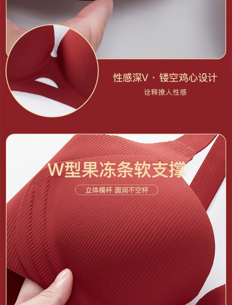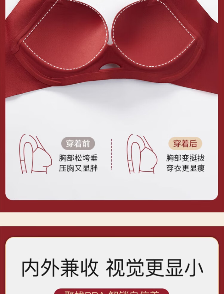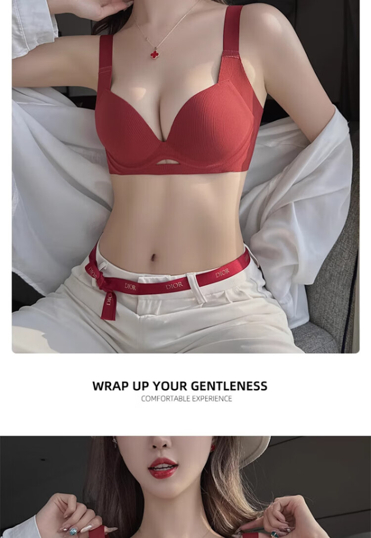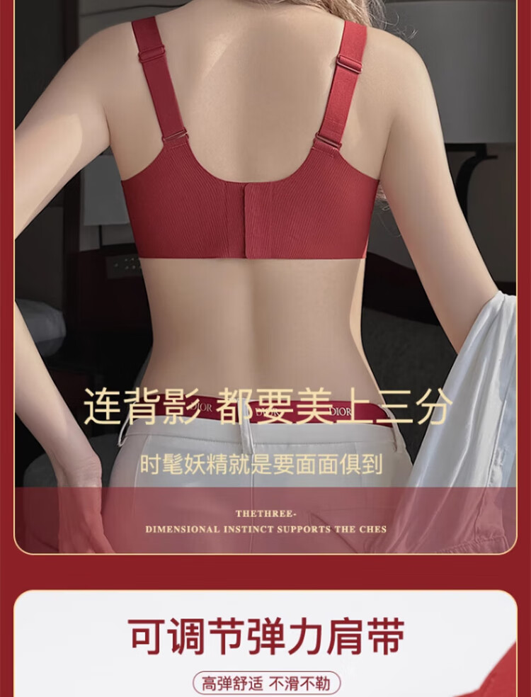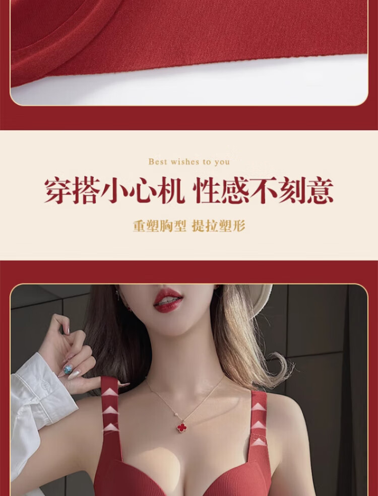Langsha Big Breast Red Bra, Thin, Small, Seamless, Adjustable, Push-up, No Wires, Zodiac Year Women's Underwear Bra Set, Red Single Piece, 80C =36C, One Size (85-130Jin Jin is equal to 0.5kg)