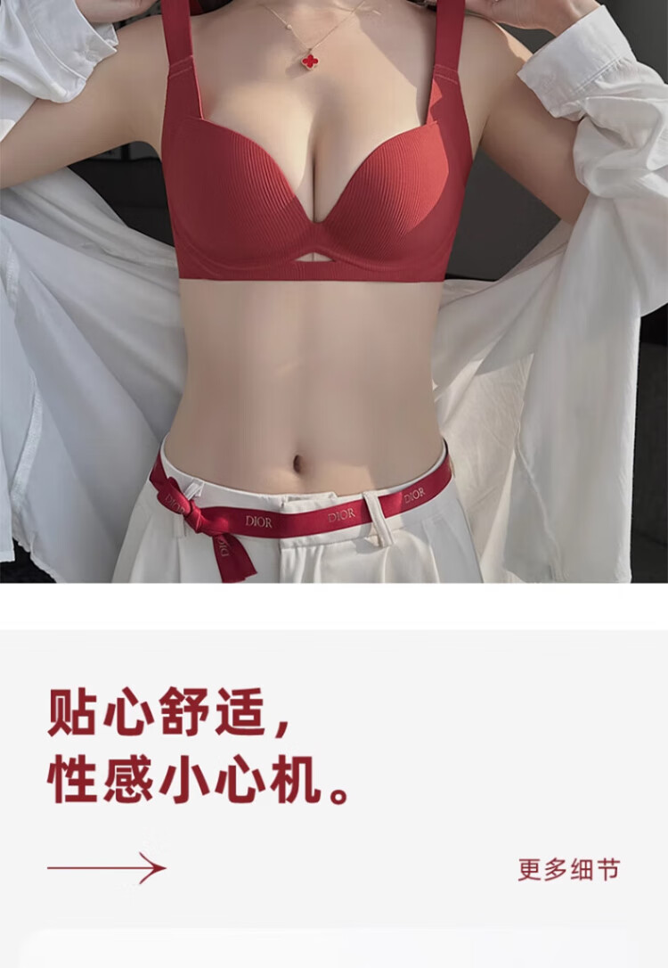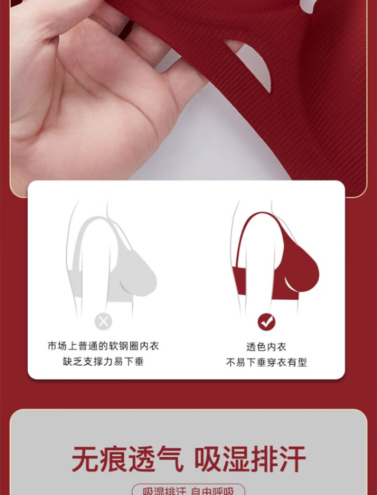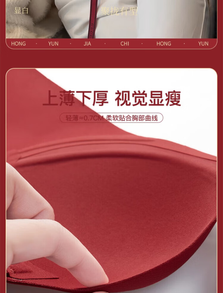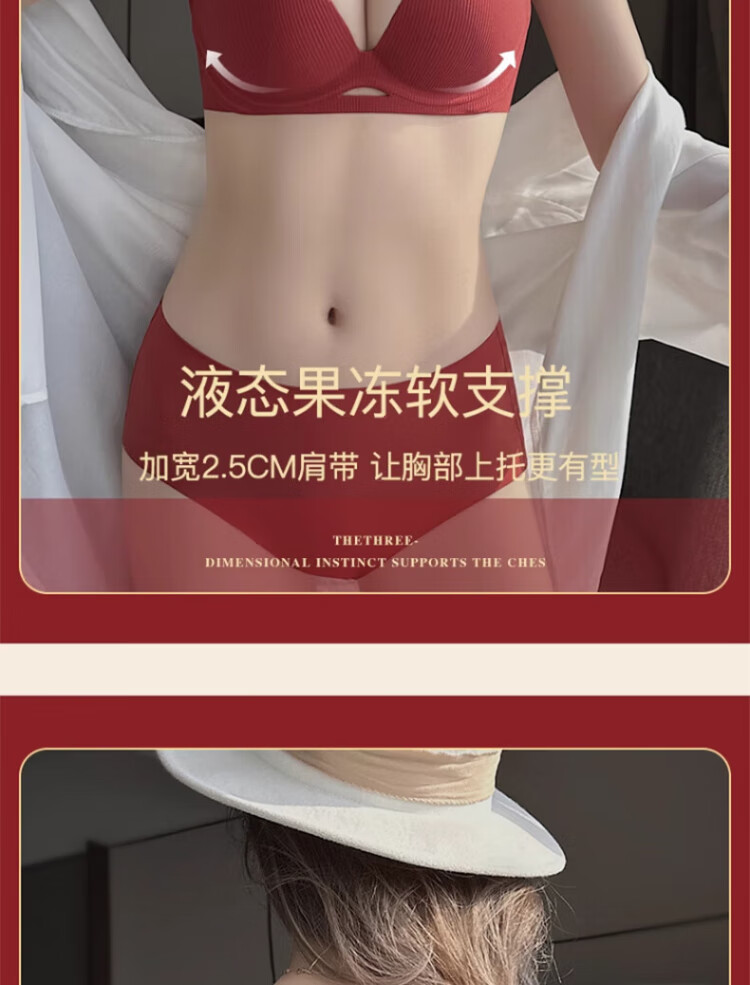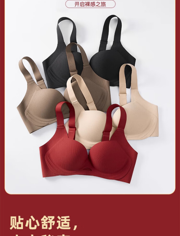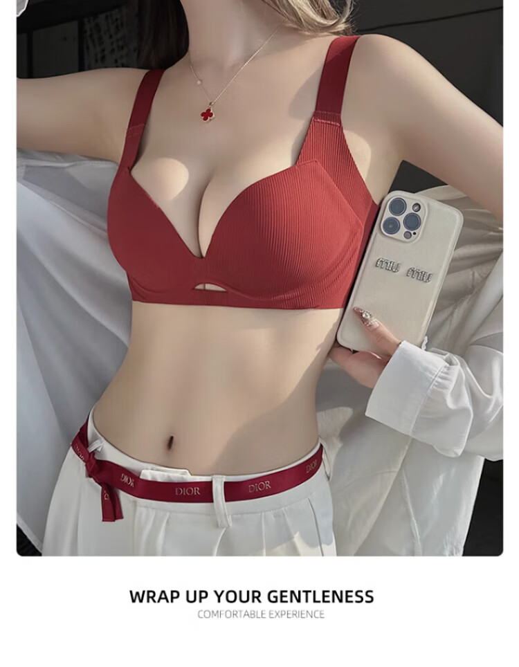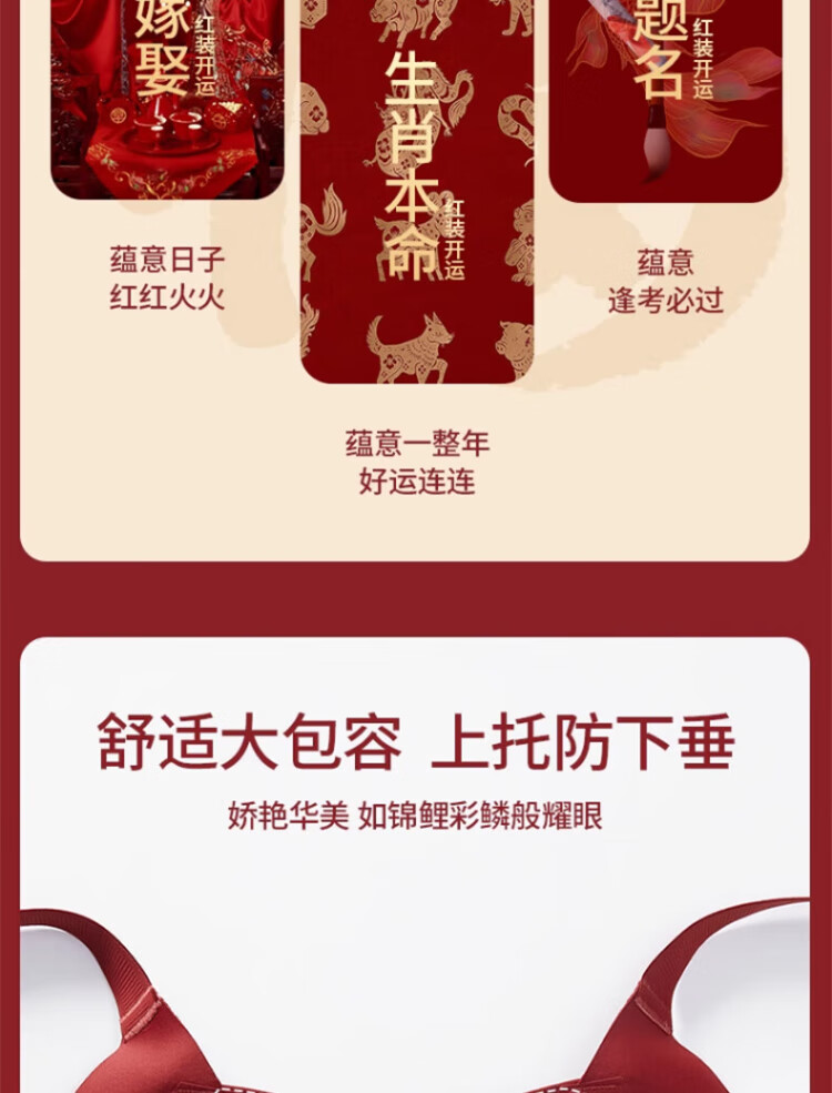 Langsha Big Breast Red Bra, Thin, Small, Seamless, Adjustable, Push-up, No Wires, Zodiac Year Women's Underwear Bra Set, Red Single Piece, 80C =36C, One Size (85-130Jin Jin is equal to 0.5kg)