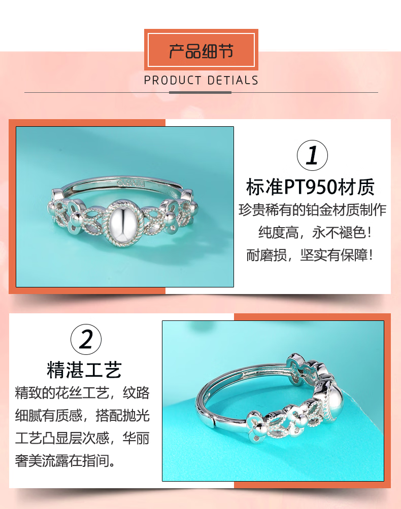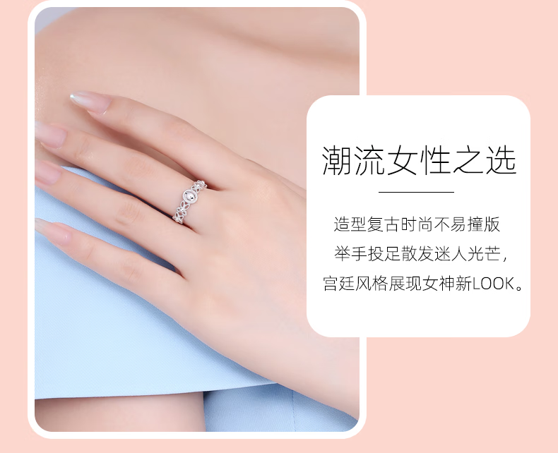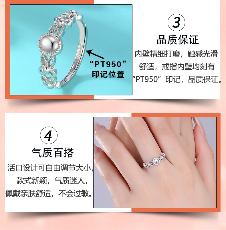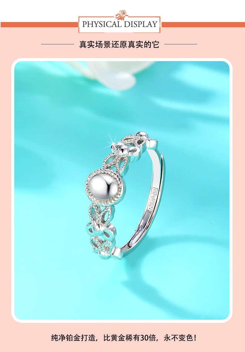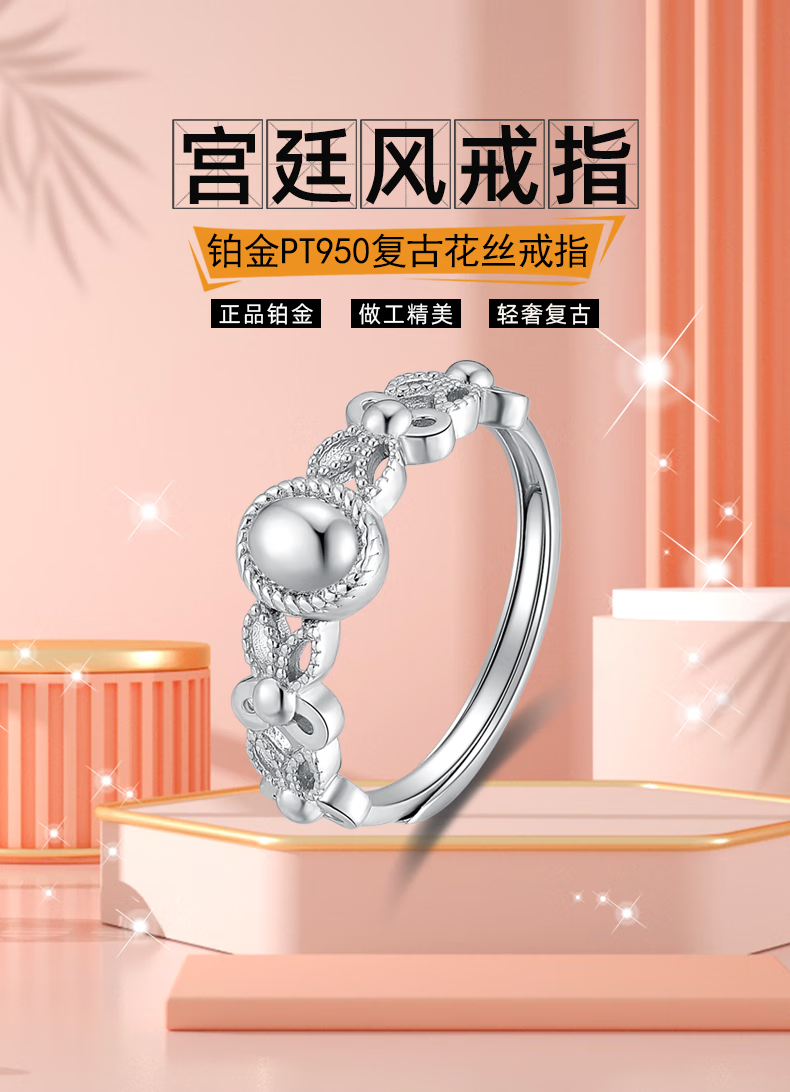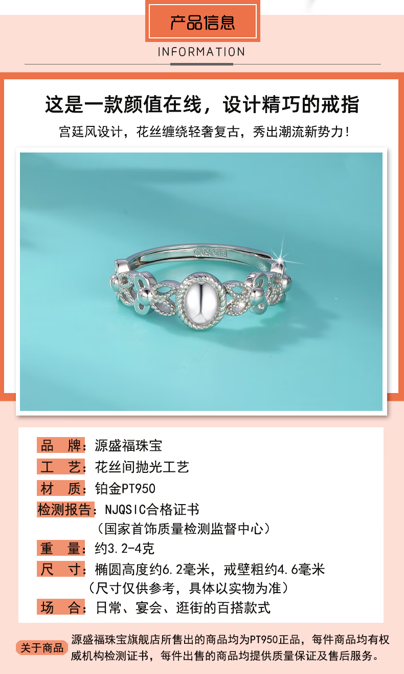Yuan Shengfu's new PT950 fashionable retro filigree platinum ring genuine live versatile platinum ring for women 3.27g