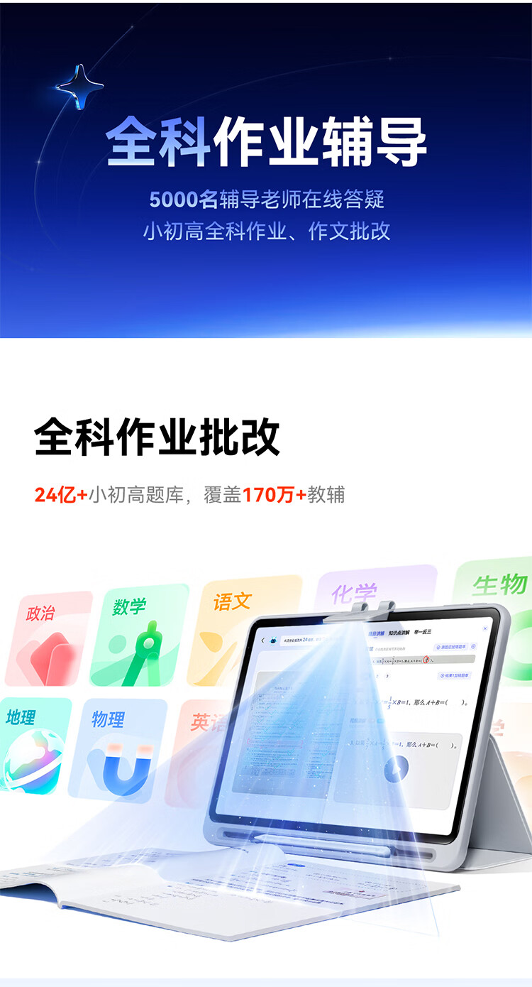 Zuoyebang Learning Machine T30/T50 500 RMB Instant Subsidy Discount AI Super Teacher 1 to 1 Supports New Curriculum Standards for Kindergarten, Junior High School and High School Teaching Materials Synchronization BZ23A Eye-Protect Large Screen AI Learning Machine Zuoyebang Learning Machine T30 8+256G Hot Sale