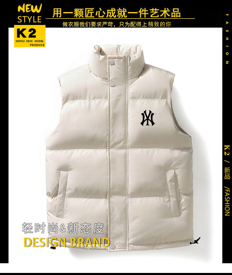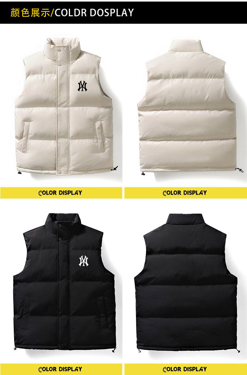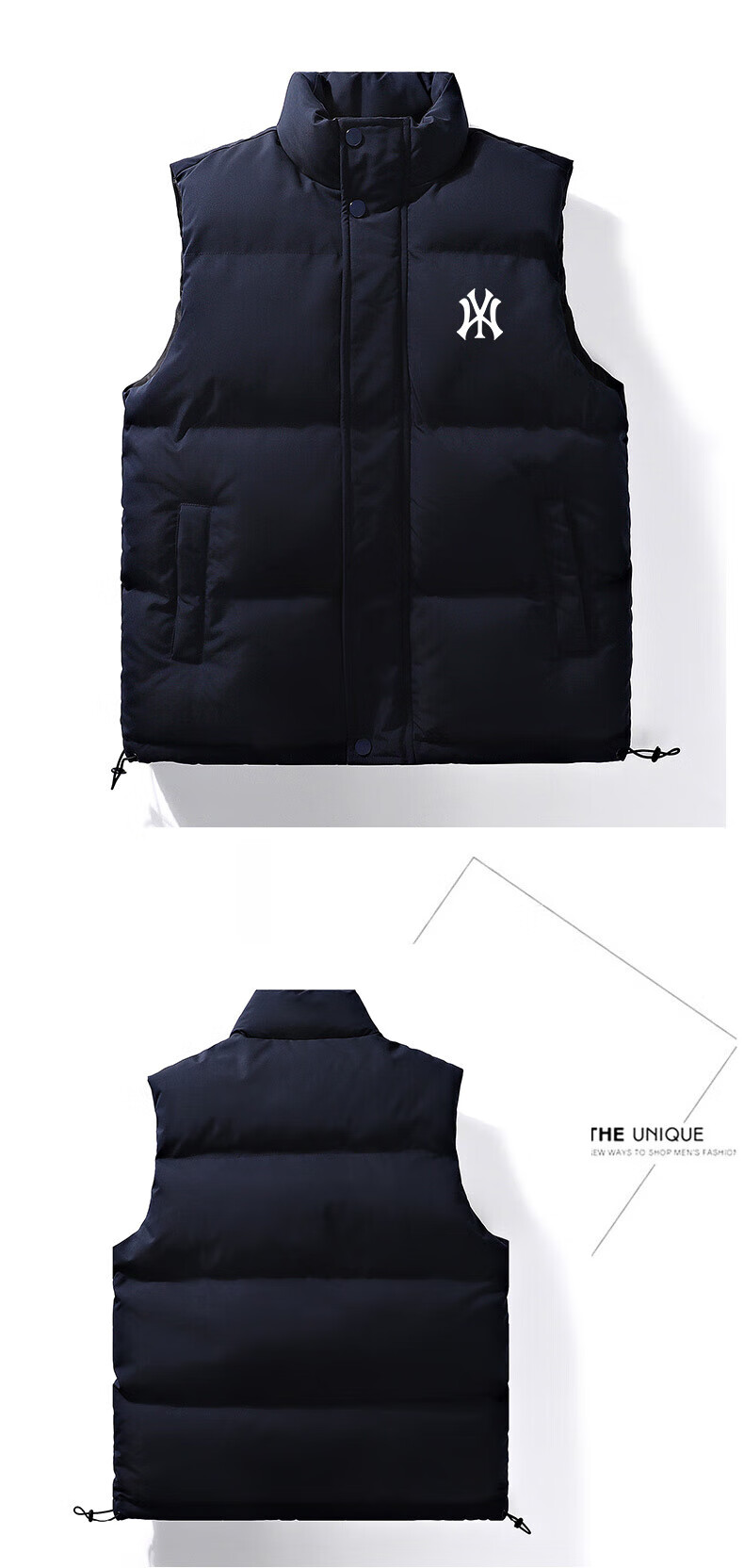 Spring, Autumn and Winter Down Cotton Vest Men's Loose Stand-up Collar Trendy Brand Vest External Wear Waistcoat Men's Vest Clip Warm Jacket 908-WY-Black Vest 3XL Recommended 150-170Jin Jin is equal to 0.5 kg