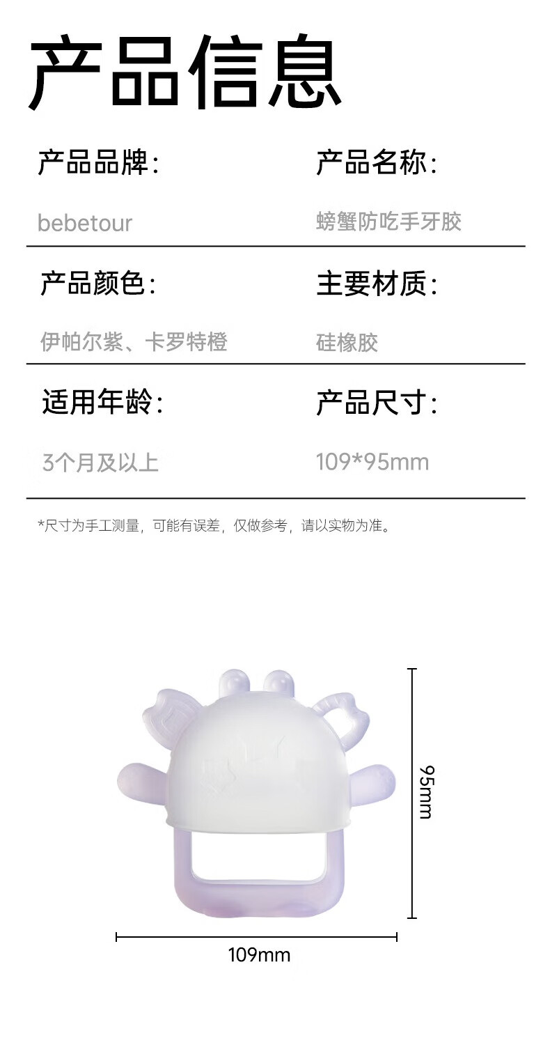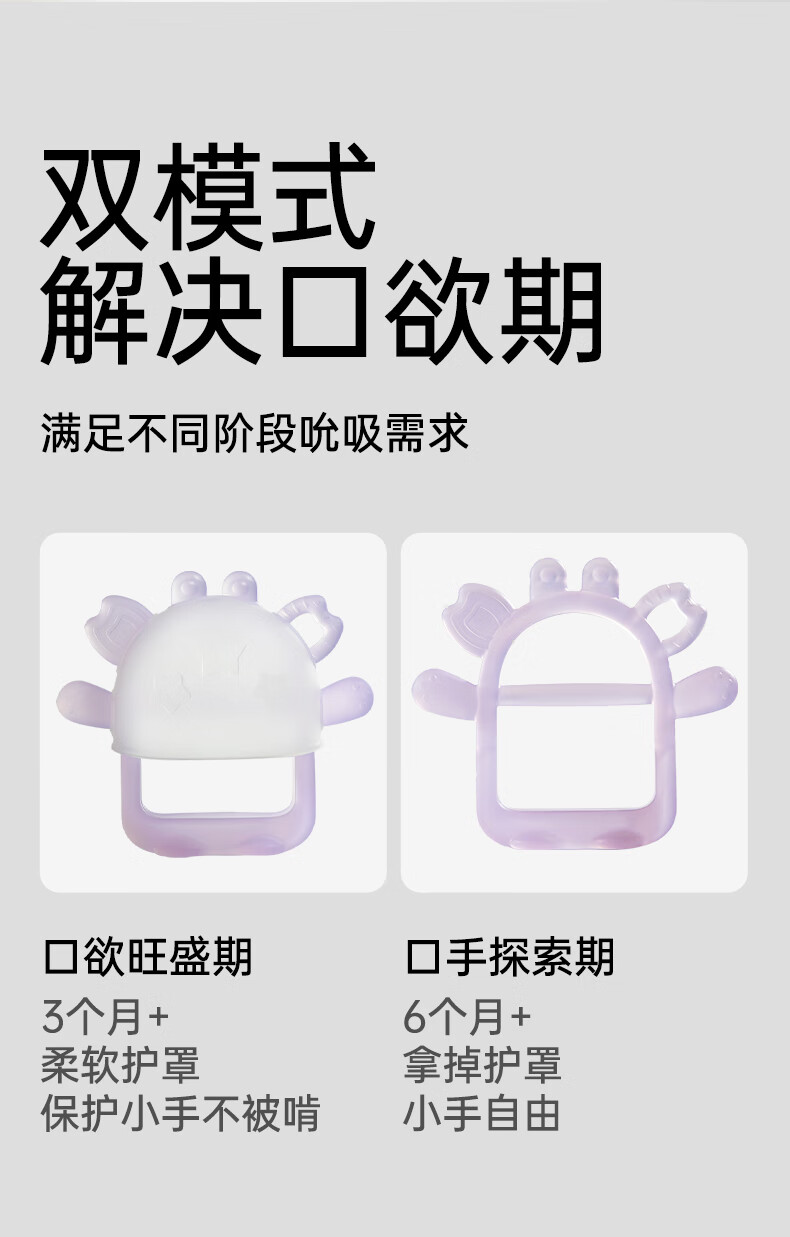Bebetour baby teether anti-eating hand artifact chewing gum baby molar stick 06 months can be boiled anti-eating hand teether 1 pack Ipal purple