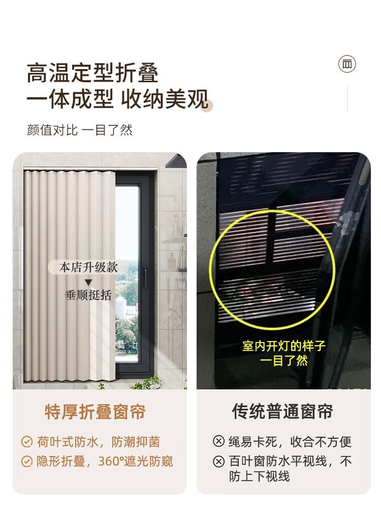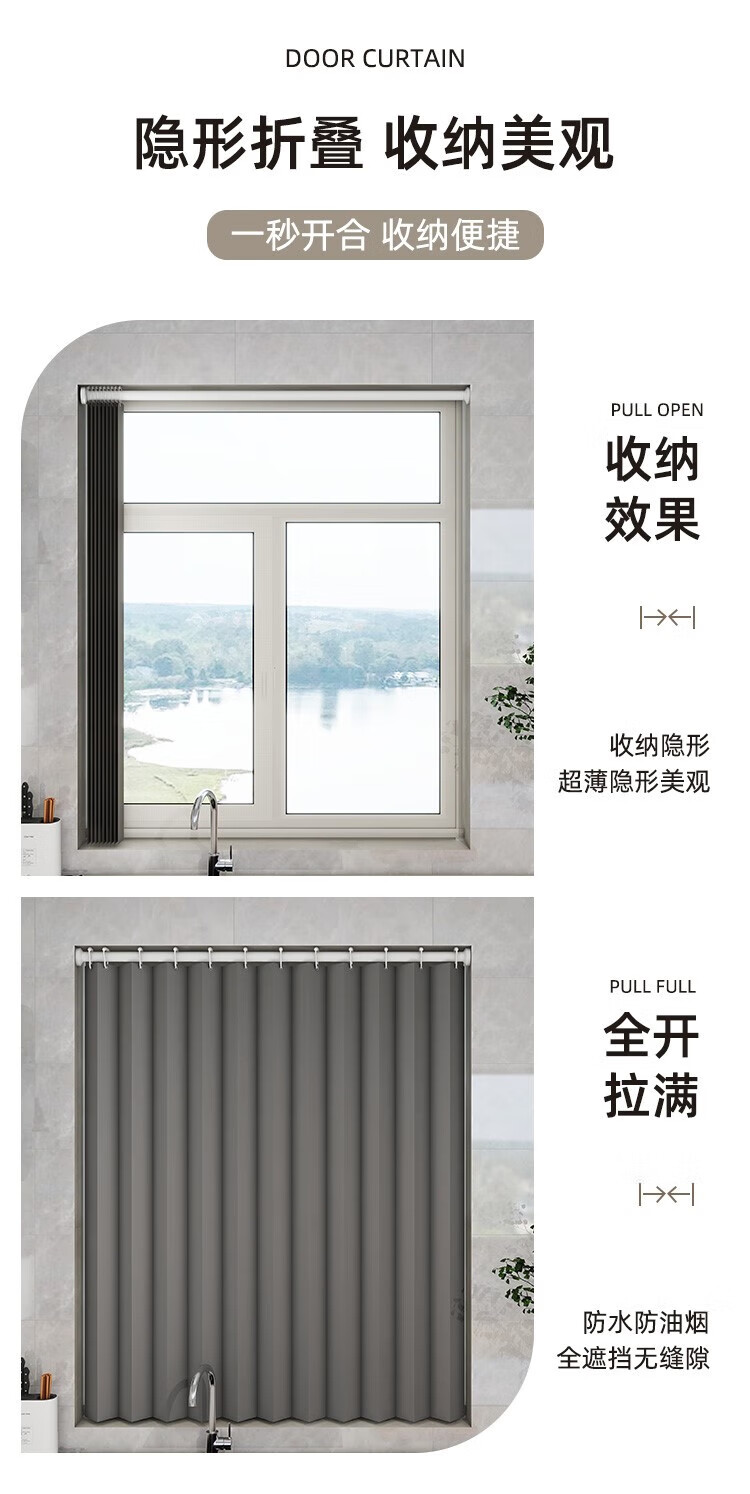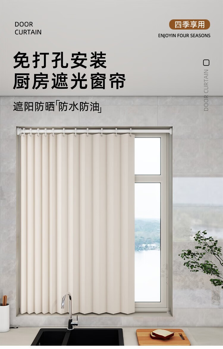 Frangomo kitchen bathroom curtain roll-pull folding invisible punch-free waterproof anti-light-shielding bathroom window double-sided magnetic 6 full blackout waterproof and mildew-proof oatmeal suitable for wall width 80-100 curtain width 110x150