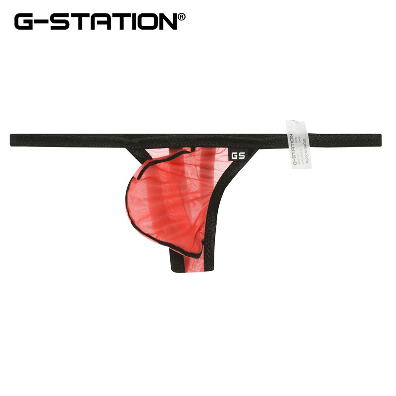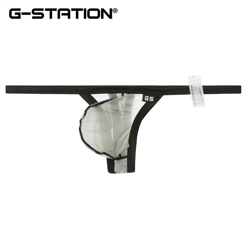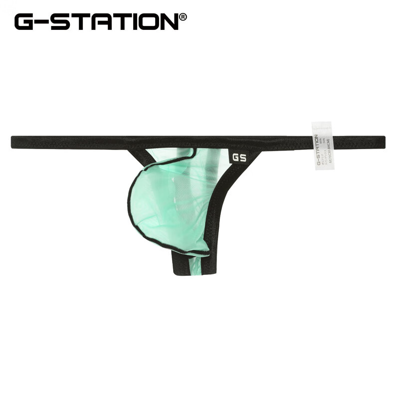 G-STATION ultra-thin, silky and comfortable STC sexy men's thong, highly transparent, breathable, quick-drying, tight-fitting, small size, black M (Japanese size, small design)