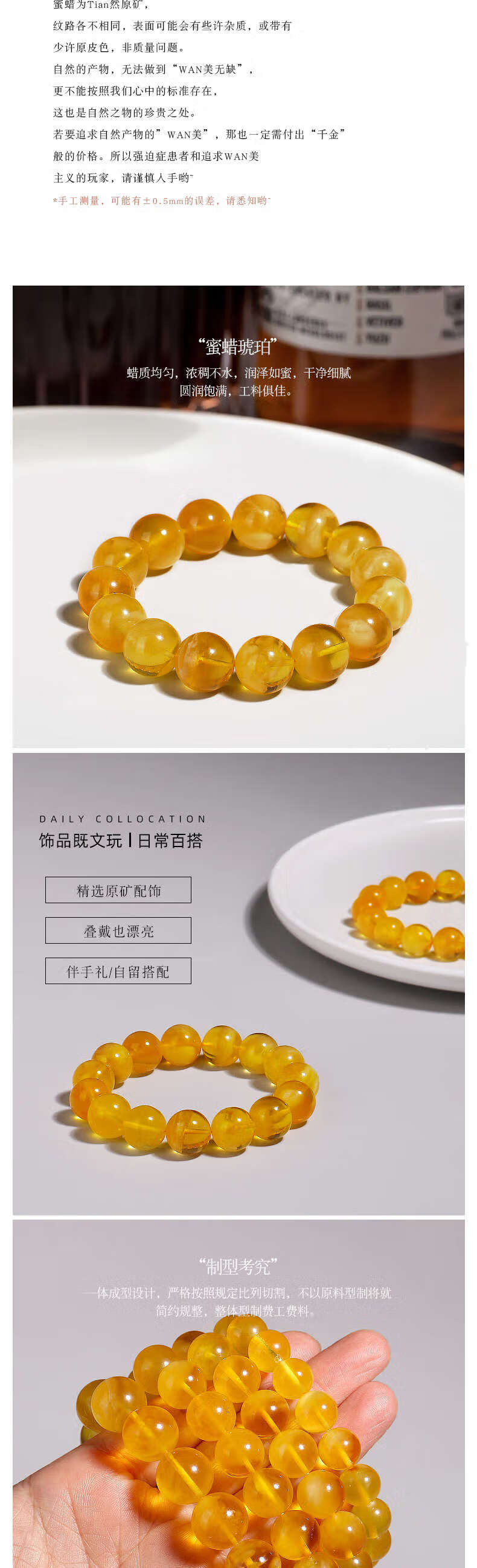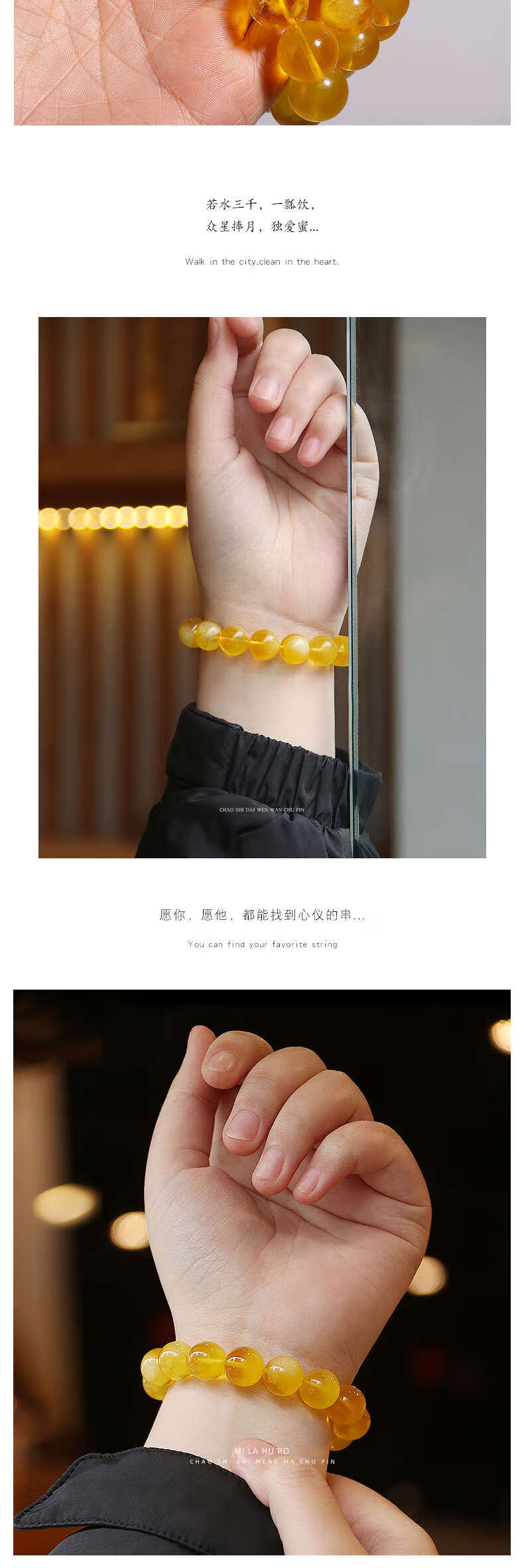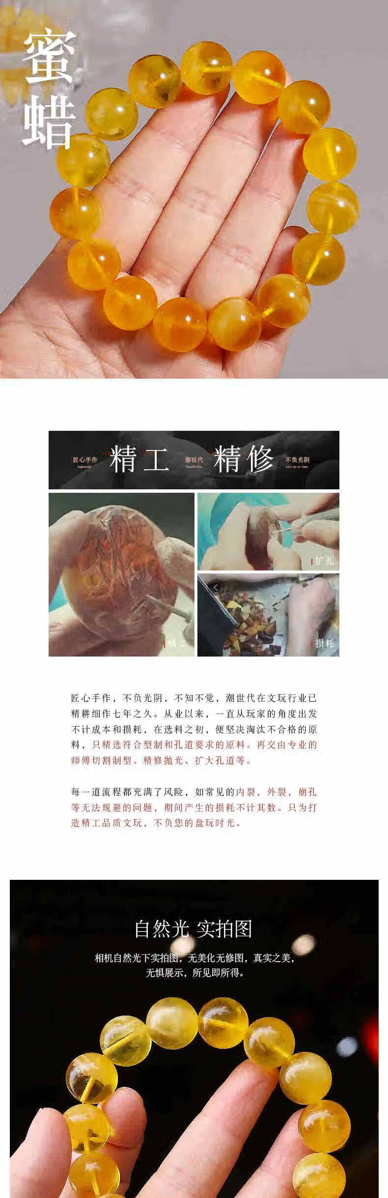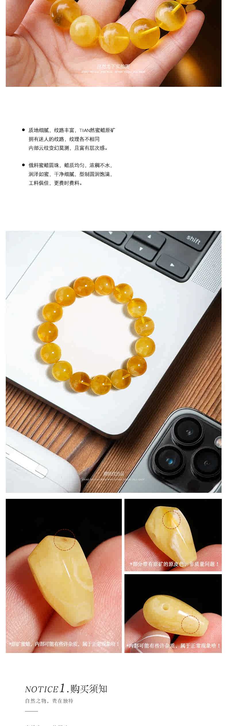 Golden fork Russian material Seiko raw ore beeswax amber single circle bracelet Buddha beads and play bracelet DIY men and women, size about 10+mm, gift certificate 003499