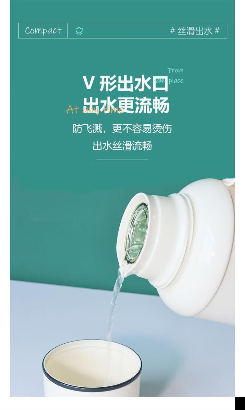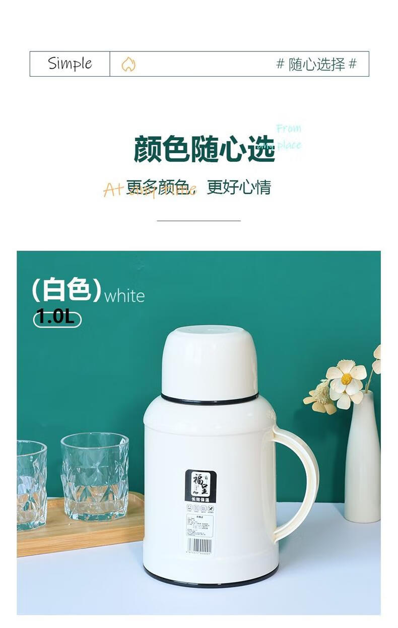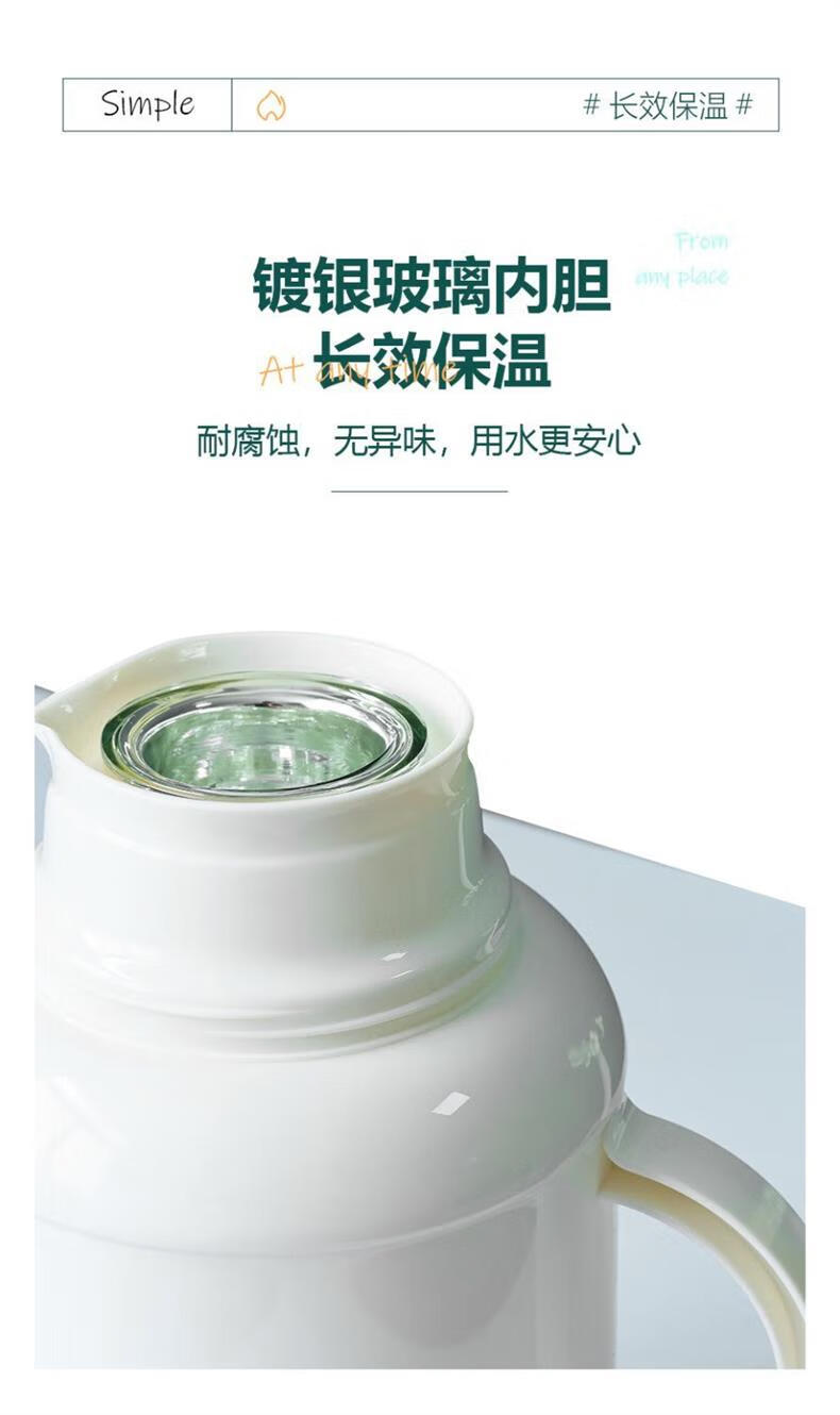 Long-lasting thermal insulation household thermos kettle outdoor thermos kettle thermal kettle student dormitory thermos flask thermos cup ceramic green double thickened 1L quality assurance fast delivery