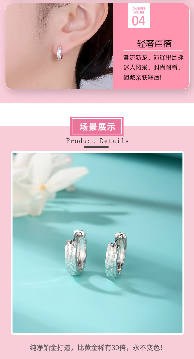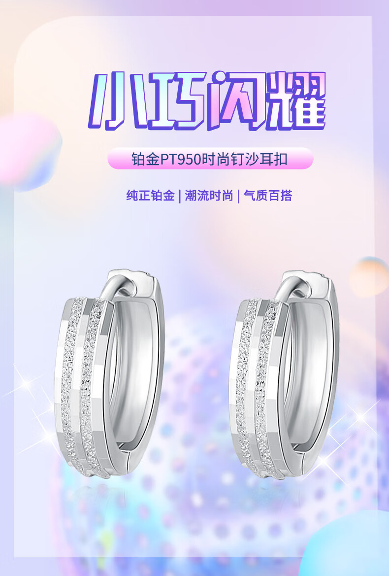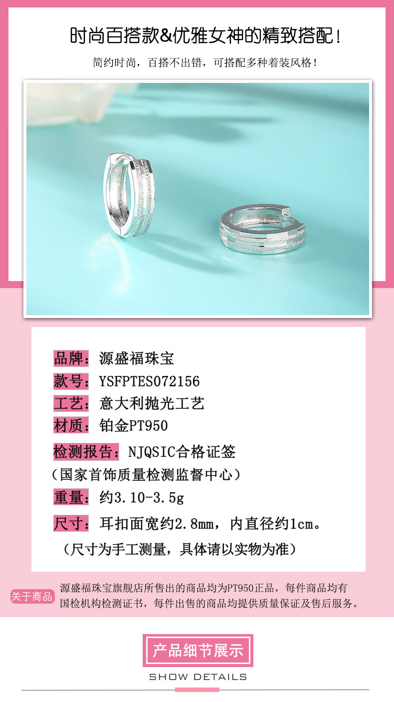 Yuan Shengfu's new fashionable PT950 shiny platinum stud earrings, simple, compact and versatile platinum earrings, 3.77g