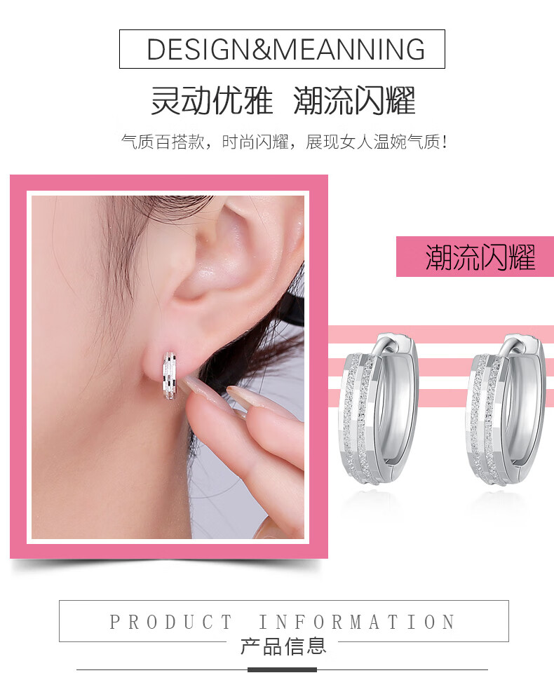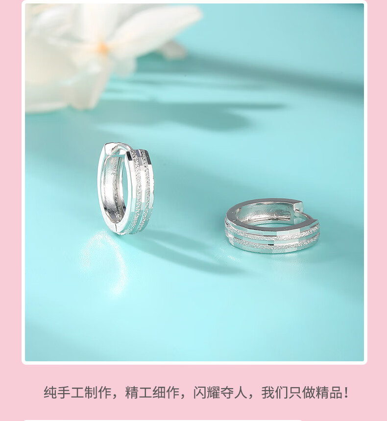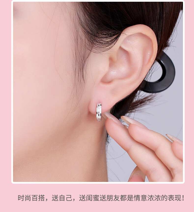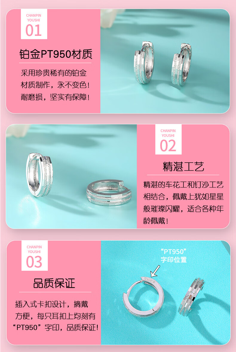 Yuan Shengfu's new fashionable PT950 shiny platinum stud earrings, simple, compact and versatile platinum earrings, 3.77g