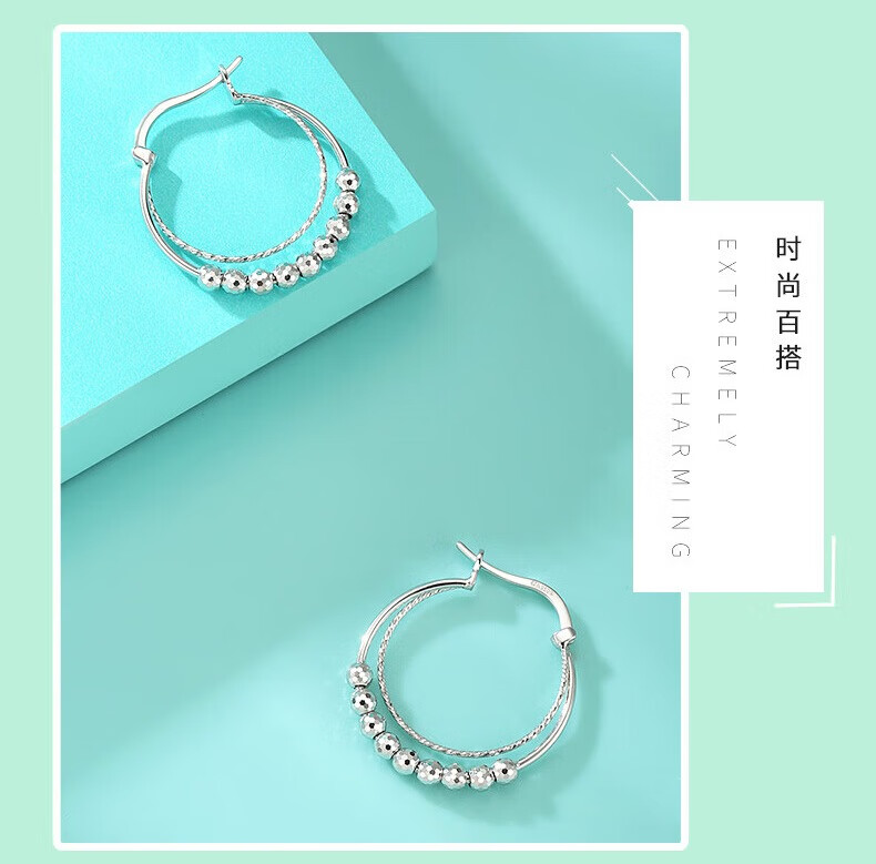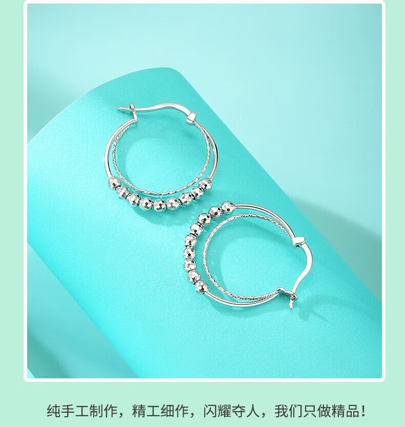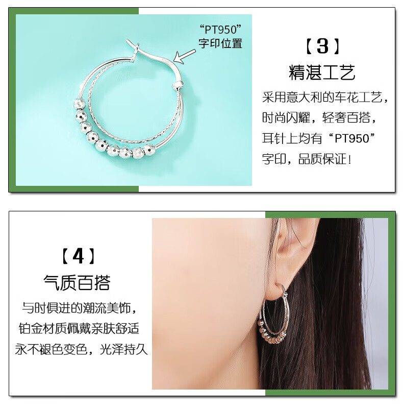 Yuan Shengfu's new PT950 transfer bead earrings platinum earrings genuine platinum earrings earrings earrings 4.85g