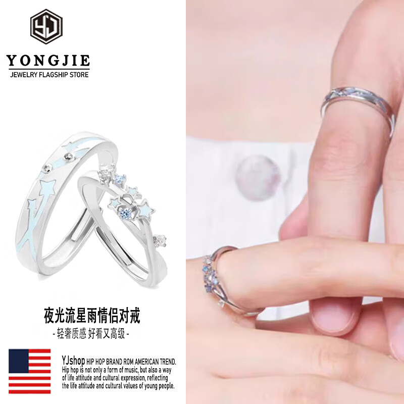 Yongjie Luminous Meteor Shower Couple Ring for Men and Women, Trendy Light Luxurious, High-end Emotional Token for Girlfriend’s Birthday Gift, Luminous Ring N055, Couple Style White Pink Gift Box