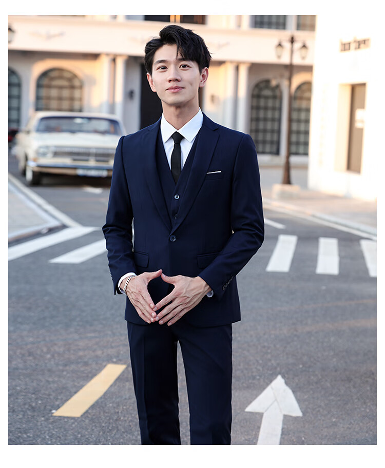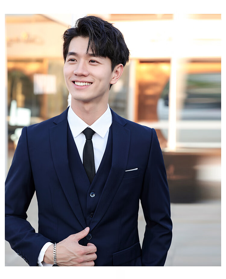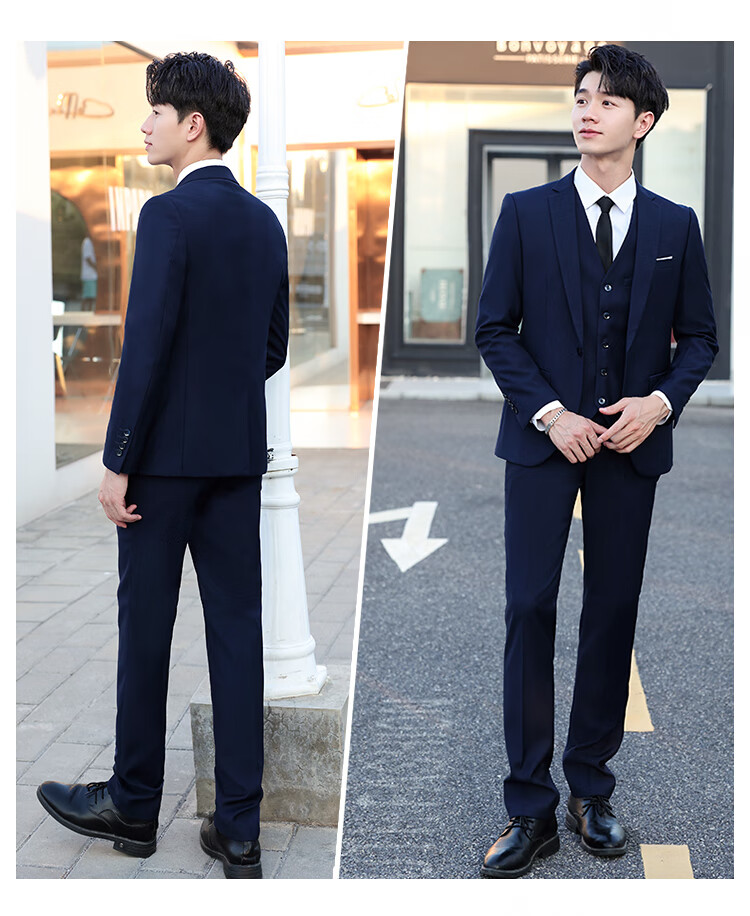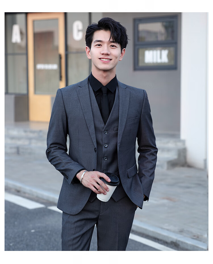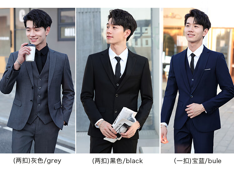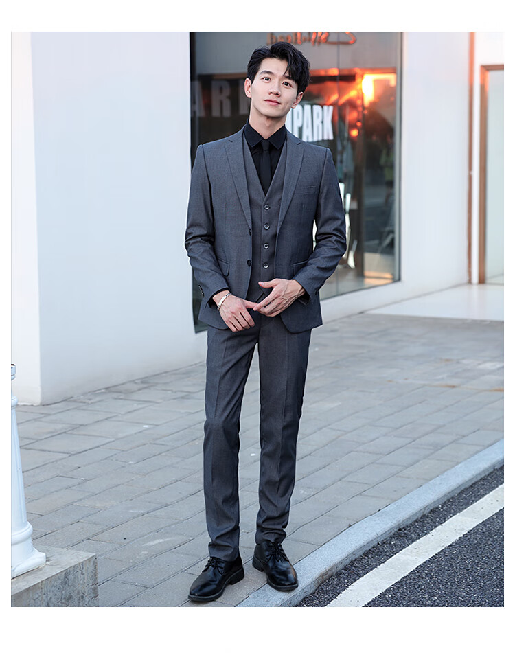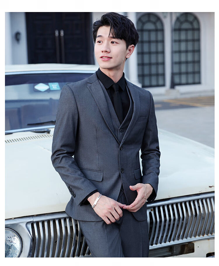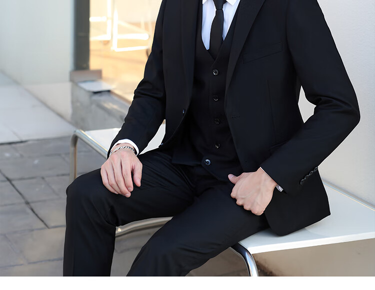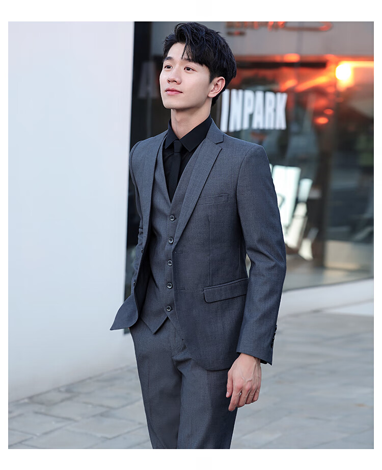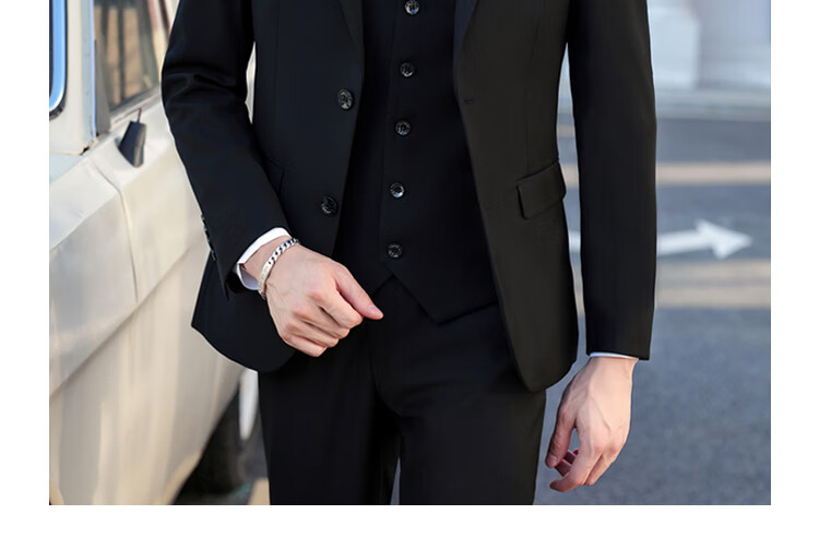 ROMON Suit Men's Korean Slim Jacket Groom Wedding Dress High-end Business Formal Casual Small Suit Men Black 2-button Top + Pants + Shirt 4XL Recommendation 175-190Jin Jin is equal to 0.5 kg