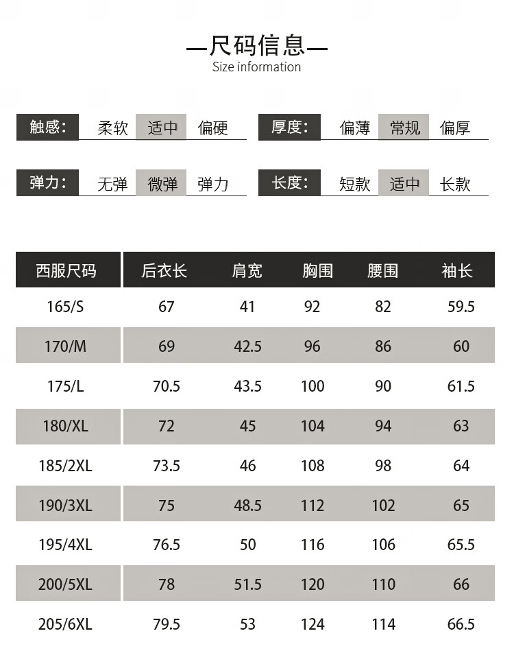China (cm) 160-165/84-86 165-170 / 88-90 167-172 / 92-96 168-173 / 98-102 170-176 / 106-110