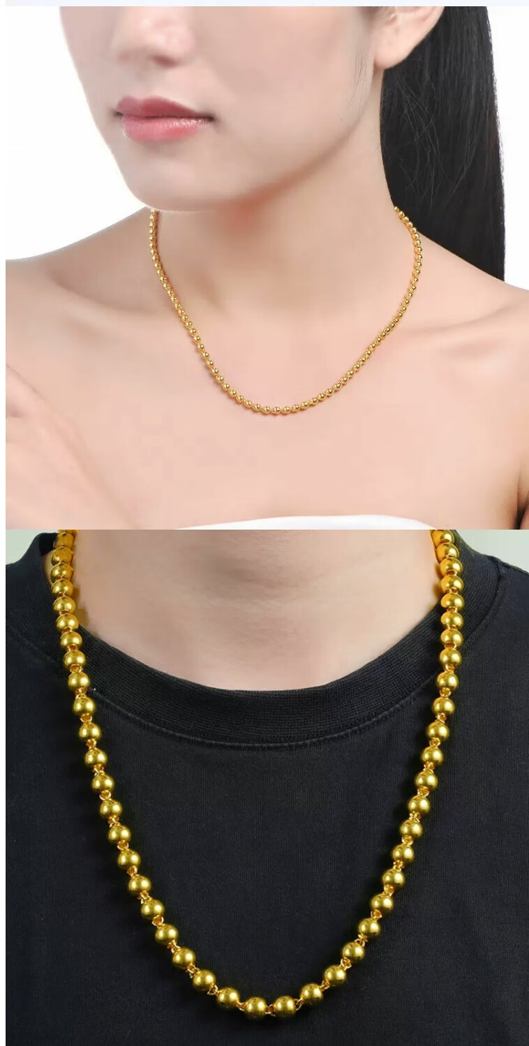 BXE999 pure gold pure silver gold clad with silver gold Buddha pearl light beads gold beads round bead necklace men's domineering light pearl necklace 8MM about 82 grams gold clad with silver material