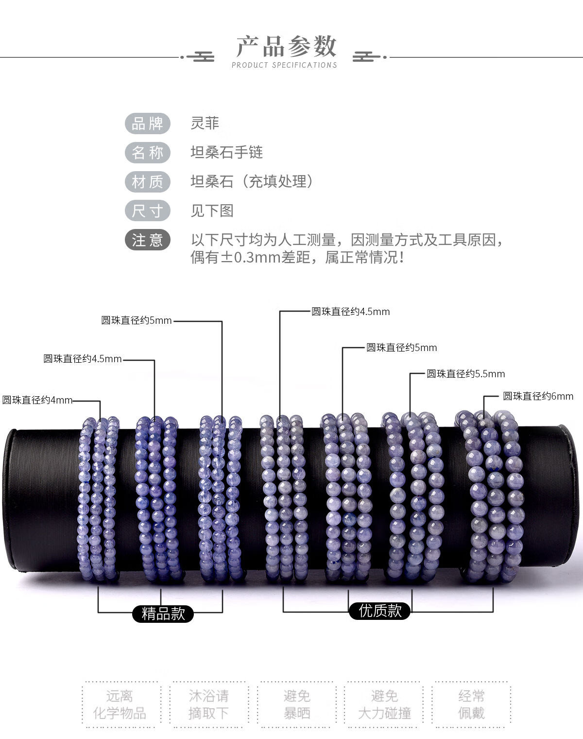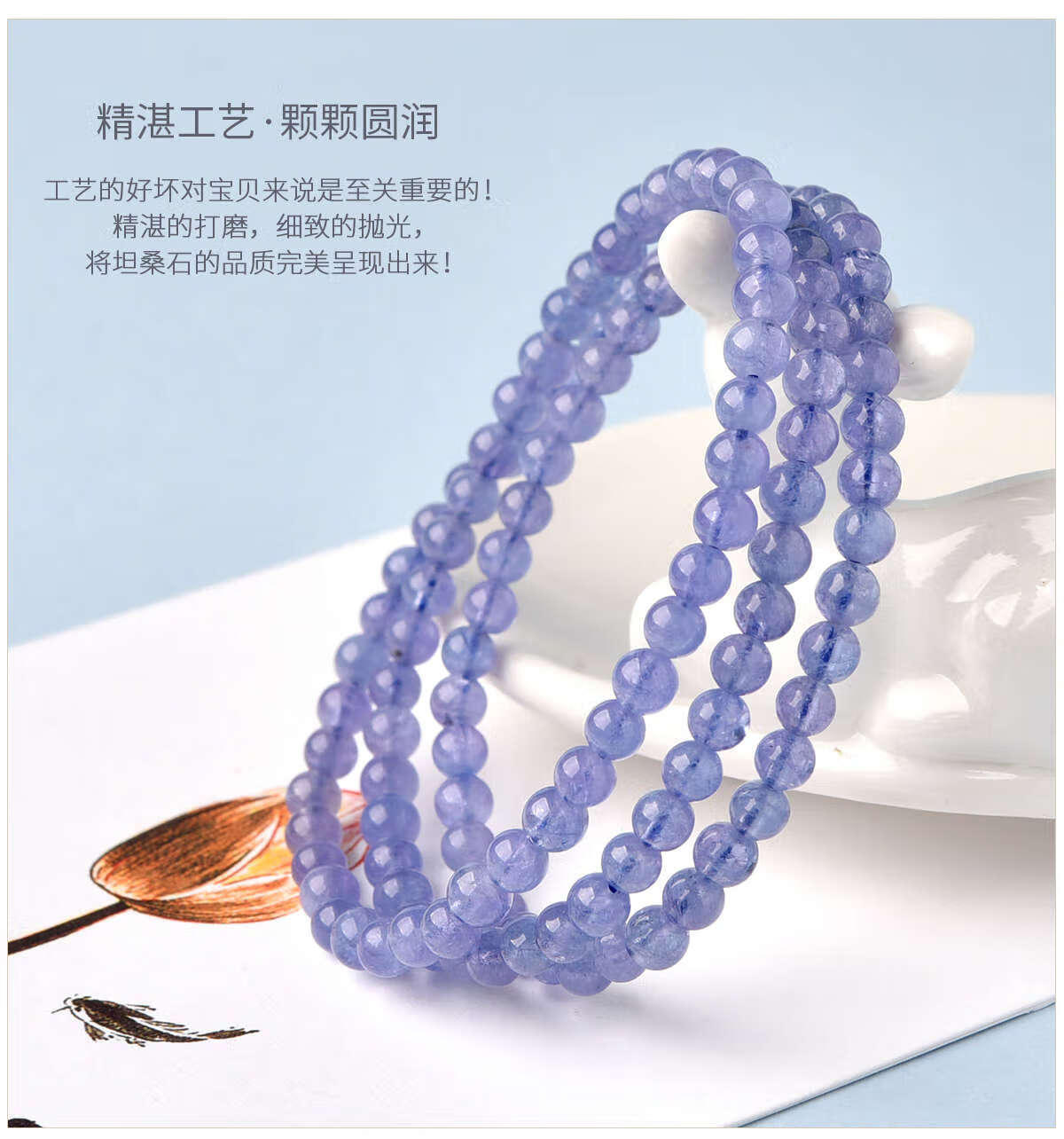 Oin tanzanite multi-circle bracelet, Tanzania tanzanite raw stone beads, loose jewelry, three-circle crystal bracelet for women and men, boutique model, bead diameter is about 4mm, three-circle
