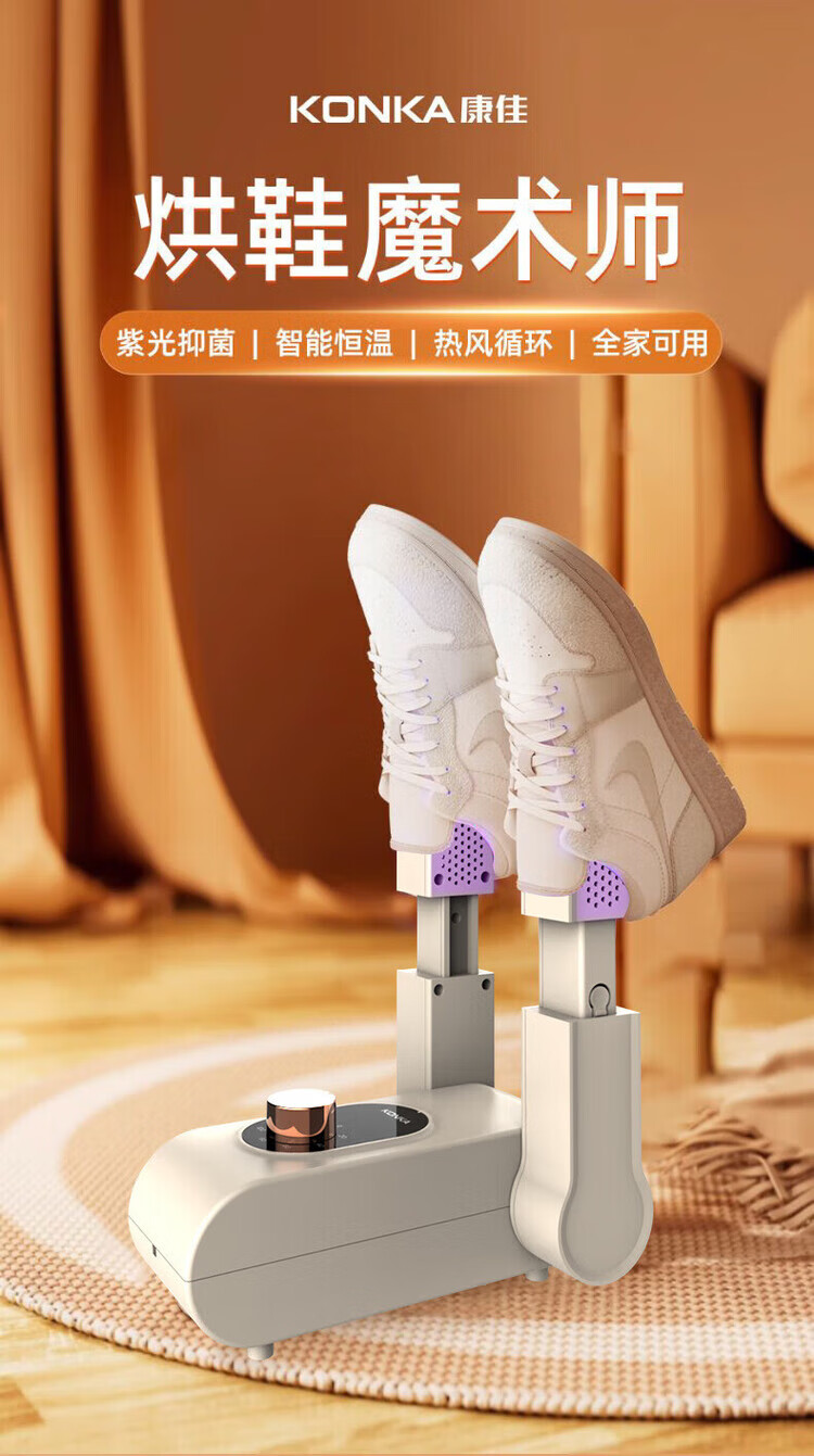 KONKA shoe dryer shoe drying machine artifact sterilization and deodorization shoe dryer household intelligent constant temperature shoe dryer white deodorizing rose salt-constant temperature does not damage shoes