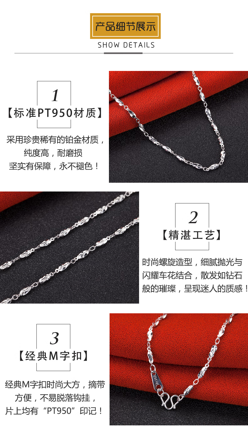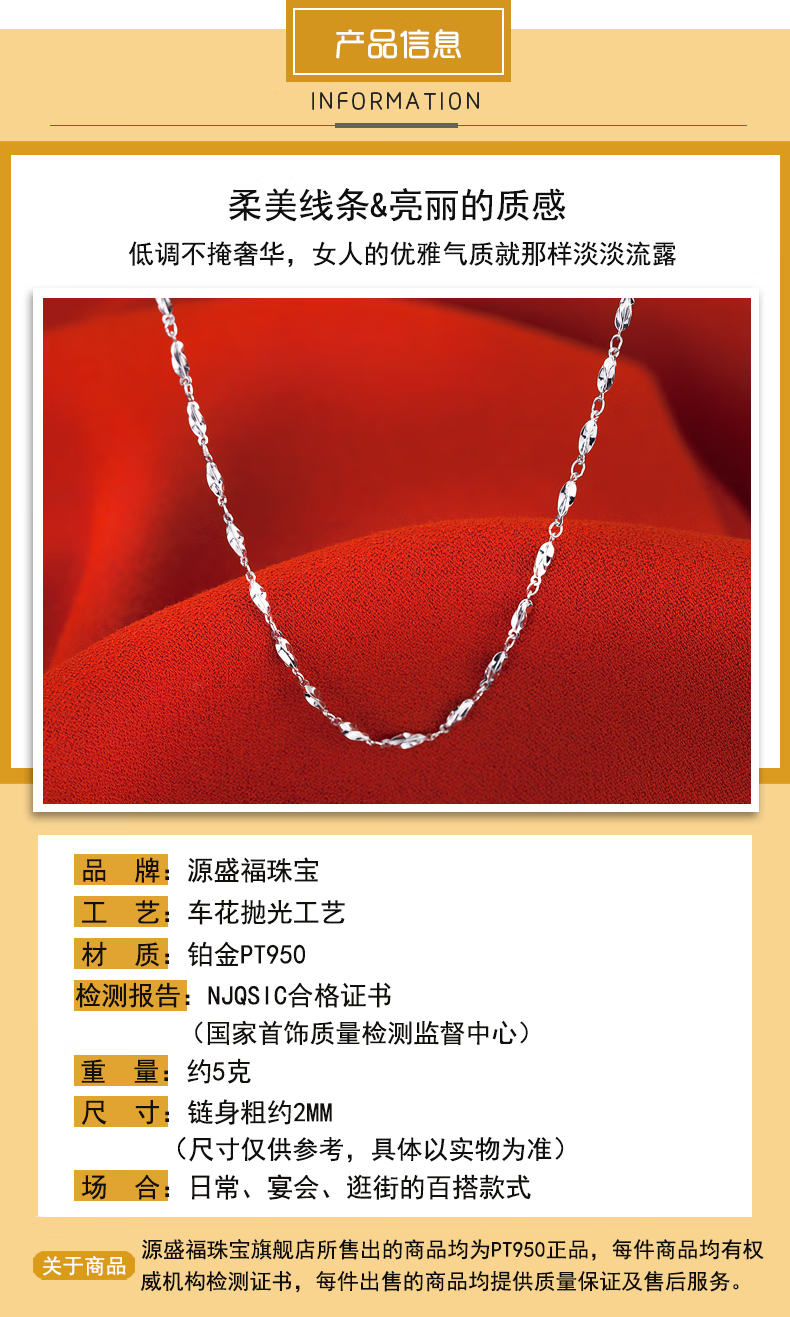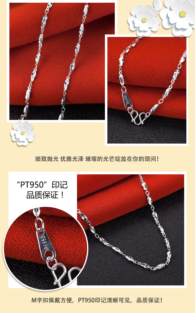 Yuan Shengfu's new PT950 fashionable platinum necklace, authentic, versatile and strong women's platinum carambola chain for sale, 4.70g, 44cm