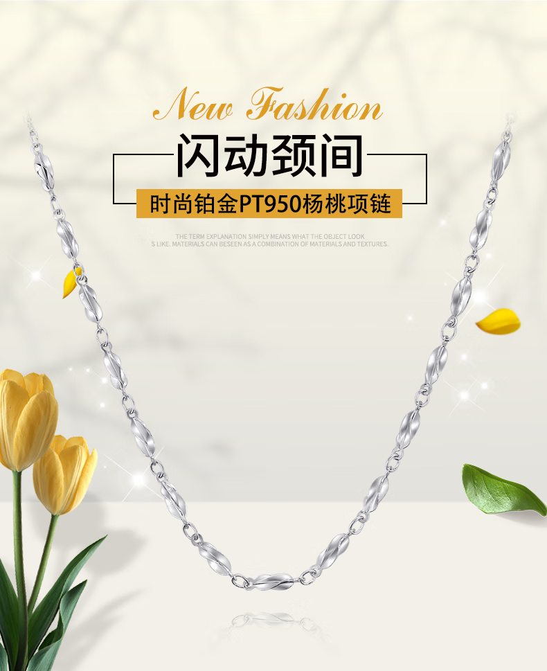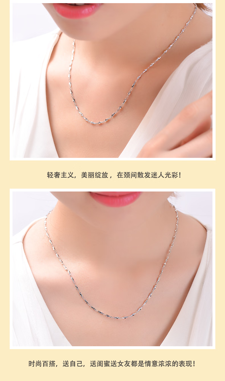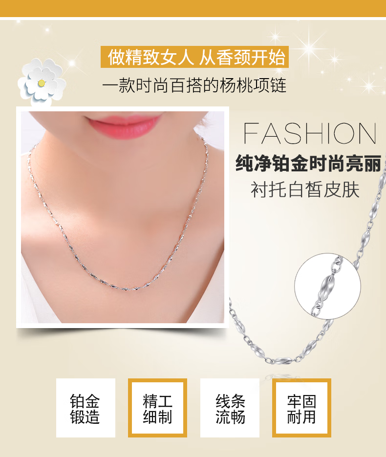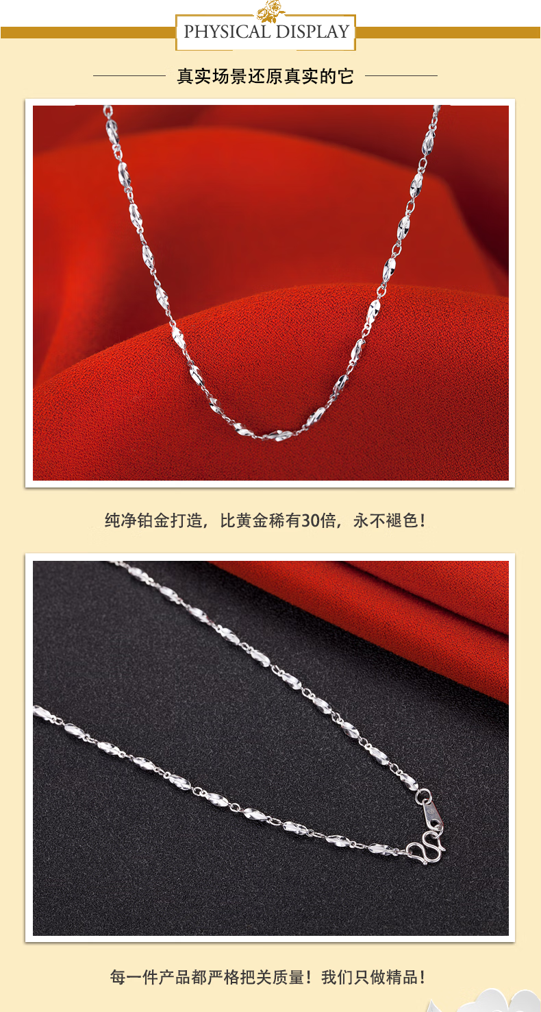 Yuan Shengfu's new PT950 fashionable platinum necklace, authentic, versatile and strong women's platinum carambola chain for sale, 4.70g, 44cm